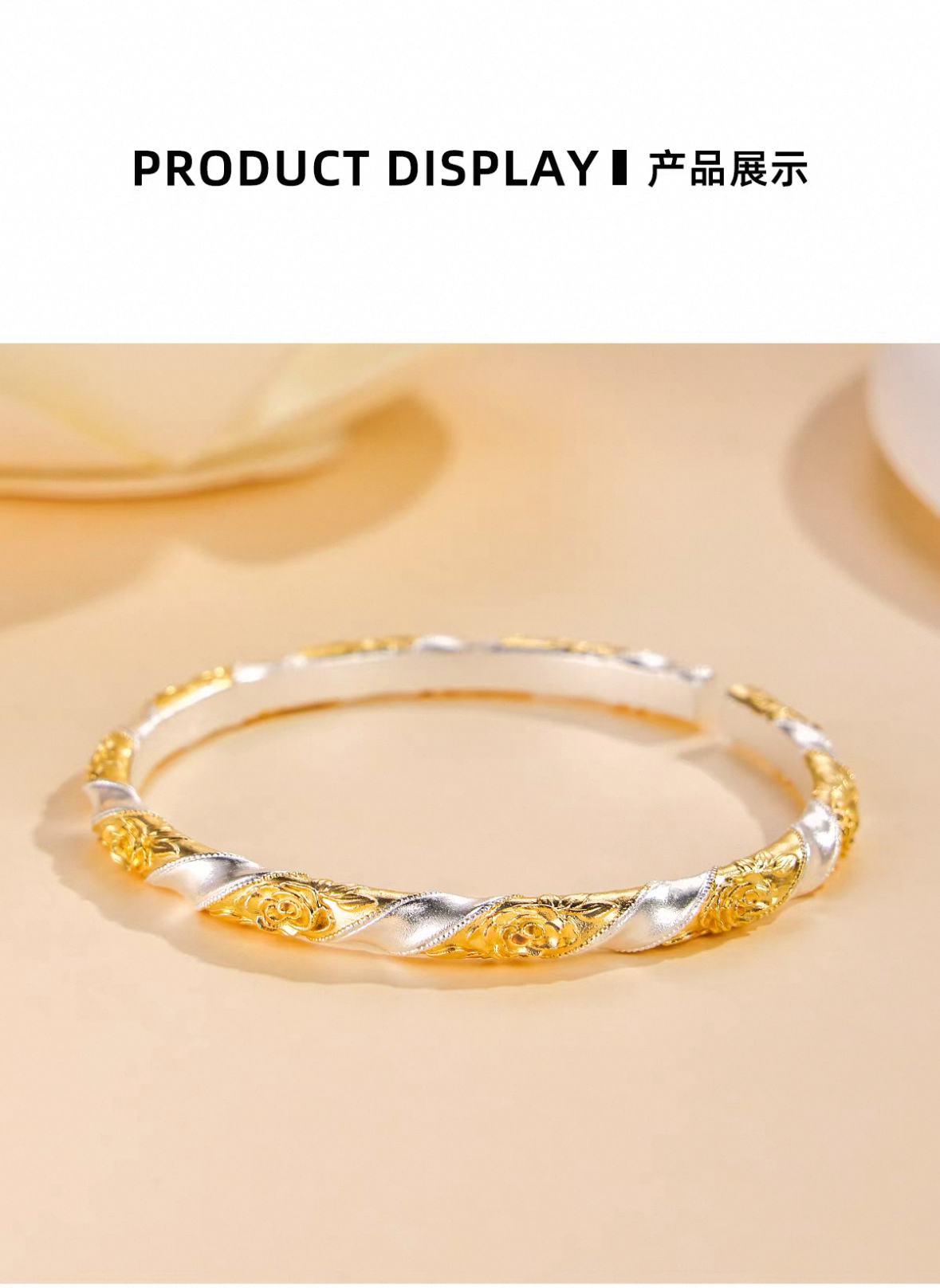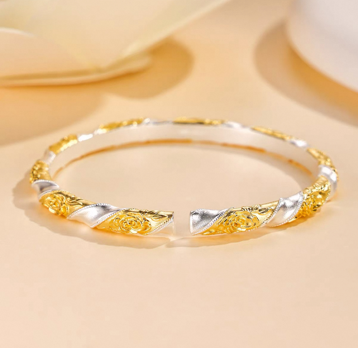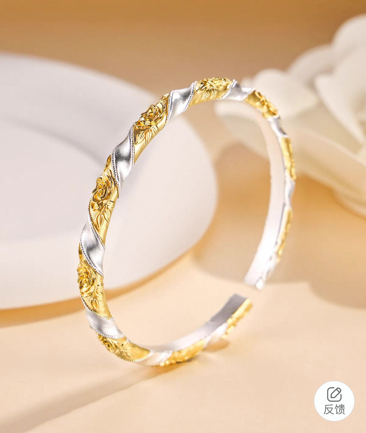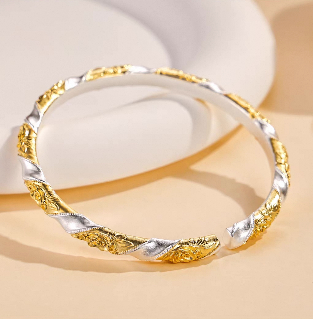 Foot Silver 999 Silver Bracelet Women's Mobius Bracelet with Gold Rose Opening Bracelet New Chinese Style National Style Silver Bracelet