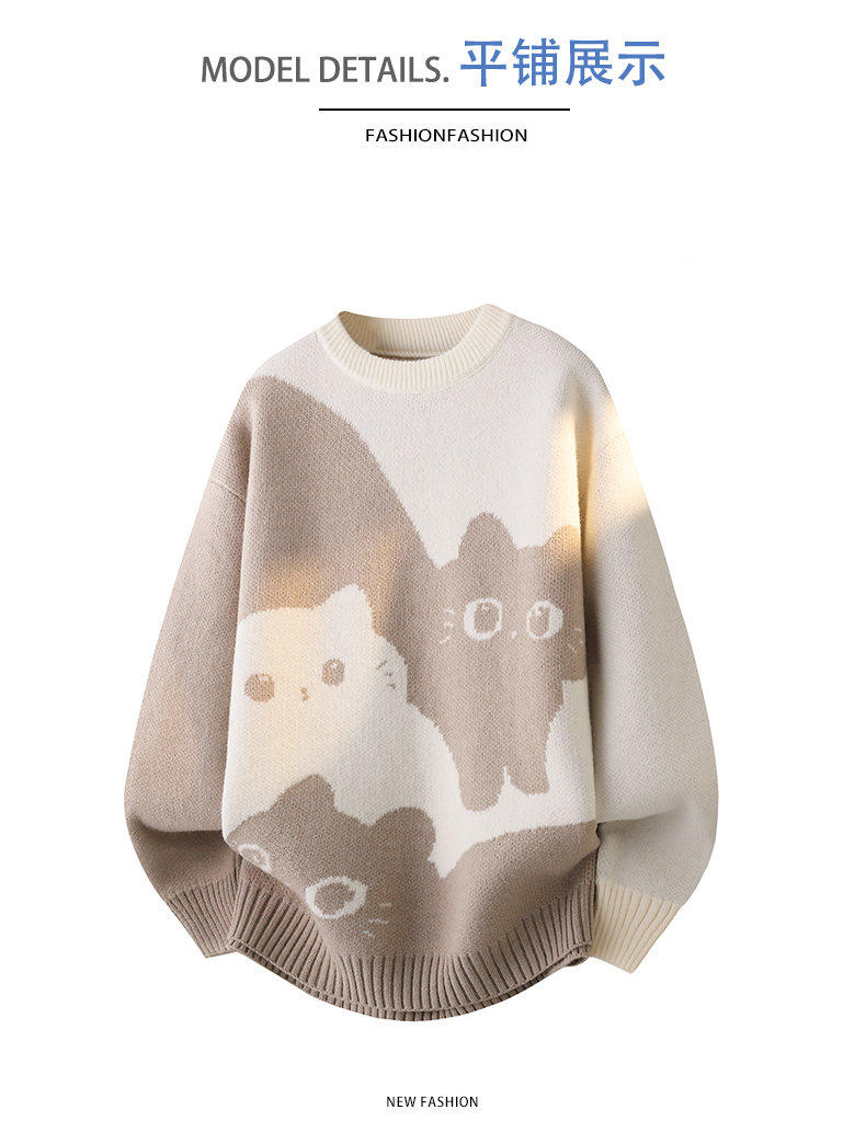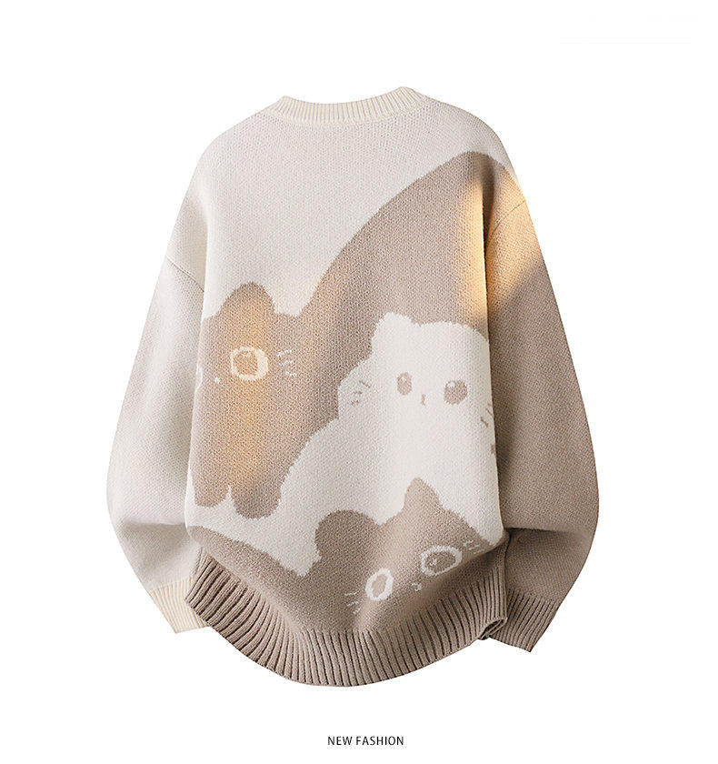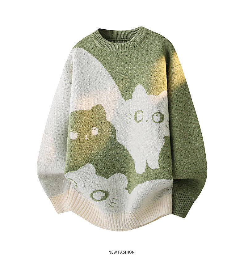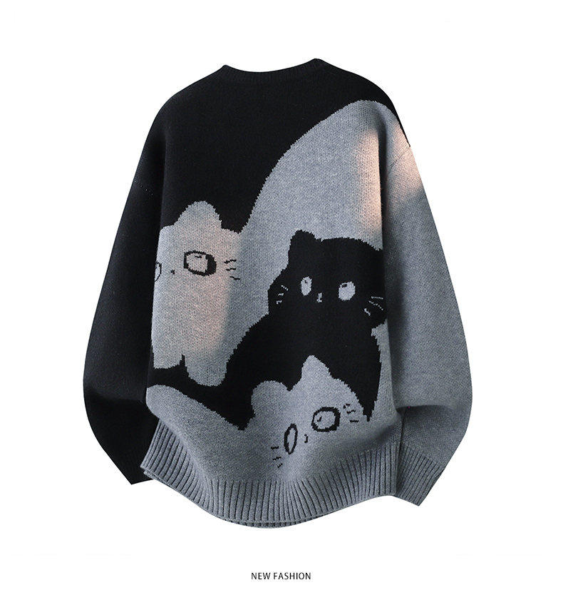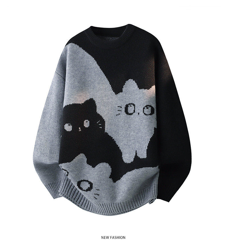 Scarecrow 2025 Autumn/Winter New Men's Retro Round Neck Trendy Cat Head Casual Korean Style Thickened Sweater Knitwear