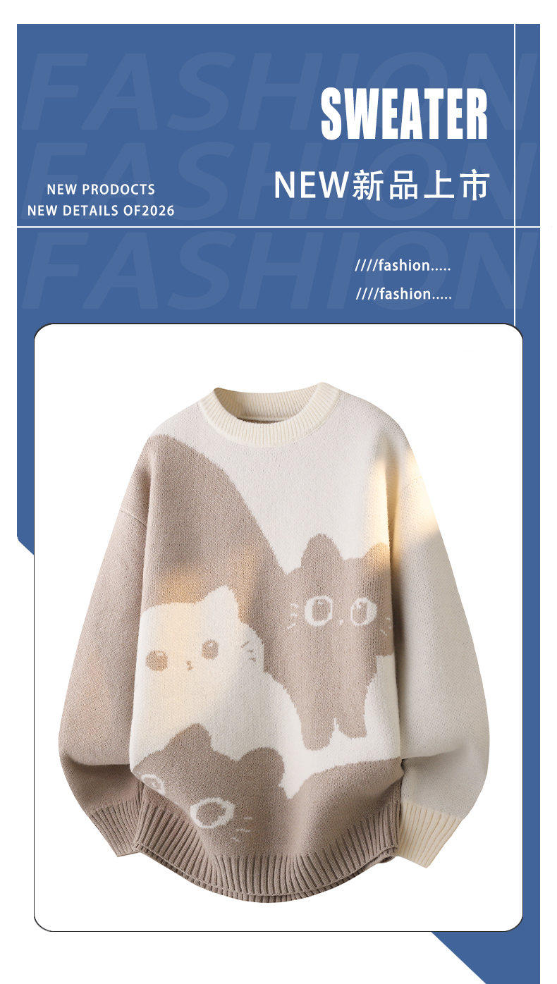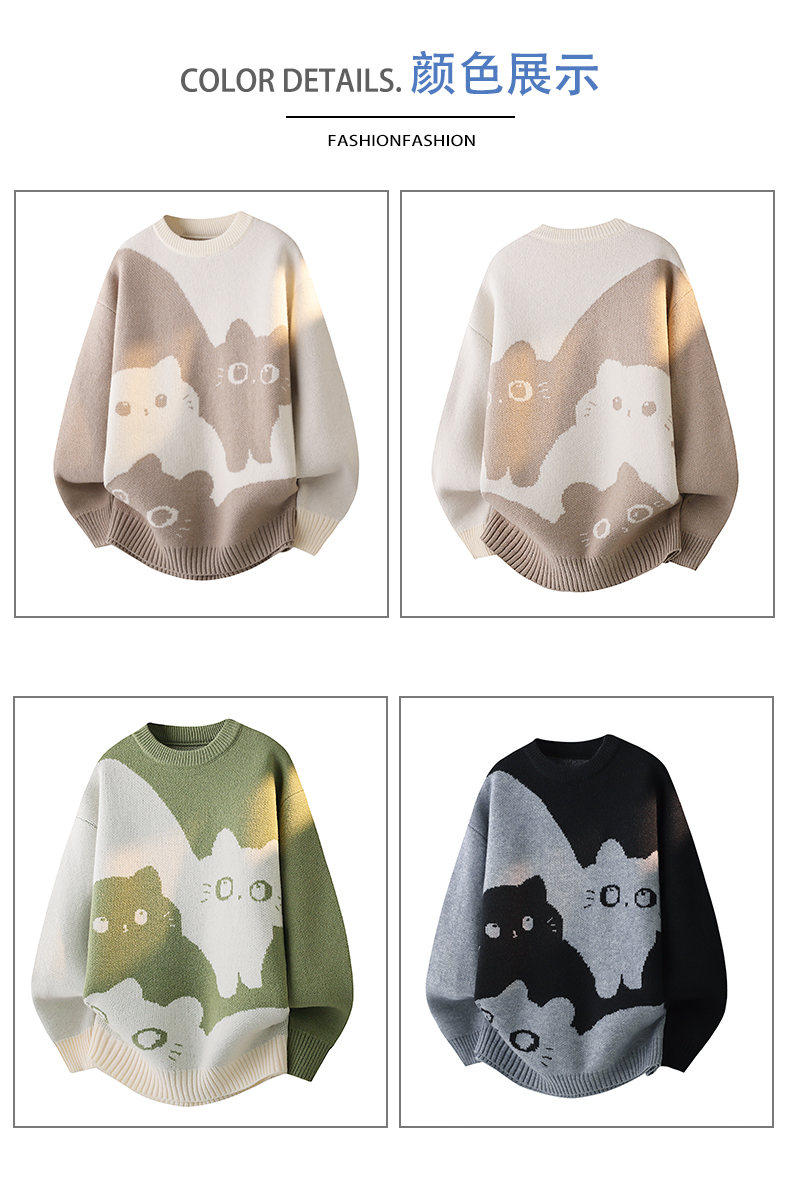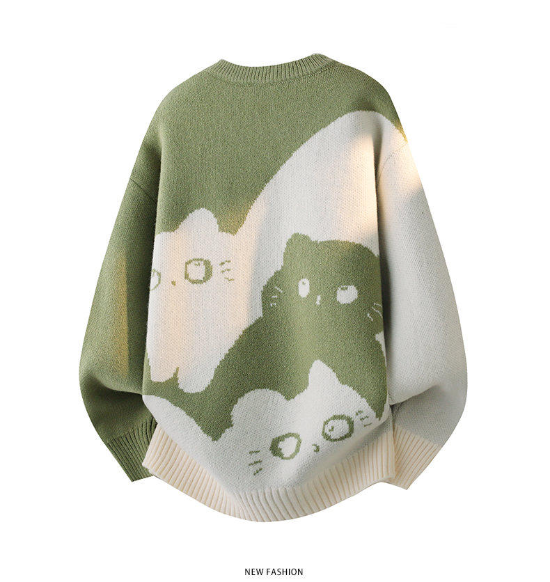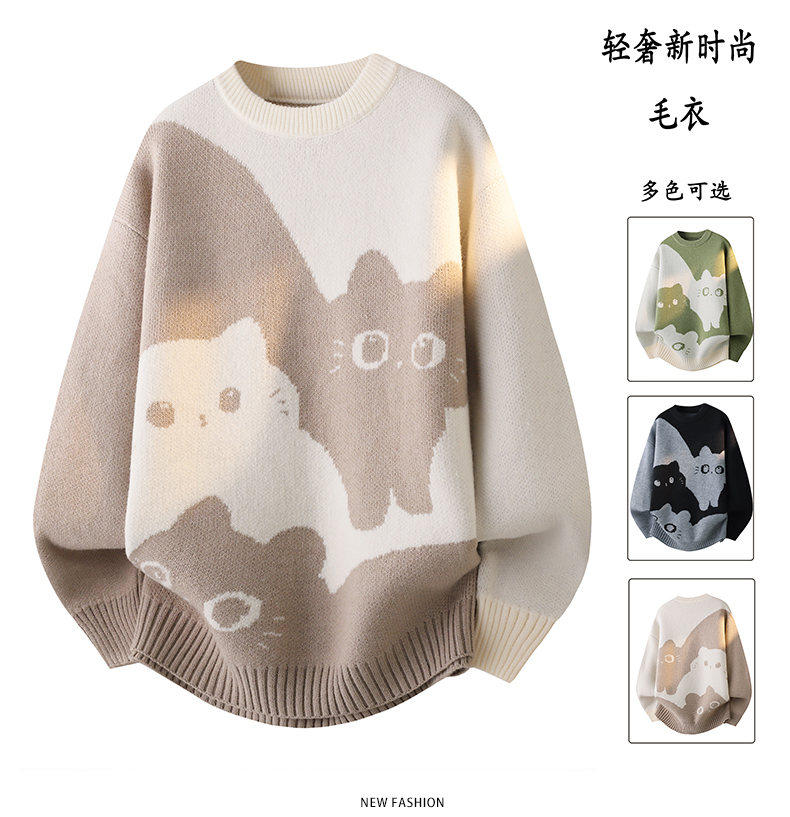 Scarecrow 2025 Autumn/Winter New Men's Retro Round Neck Trendy Cat Head Casual Korean Style Thickened Sweater Knitwear