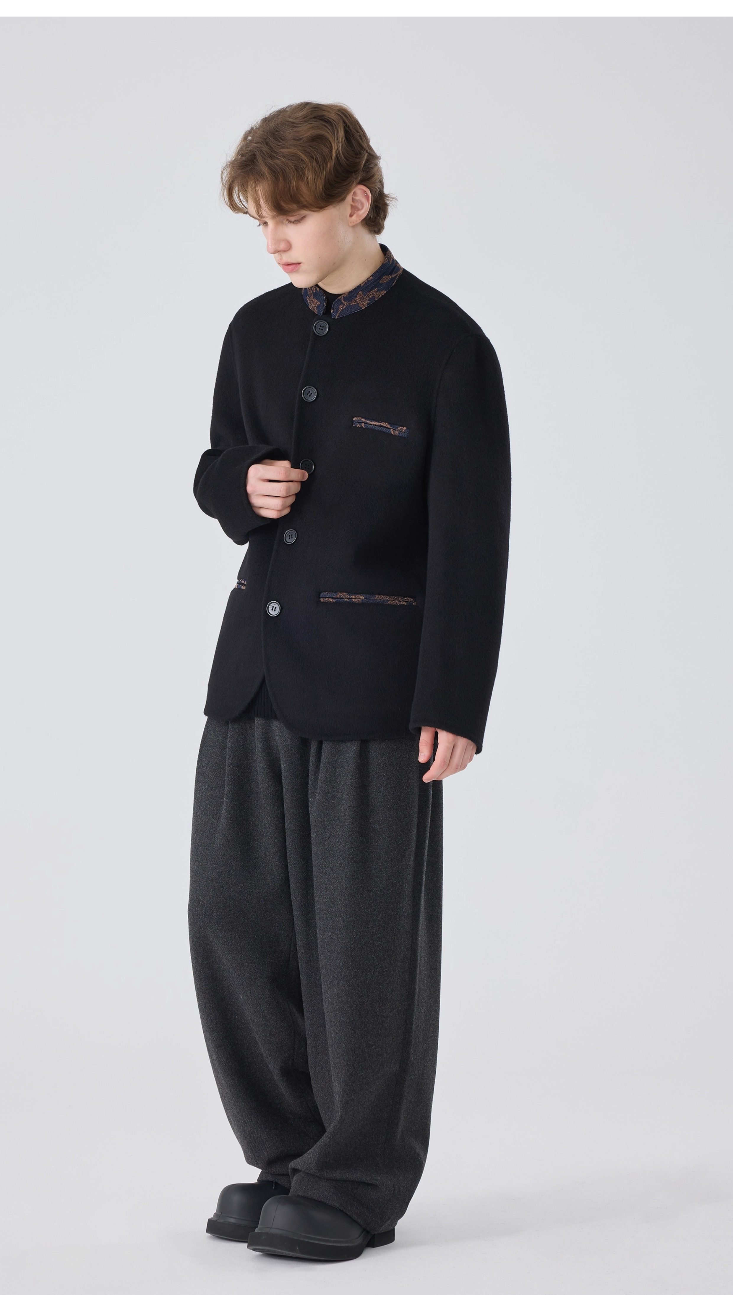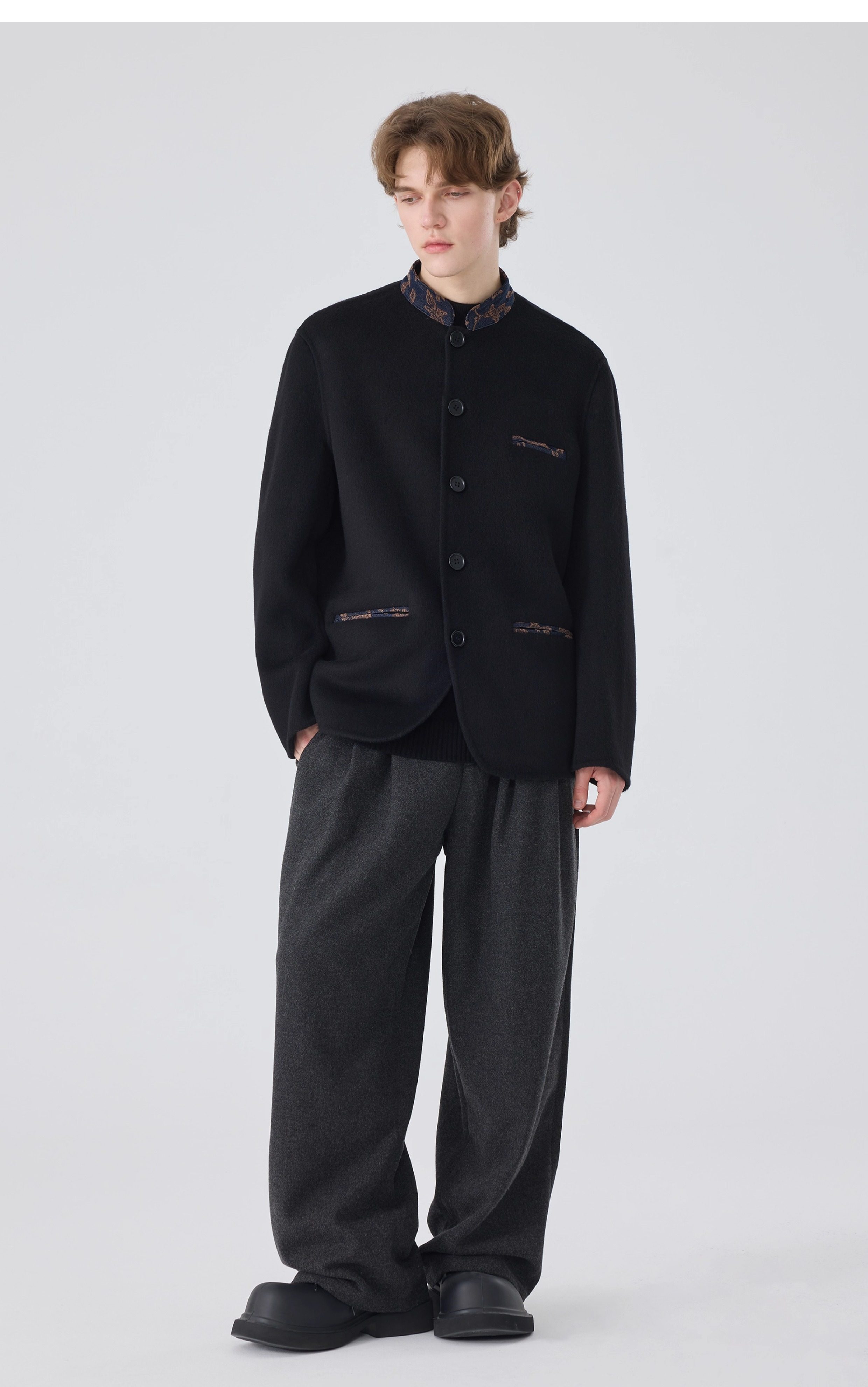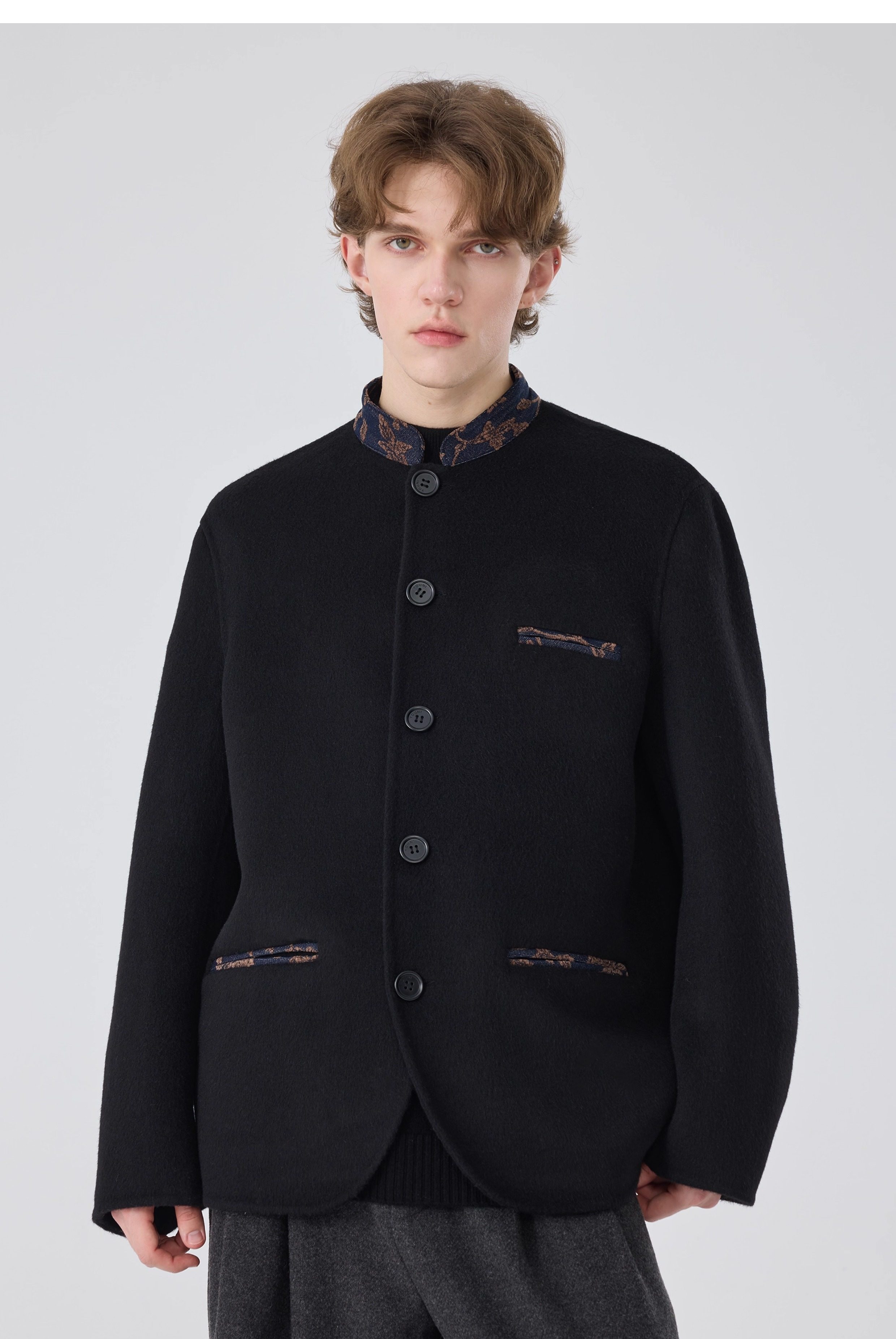 New Autumn and Winter Men's Stand-Up Collar Double-Sided Wool Camel Hair Coat, Loose Casual Versatile Woolen Top for Men