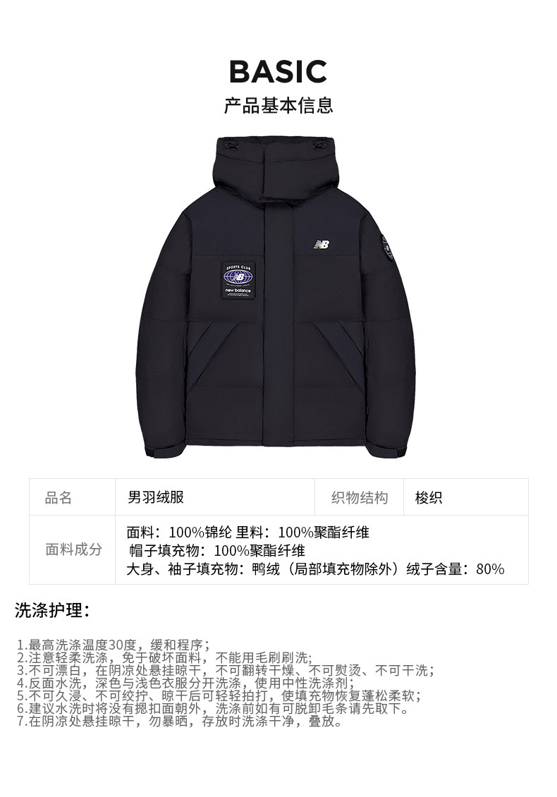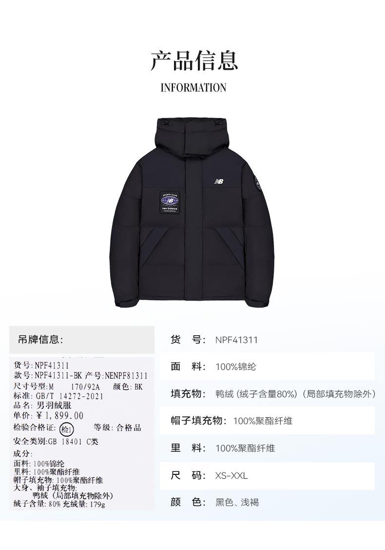New Balance Nb Official Trendy New Men's Simple and Versatile Duck down Sports down Jacket Npf41311