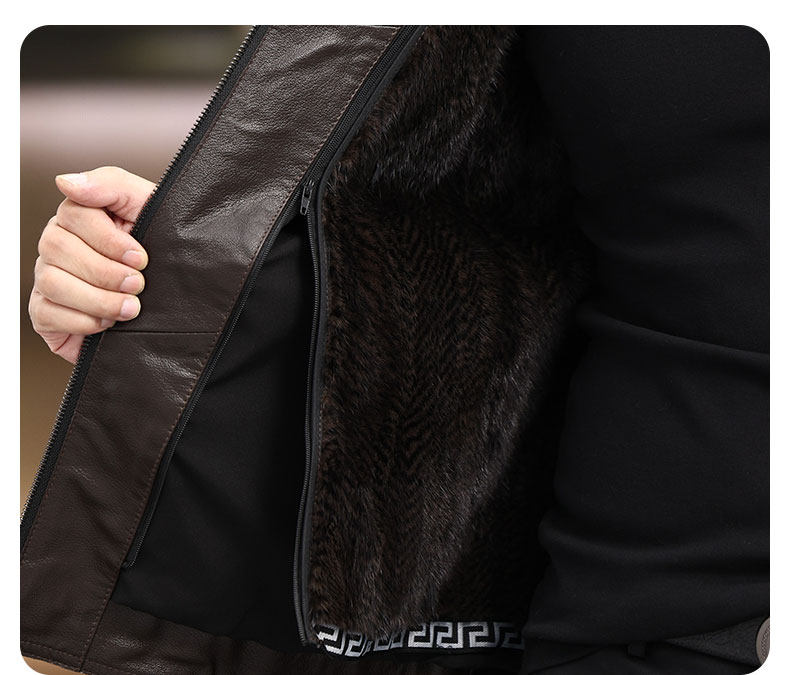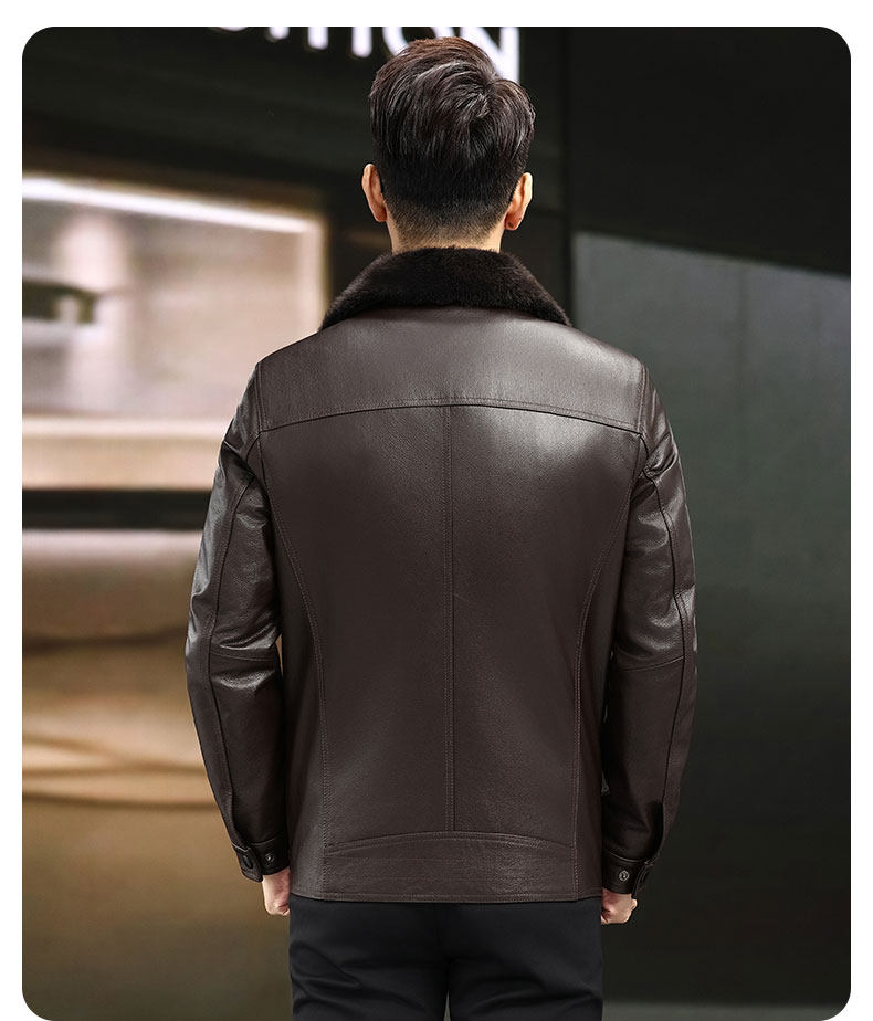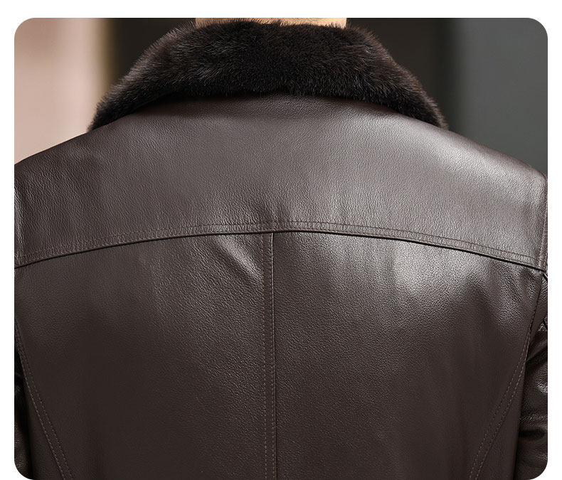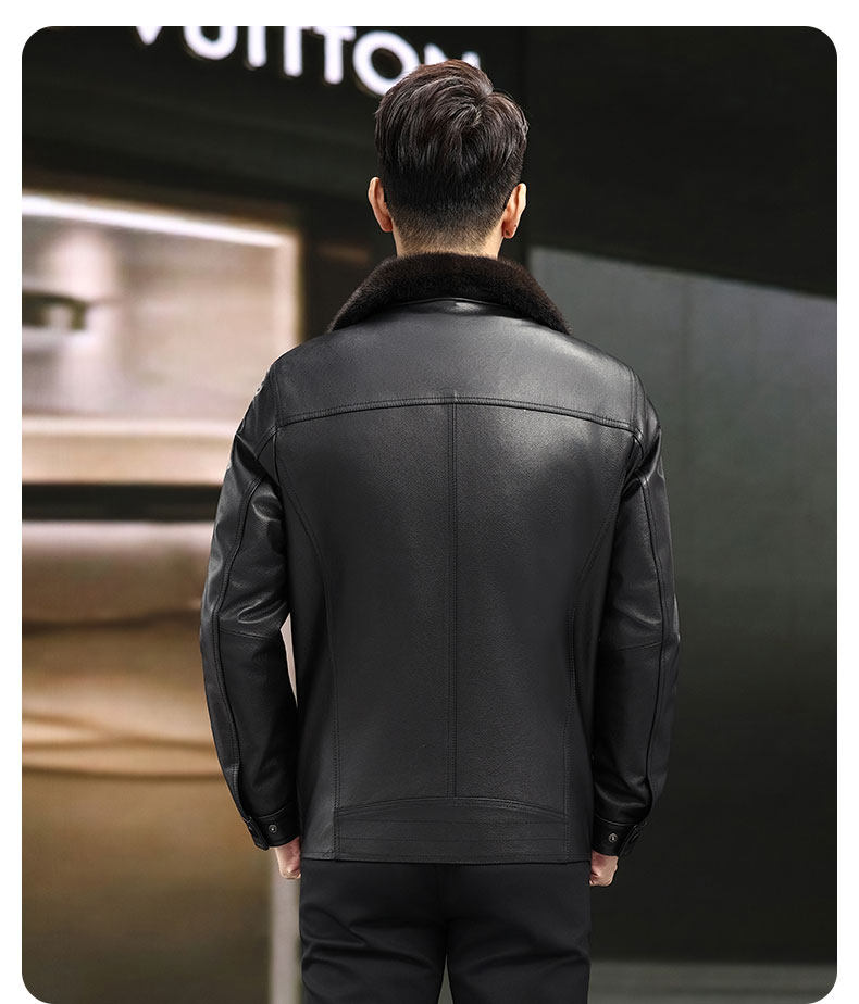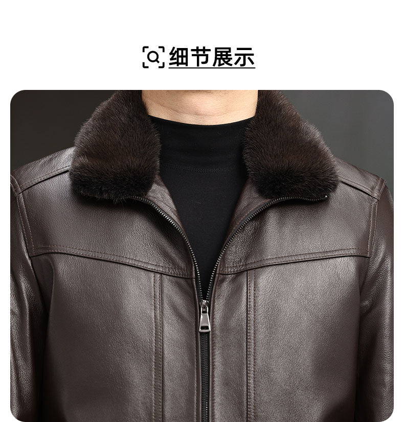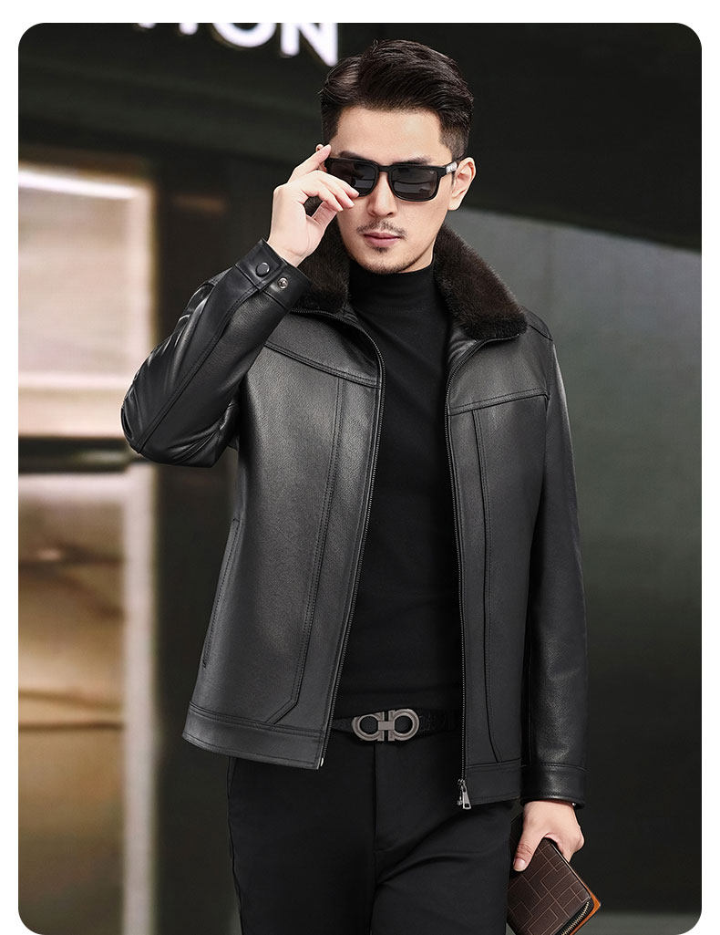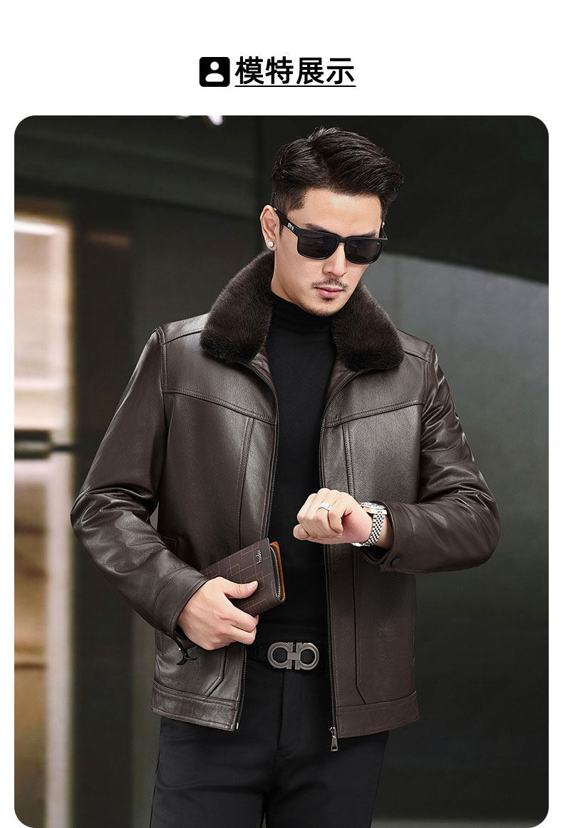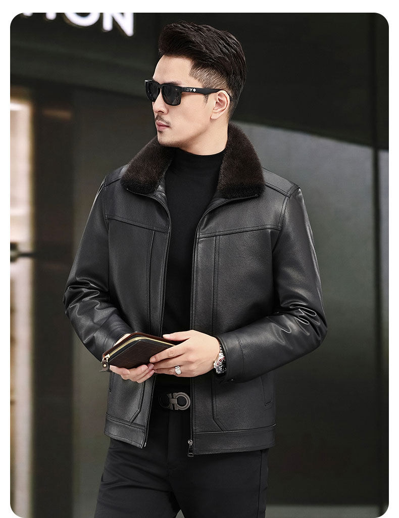 Winter New Style First-Layer Cowhide Leather Jacket for Men, Genuine Leather with Removable Mink Lining, Detachable Lapel, Fur Integrated Leather Jacket
