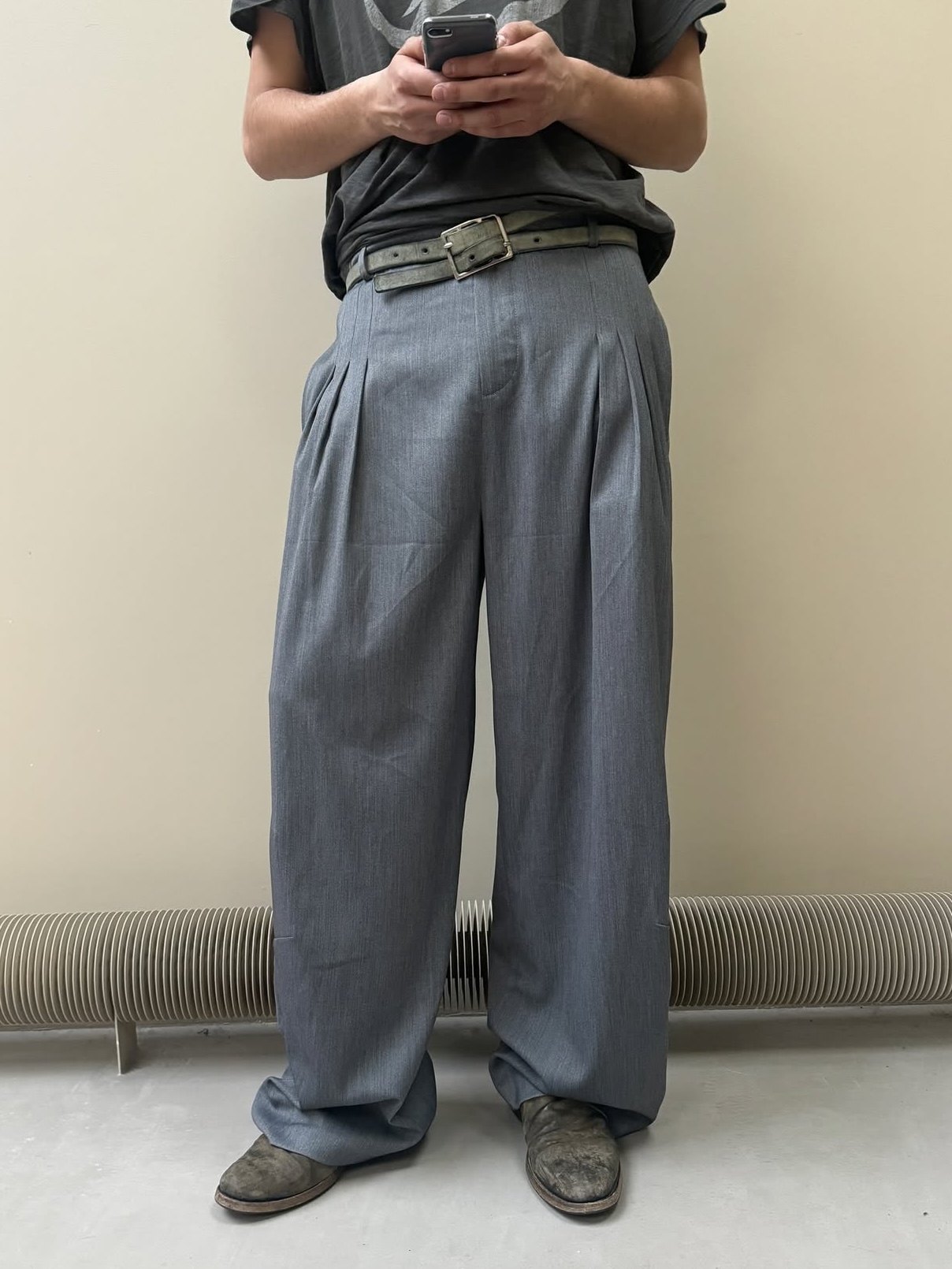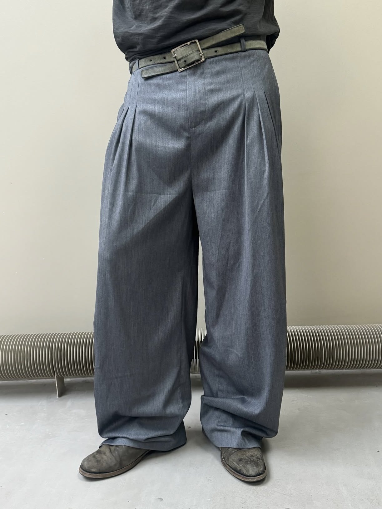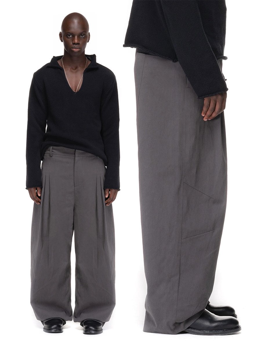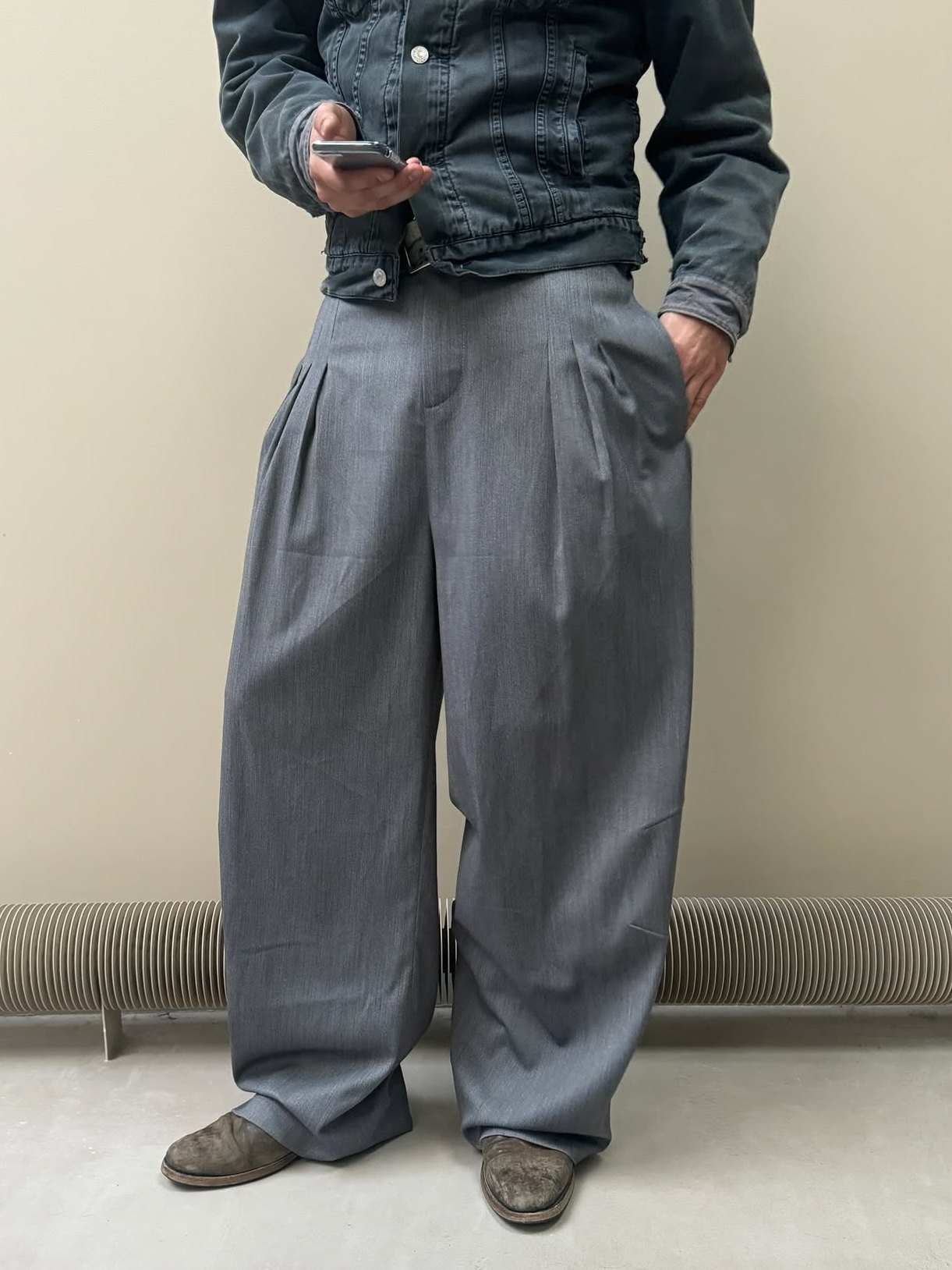 No Faith Studios Gray and Black Pleated Suit Pants Loose Wide-Leg Baggy Pleated Trousers