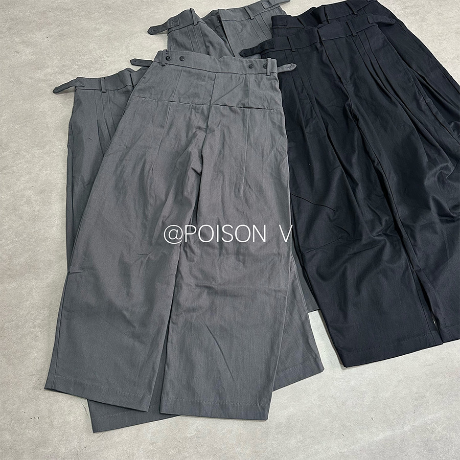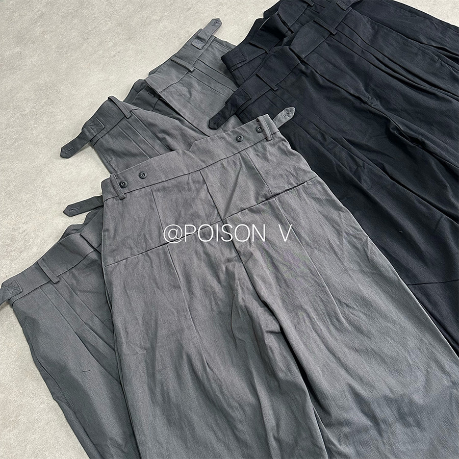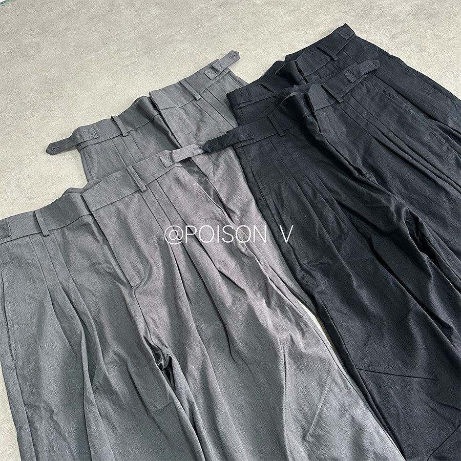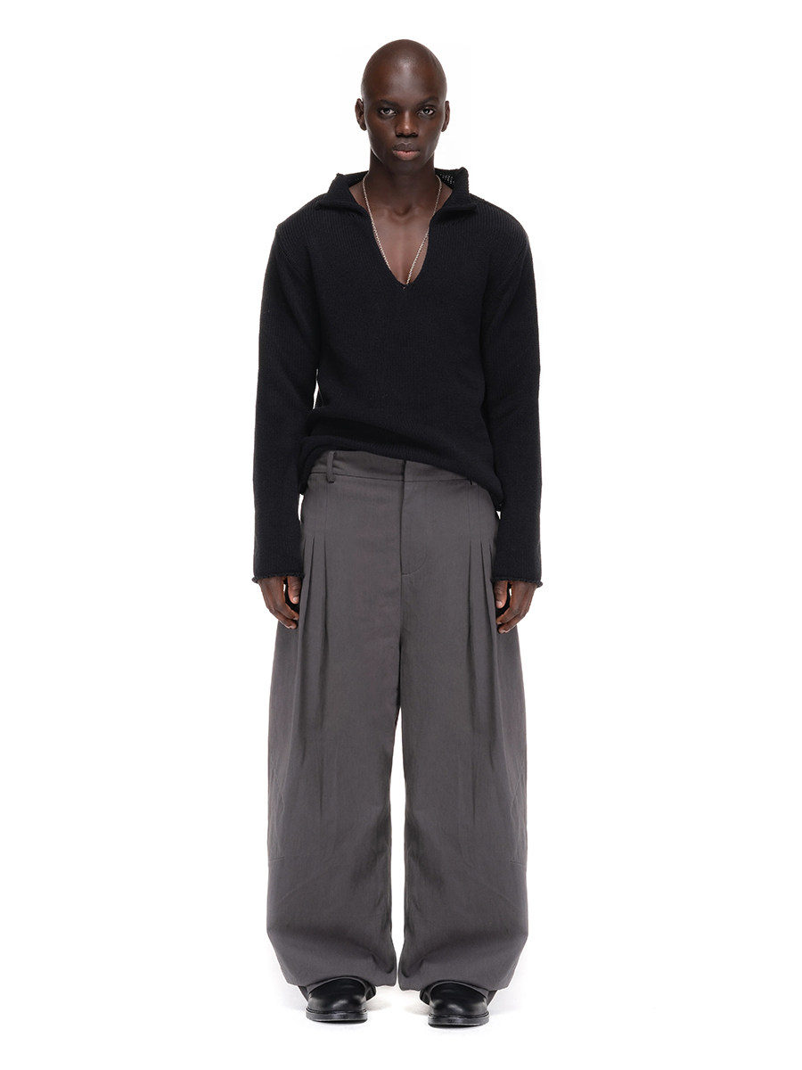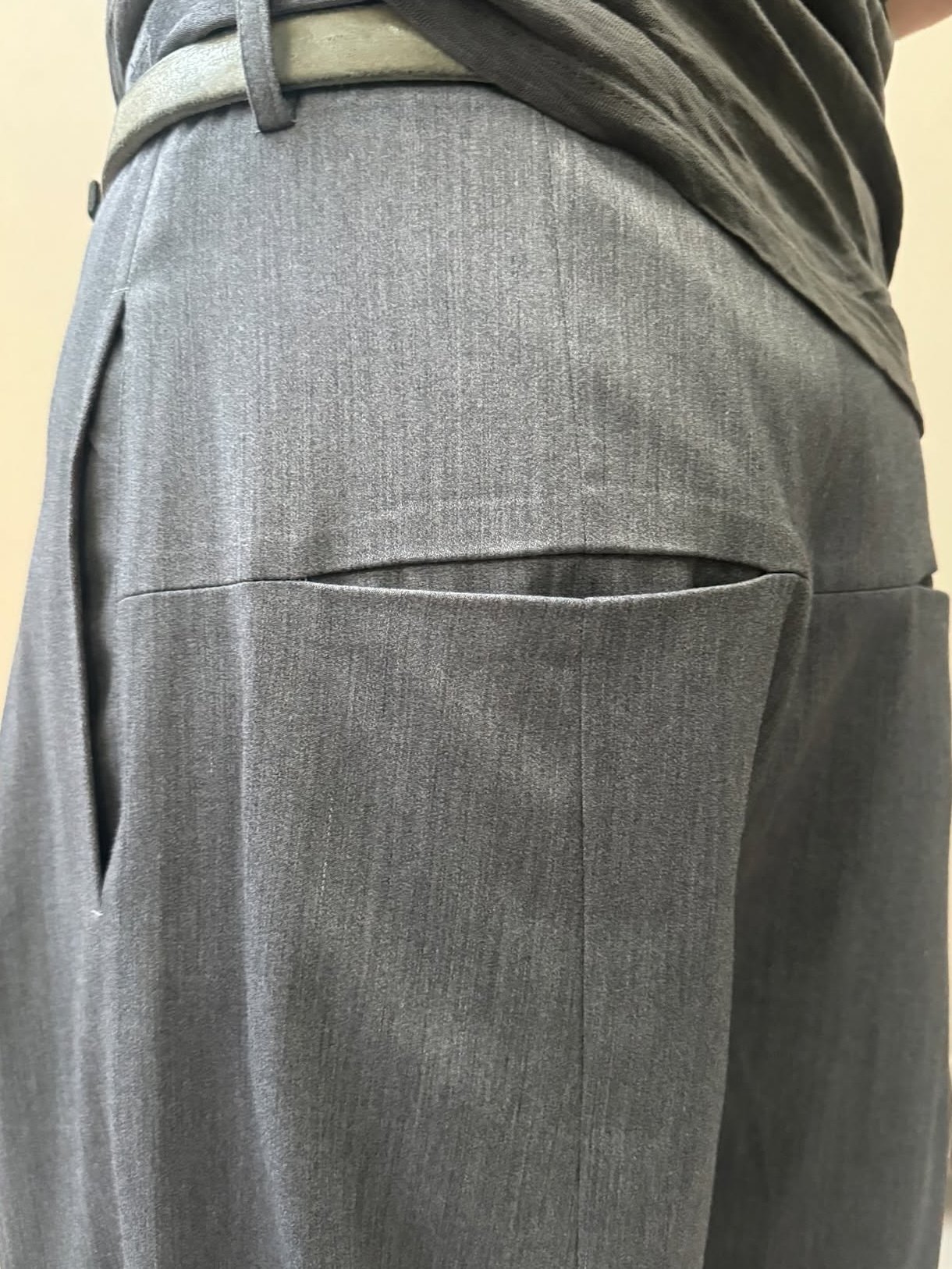 No Faith Studios Gray and Black Pleated Suit Pants Loose Wide-Leg Baggy Pleated Trousers