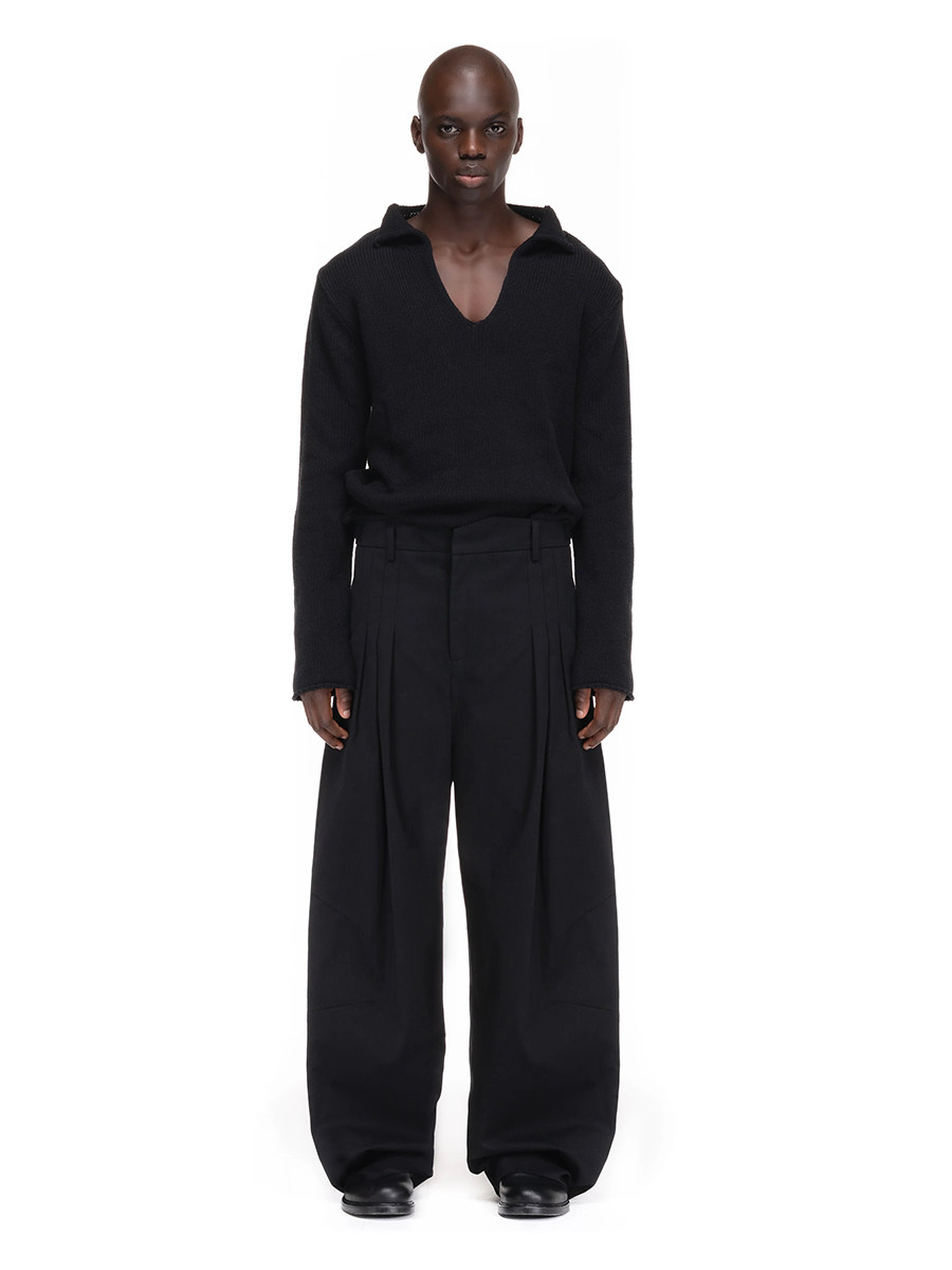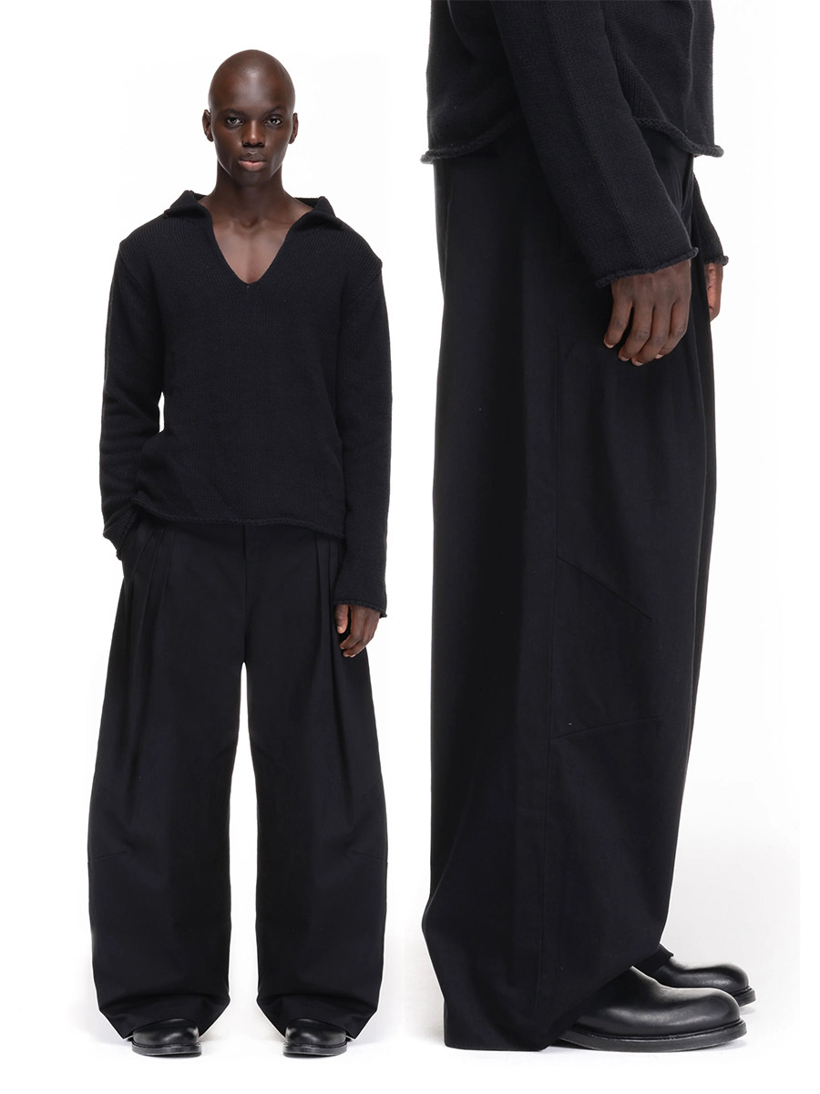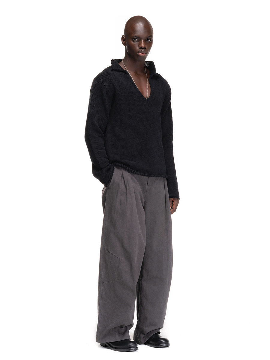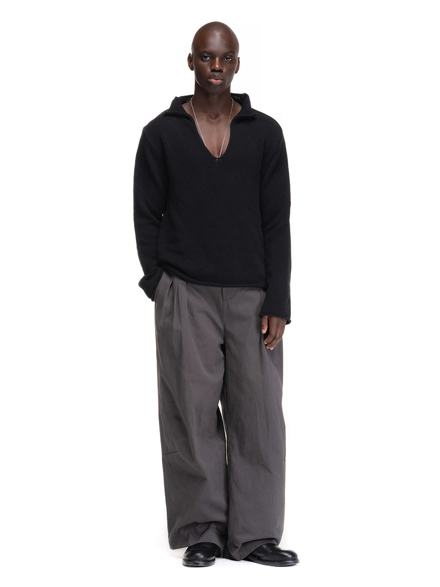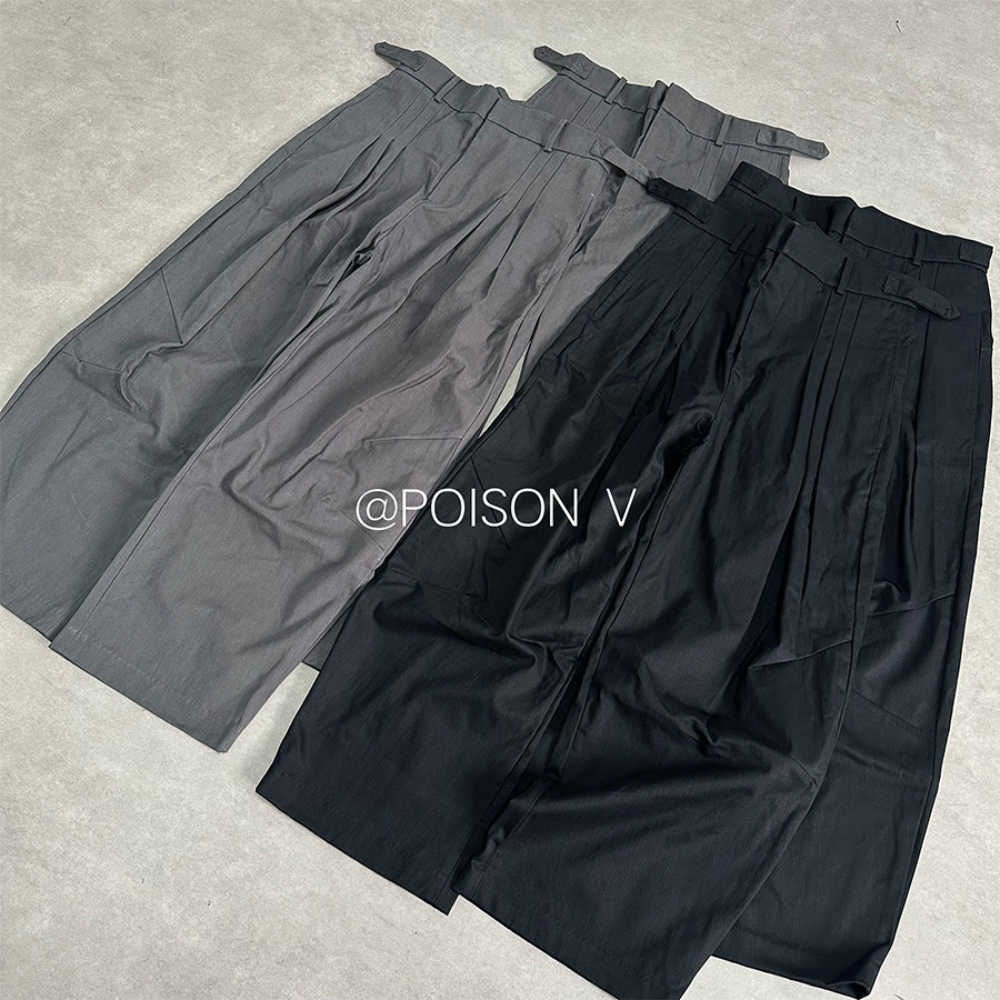 No Faith Studios Gray and Black Pleated Suit Pants Loose Wide-Leg Baggy Pleated Trousers