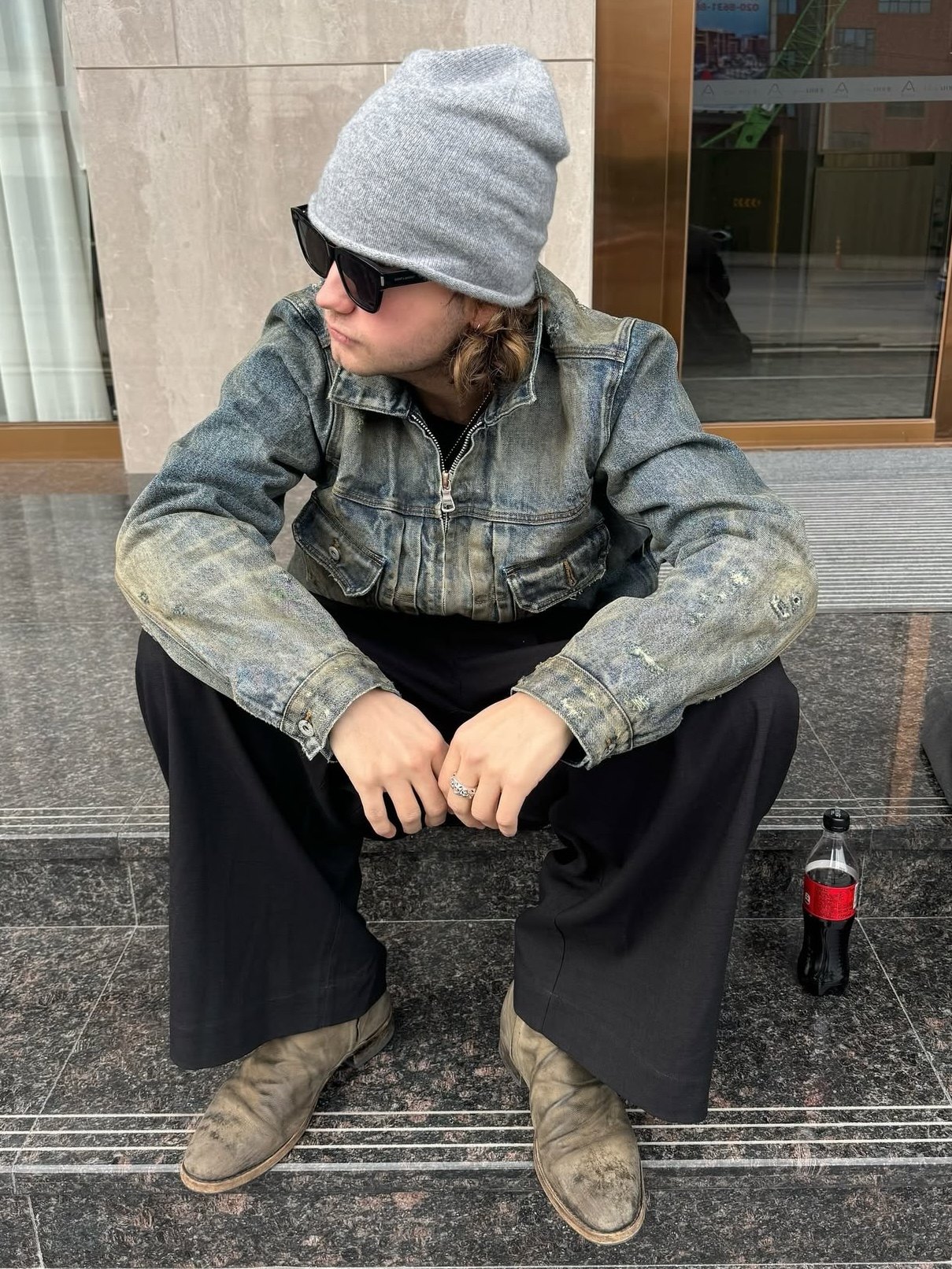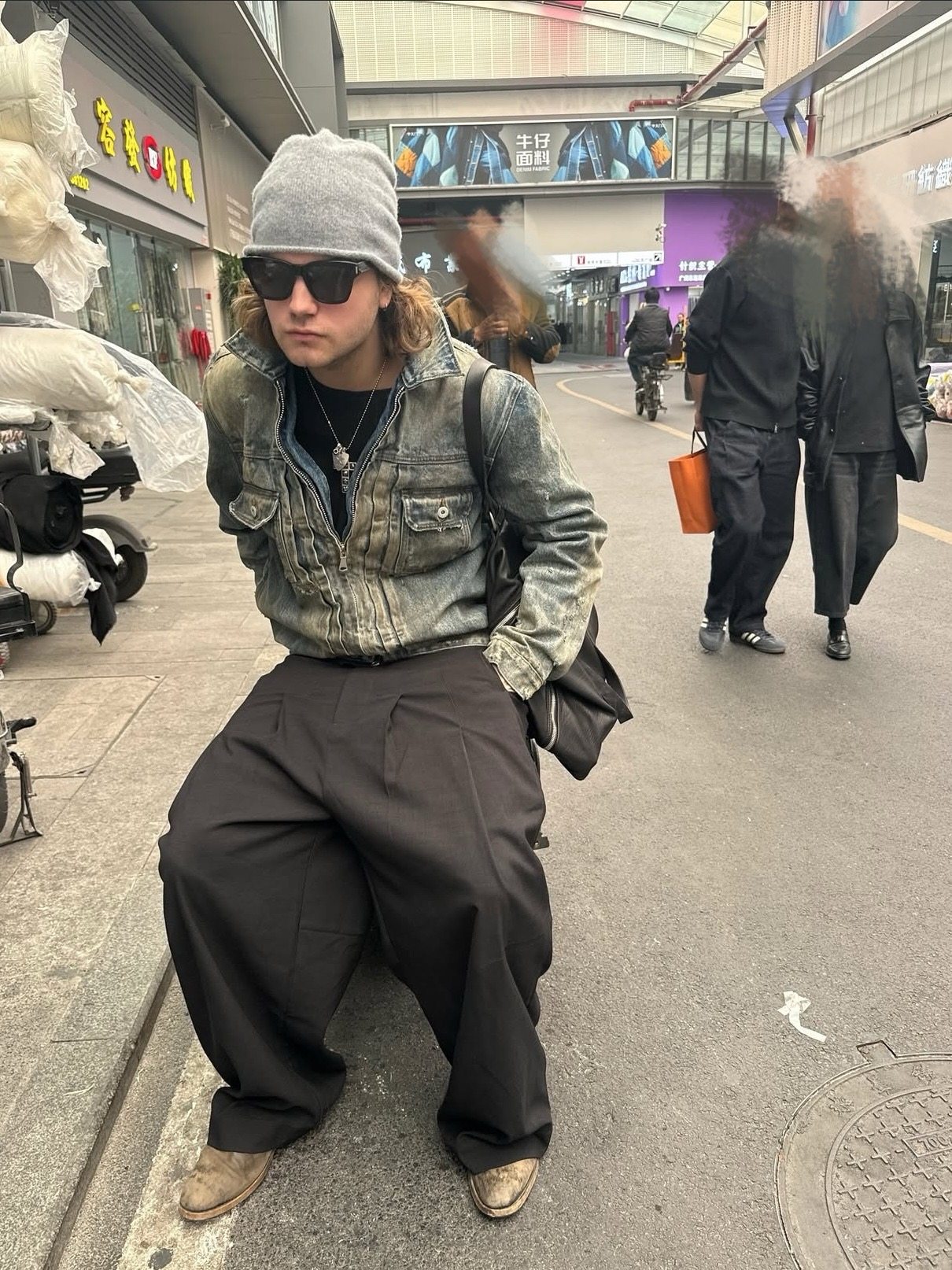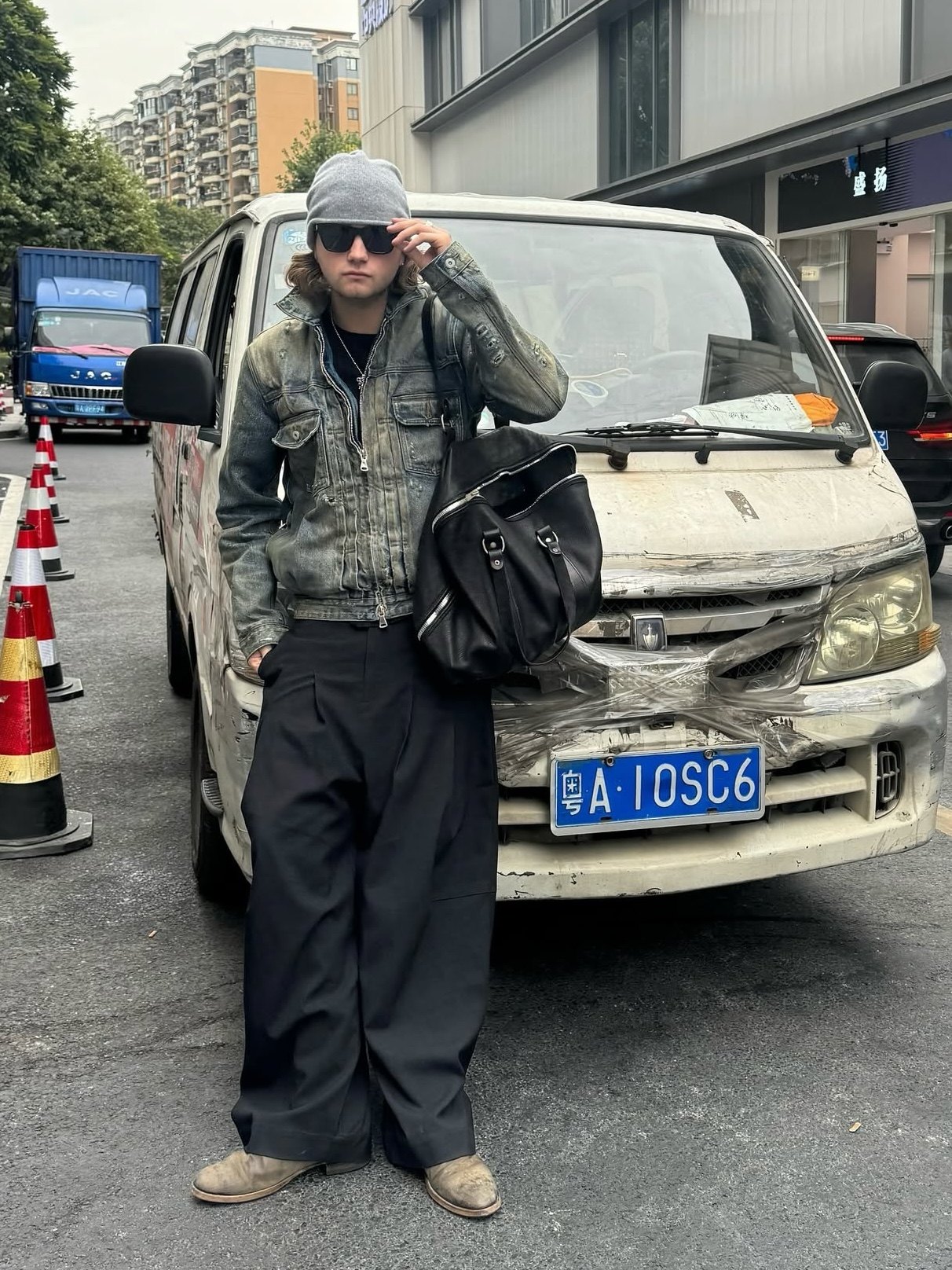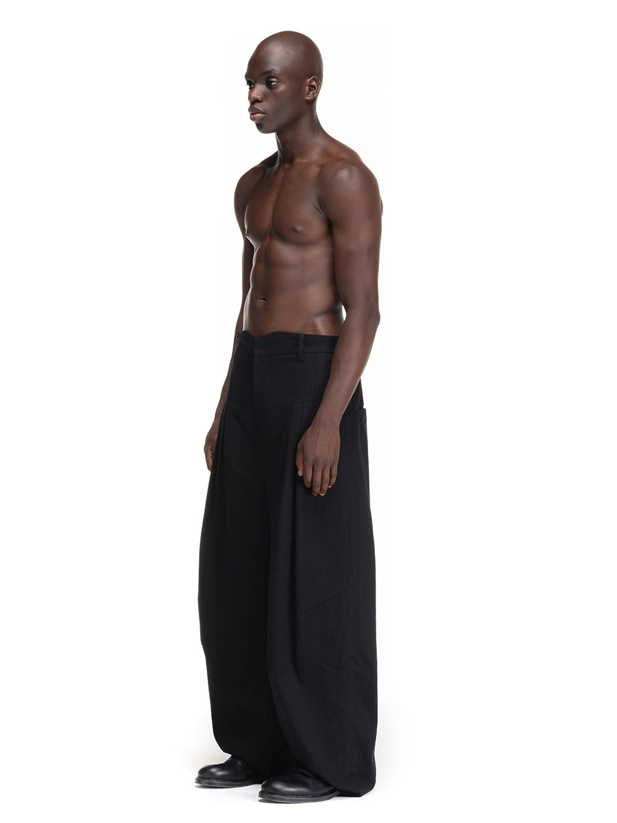 No Faith Studios Gray and Black Pleated Suit Pants Loose Wide-Leg Baggy Pleated Trousers