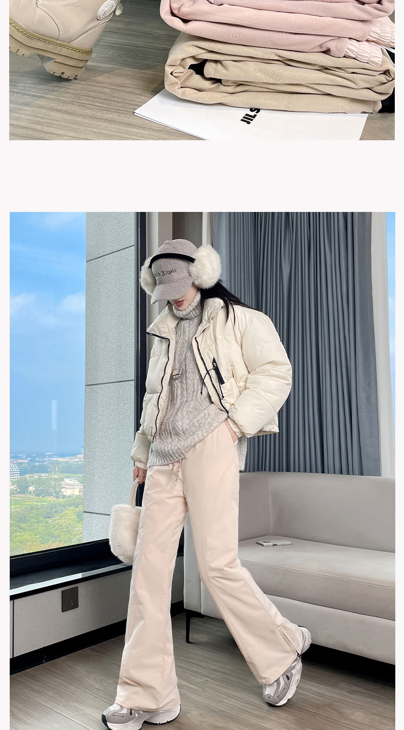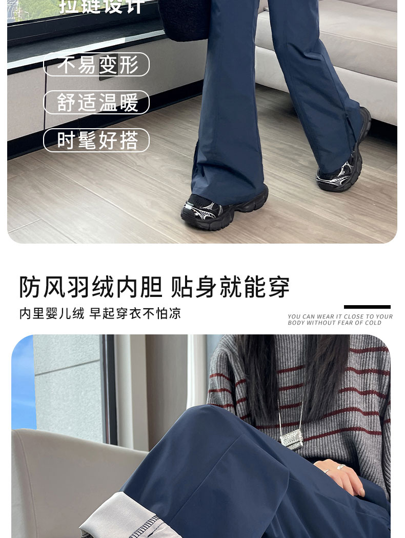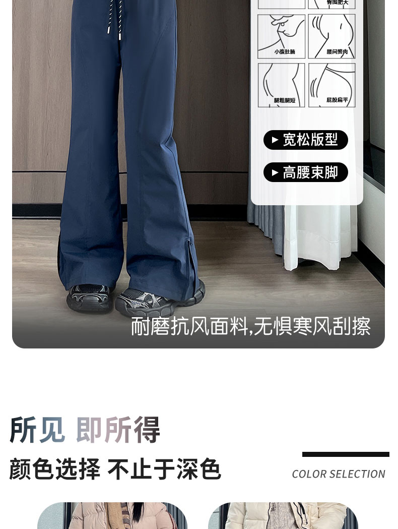 Yalu Micro-Flared down Pants for Women, Suitable for Outdoor Wear, Lulu 2025 New Winter Slim-Fit Casual Pants, Thickened Windproof Cotton Pants