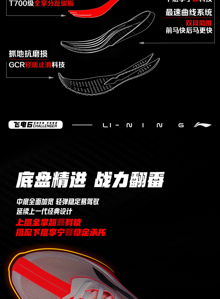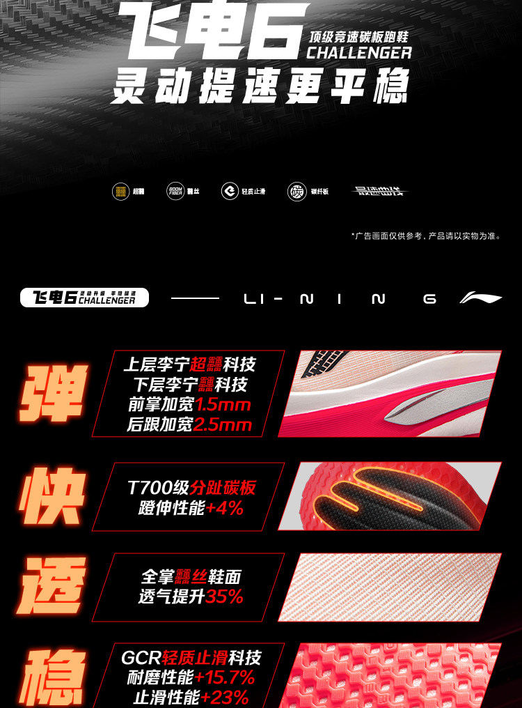 Li-Ning Feidian 6 Challenger丨 Ultra-Light Running Shoes for Men, Breathable Racing Carbon Plate Professional Competition Sports Shoes