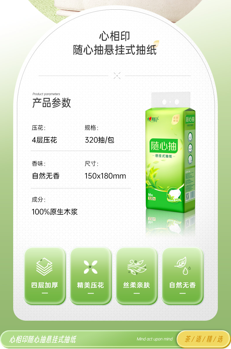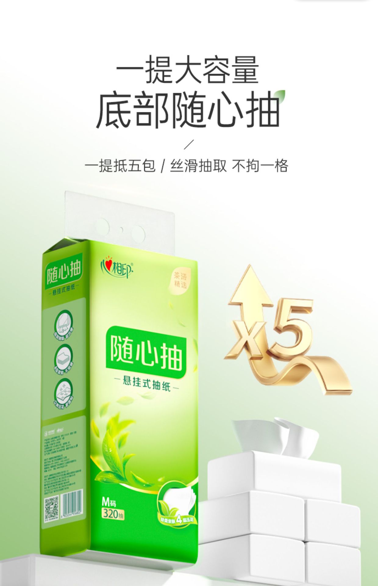 Xinxiangyin Hanging Tissue Paper, 320 Sheets, 4-Ply Household Napkins, Facial Tissues, Toilet Paper, Wall-Mounted