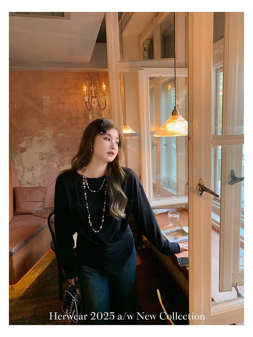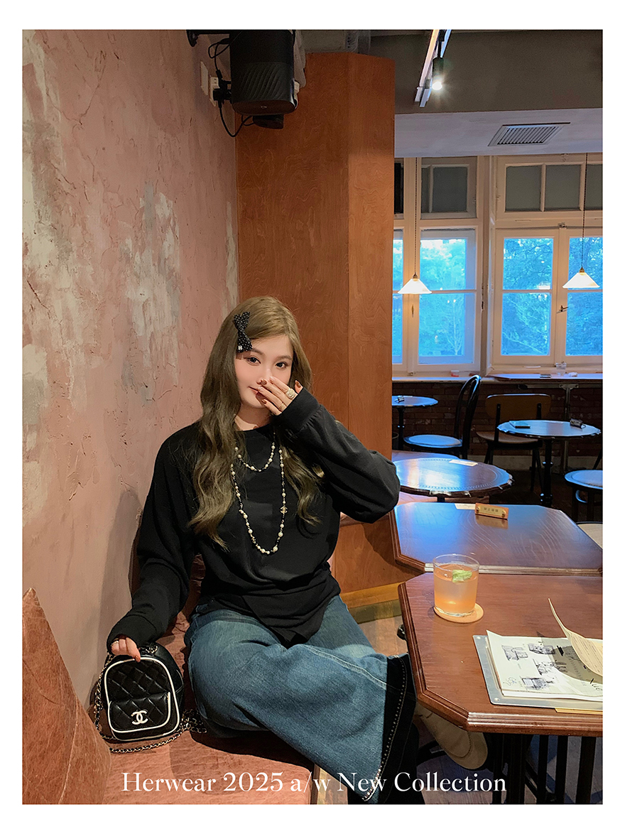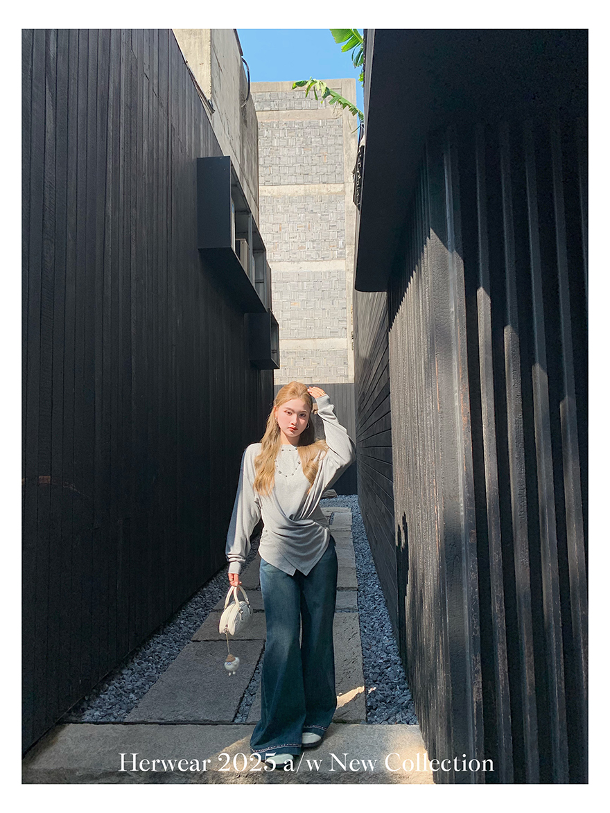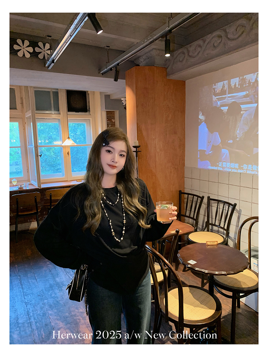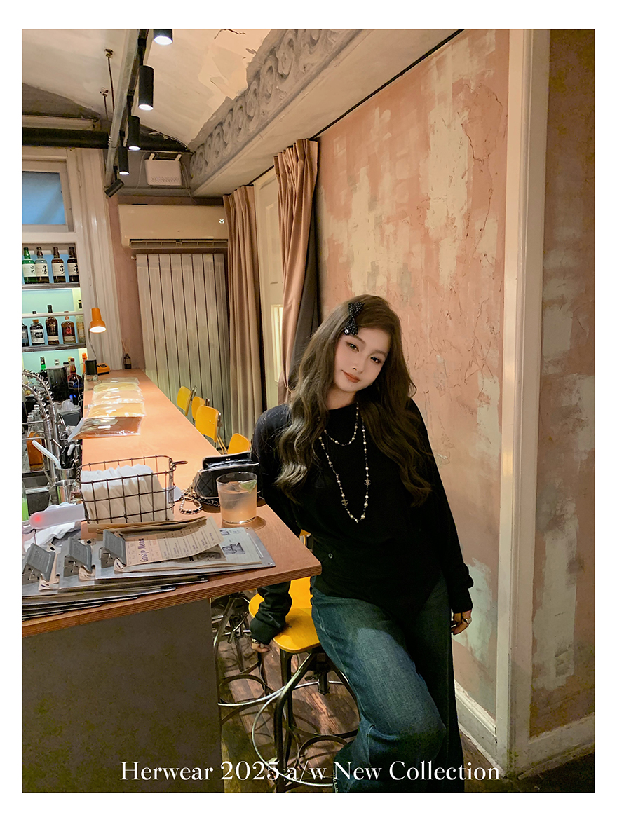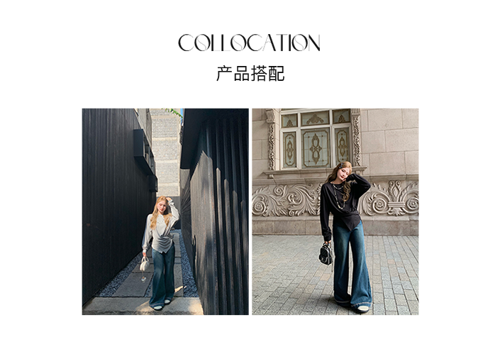 Herwear Slightly Chubby mm Deconstructed Aesthetics Slimming Waist-Cinching Long-Sleeve T-Shirt for Women with Cross Placket Loose Silhouette Top