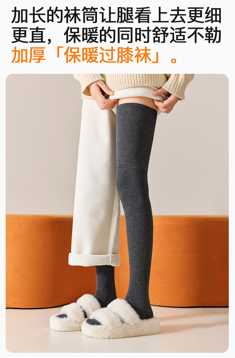 Gray Over-The-Knee Socks for Women, Autumn and Winter Long Socks, Warm and Thick, Slouch Socks, White Slimming Thigh-High Socks to Match Boots