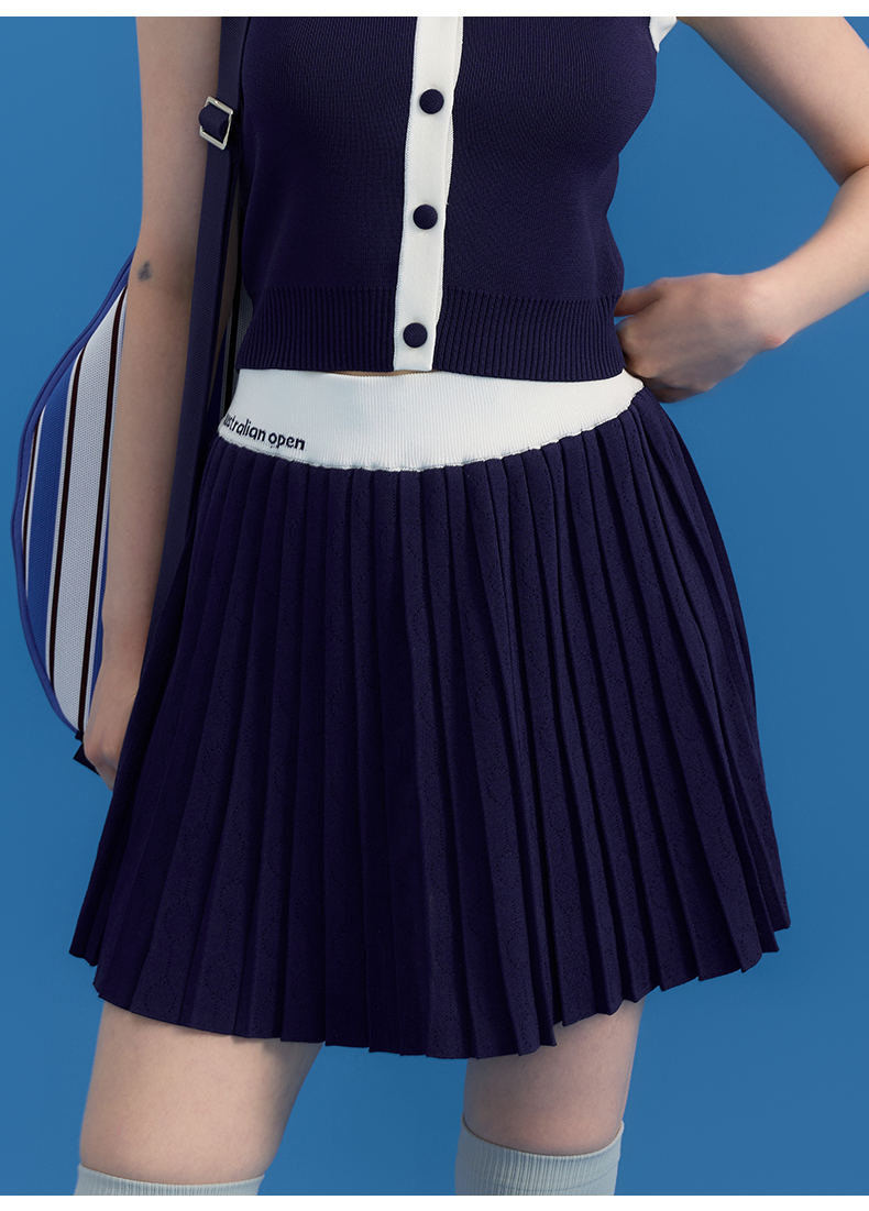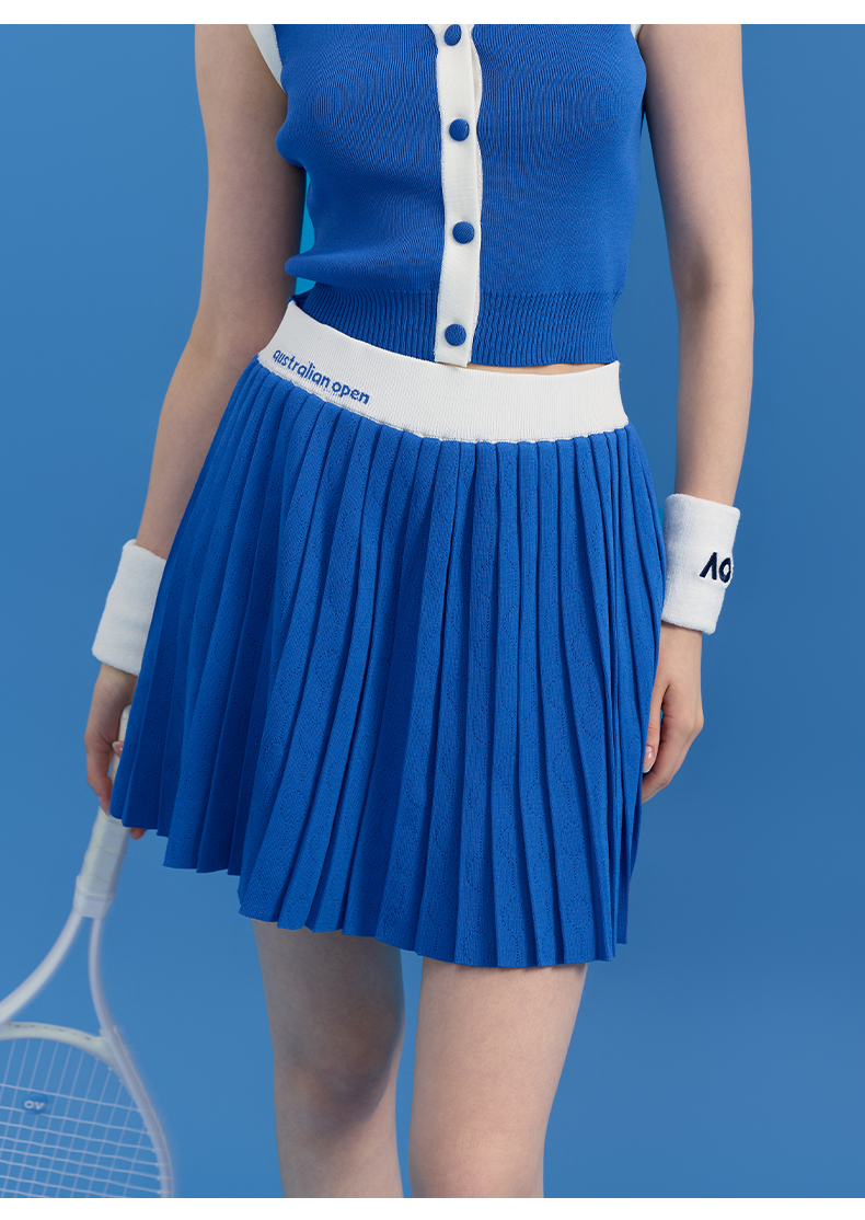 Ao Australian Open Sports Skirt, Color-Blocked Knit Skirt, Tennis Skirt, New Autumn 25 Collection, with Leggings to Prevent Exposure