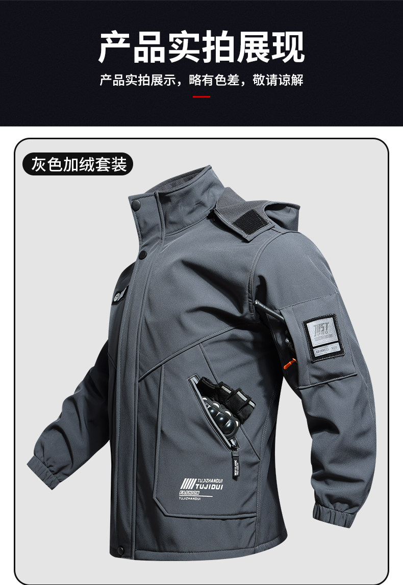Autumn and Winter Jacket Set for Men, Fleece-Lined, Three-In-One, Waterproof, Windproof, Thickened, Cycling, Cold-Proof, Warm, Outdoor Mountaineering Clothing