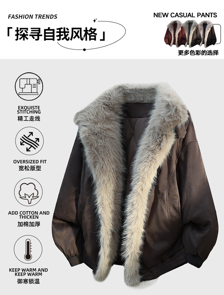 Jeep Spirit American Retro Style Mountain Carving down Cotton Jacket for Men, Winter Loose Fit Fur Collar Cotton Coat for Men