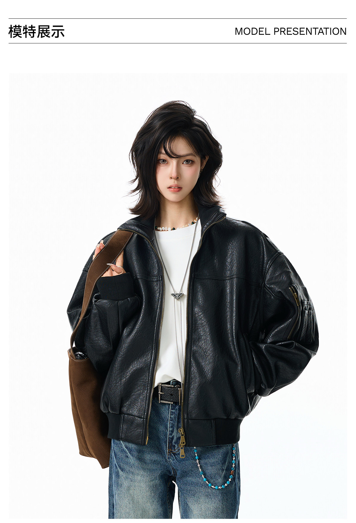 Bflc American Retro Urban Commuter Vintage Matte Texture Split Shoulder Pu Leather Jacket for Men Trendy