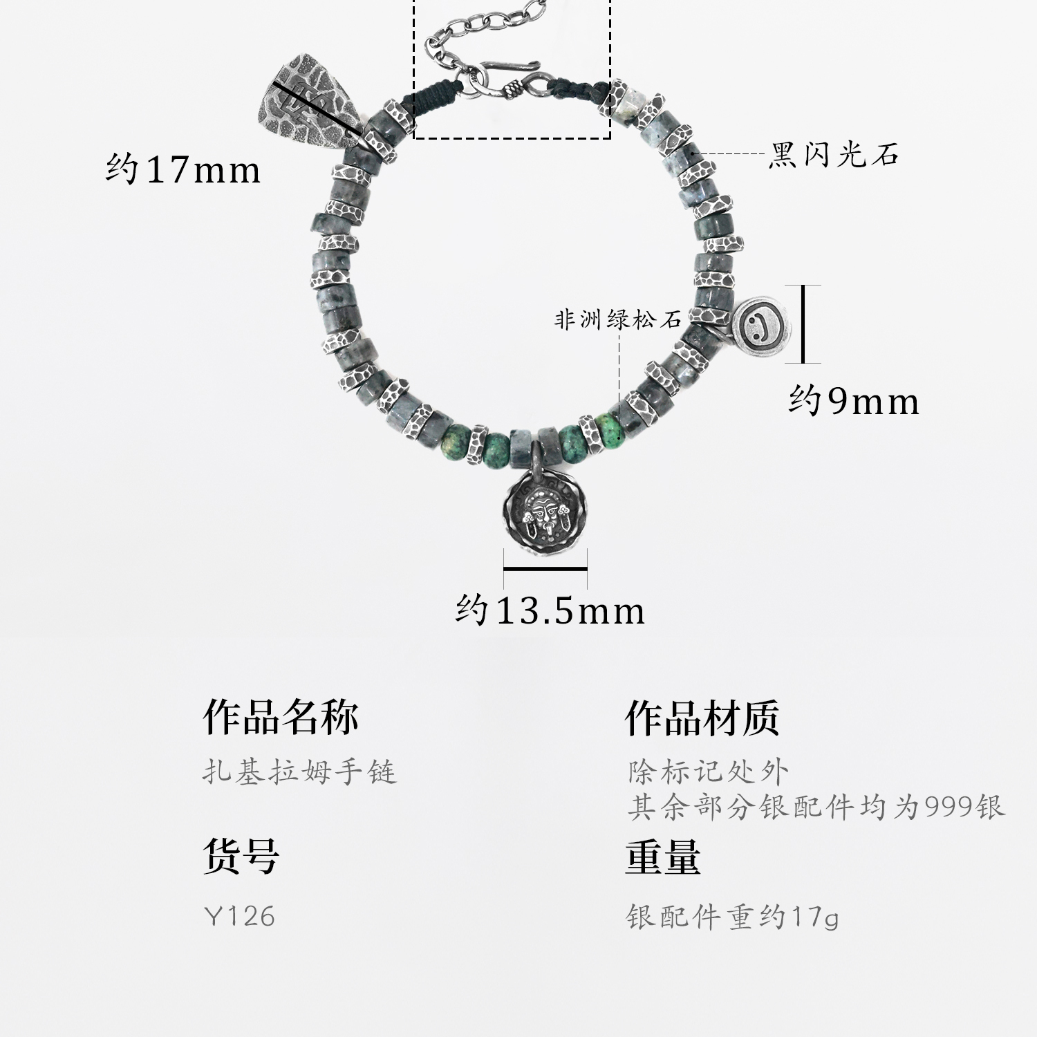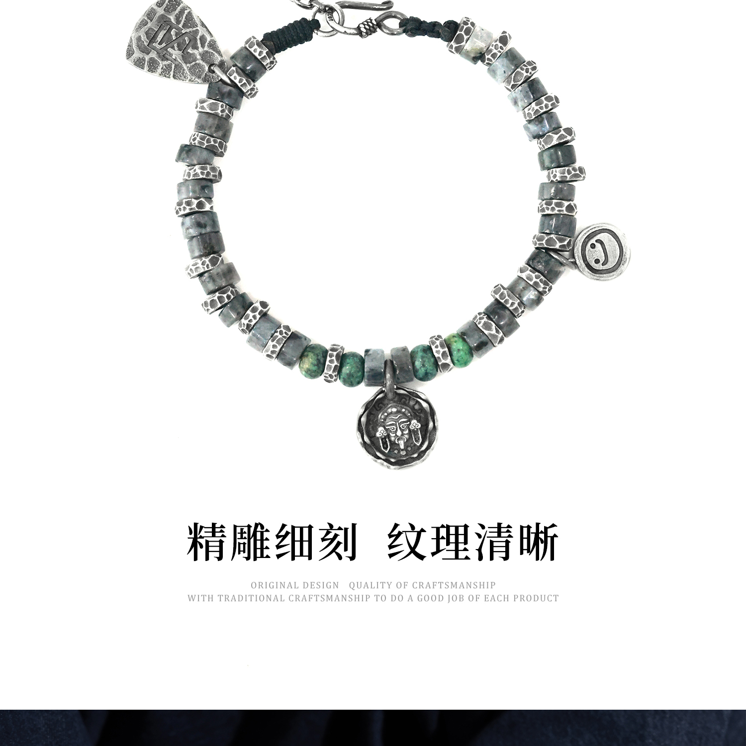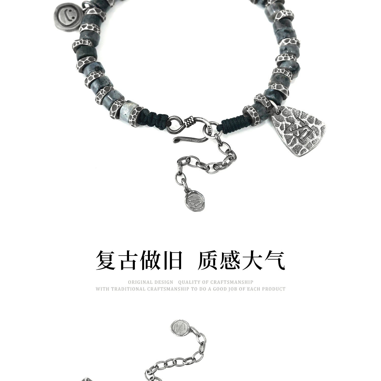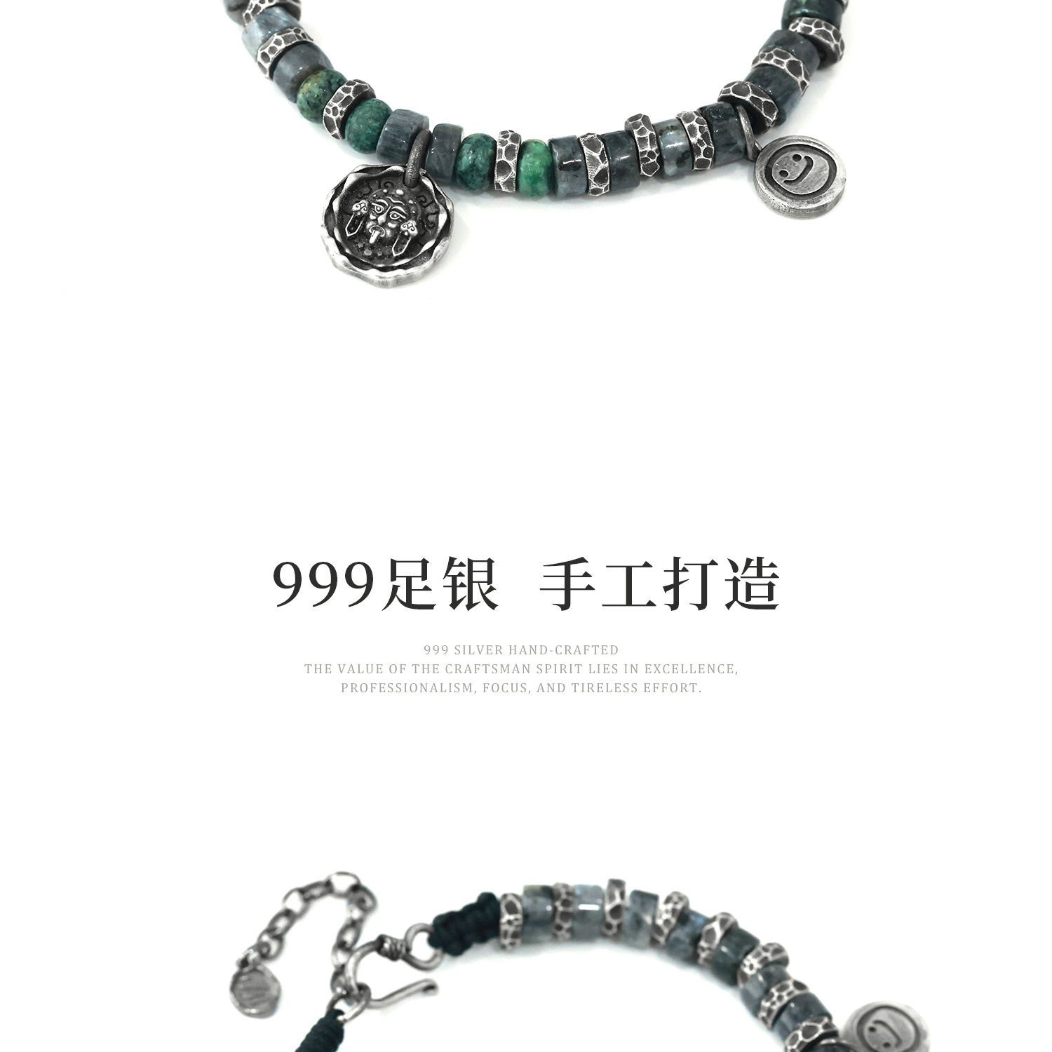 Silver Art Original 999 Pure Silver'Zakiram' Men's Coiled Bracelet, Men's Niche Tibetan Style Bracelet Cord