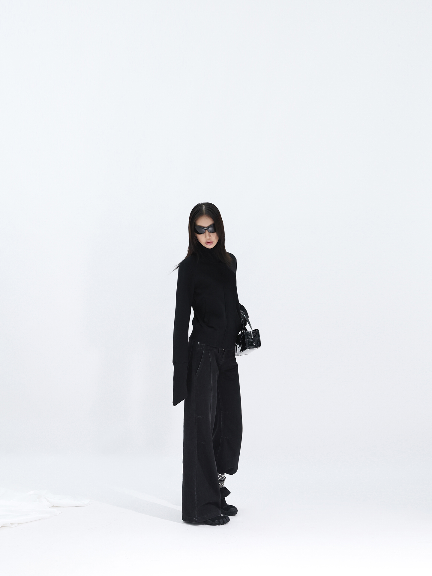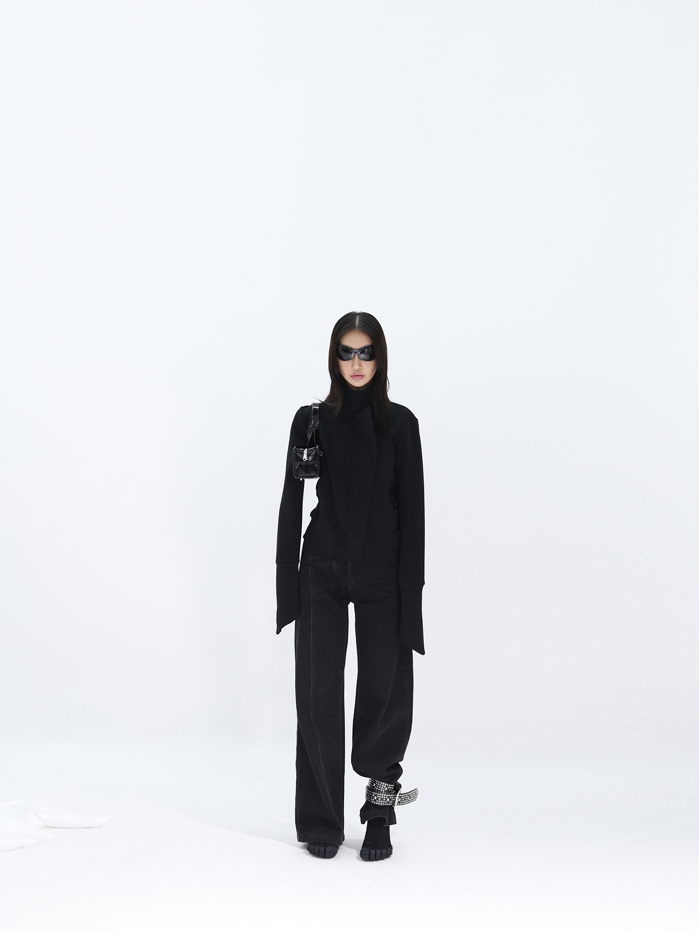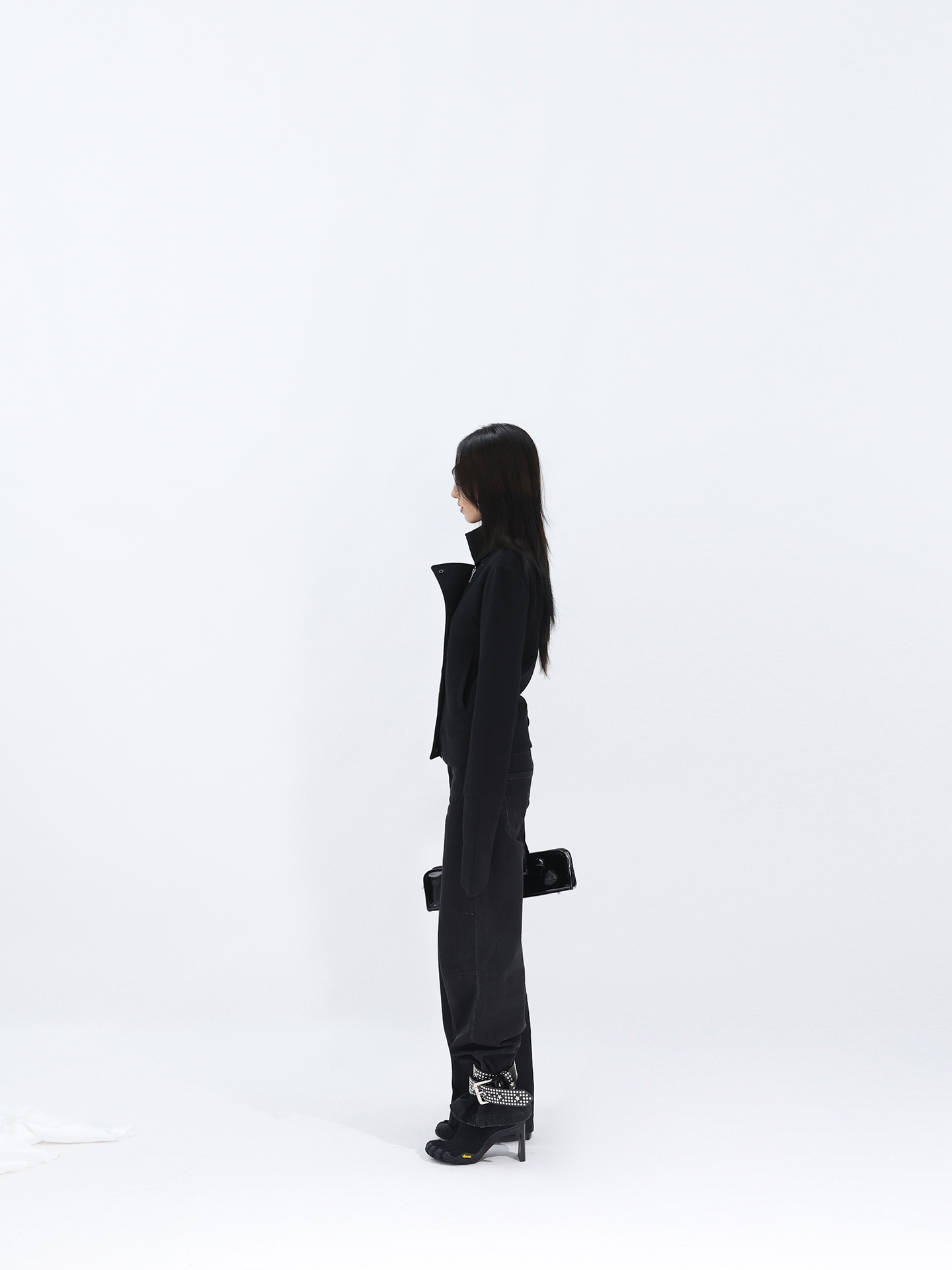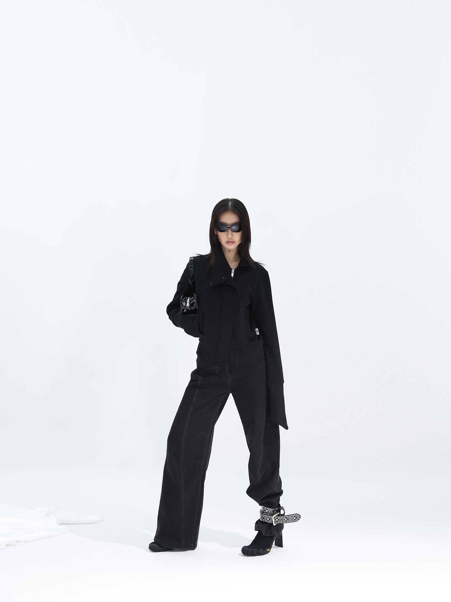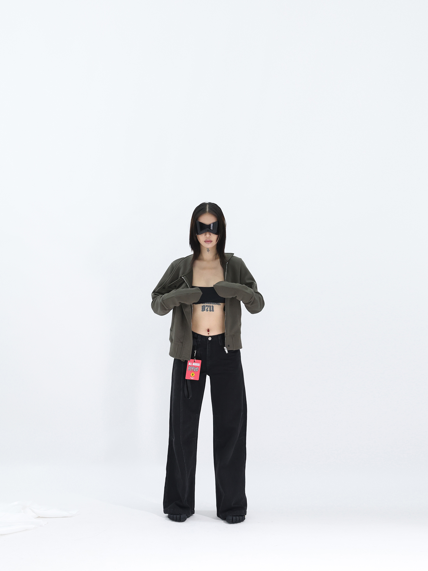 Meiya Fuzzykon Sharp Pointed Collar 320g Sweatshirt with Zigzag Stitching and Diagonal Zipper Jacket Black/Military Green