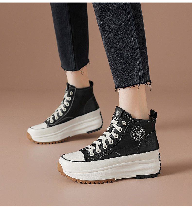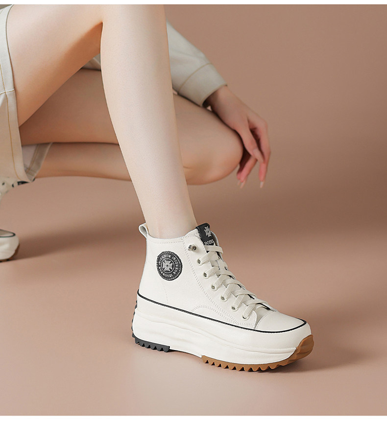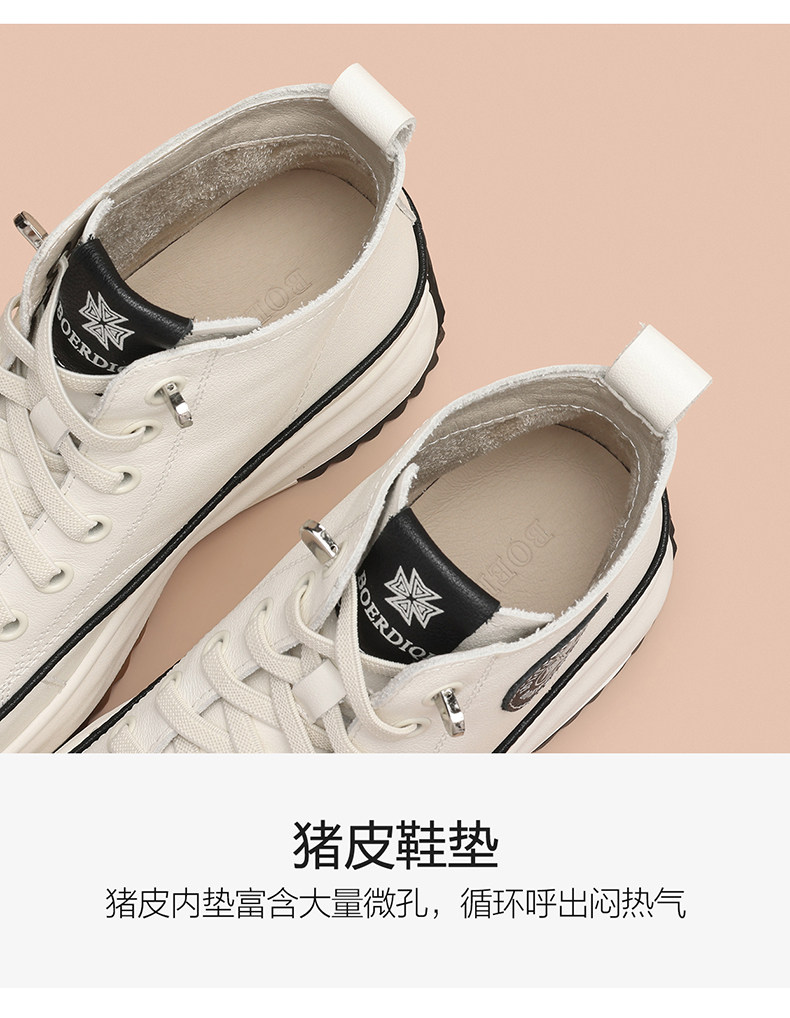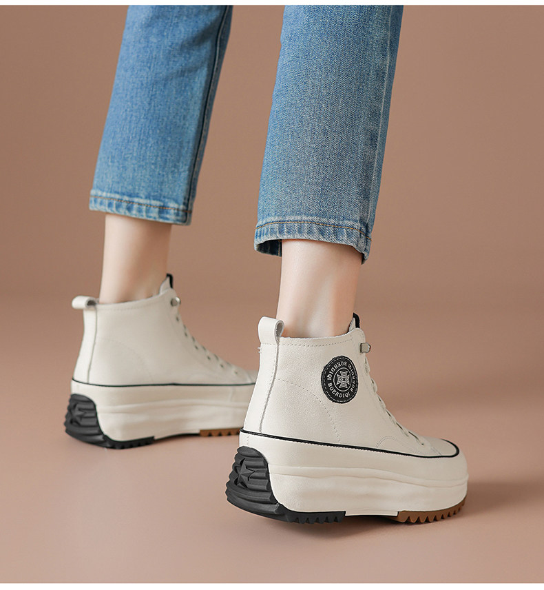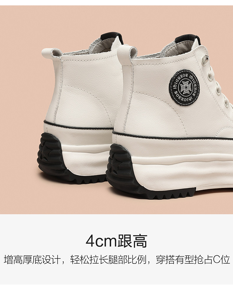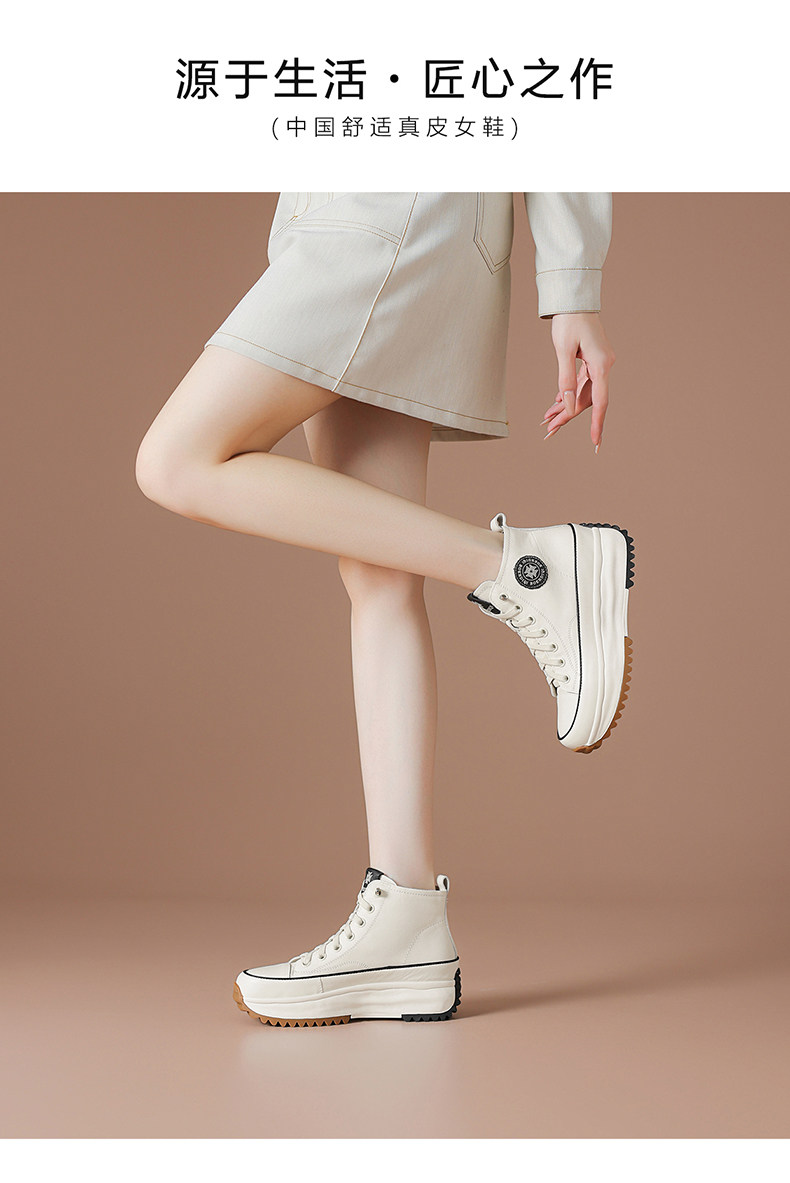 Boldeqi [First Layer Cowhide] Thick-Soled High-Top Shoes for Women, Spring and Autumn Style, Sports Casual Shoes, Versatile White Shoes