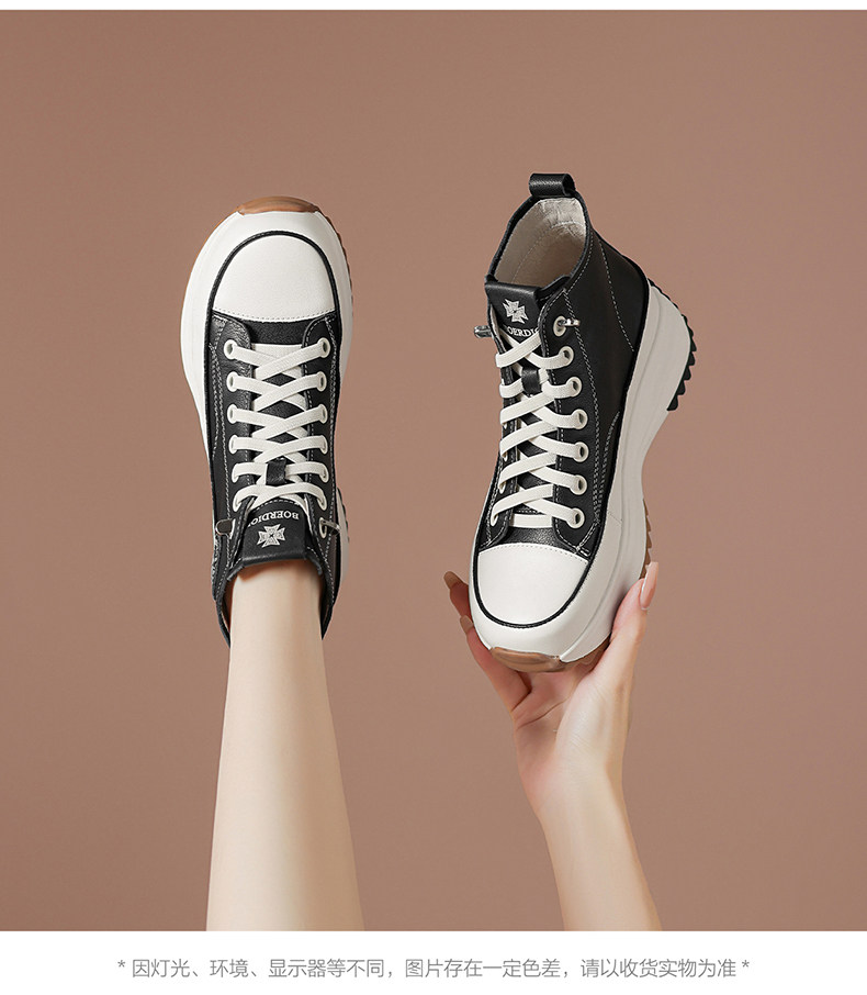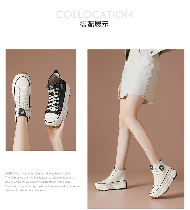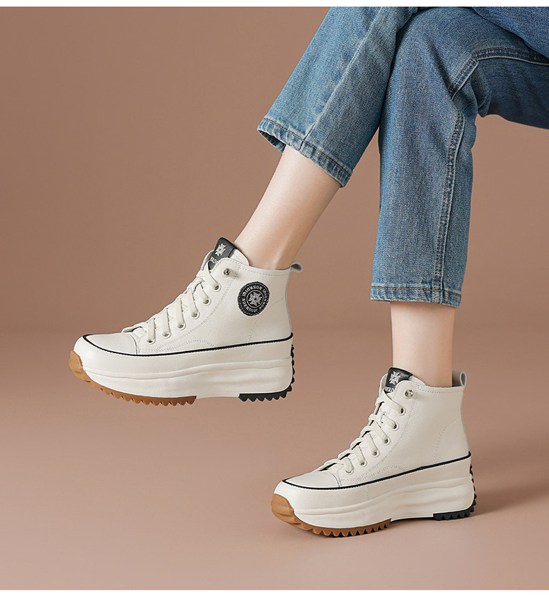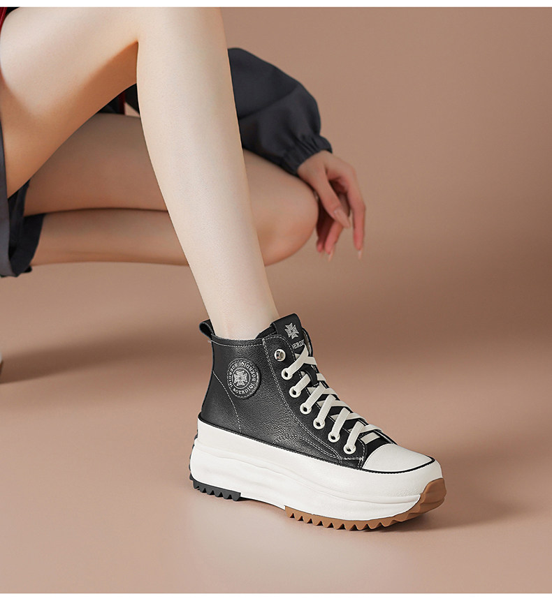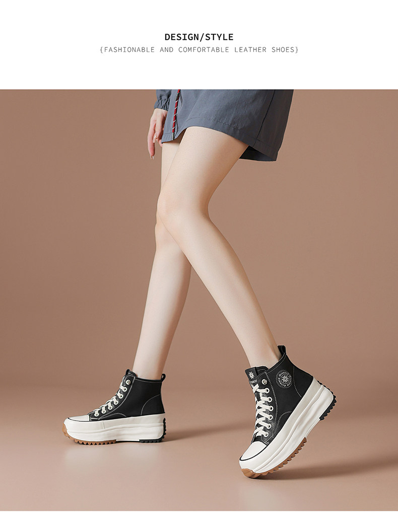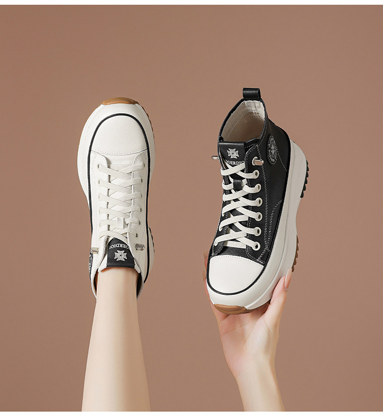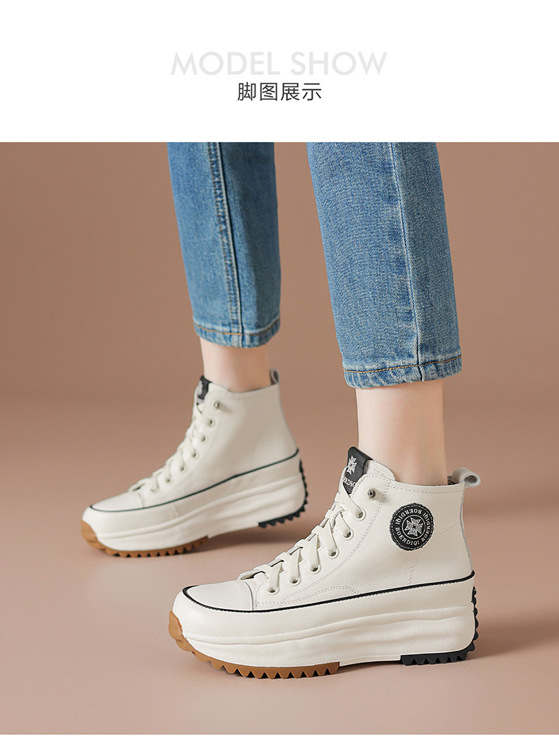 Boldeqi [First Layer Cowhide] Thick-Soled High-Top Shoes for Women, Spring and Autumn Style, Sports Casual Shoes, Versatile White Shoes