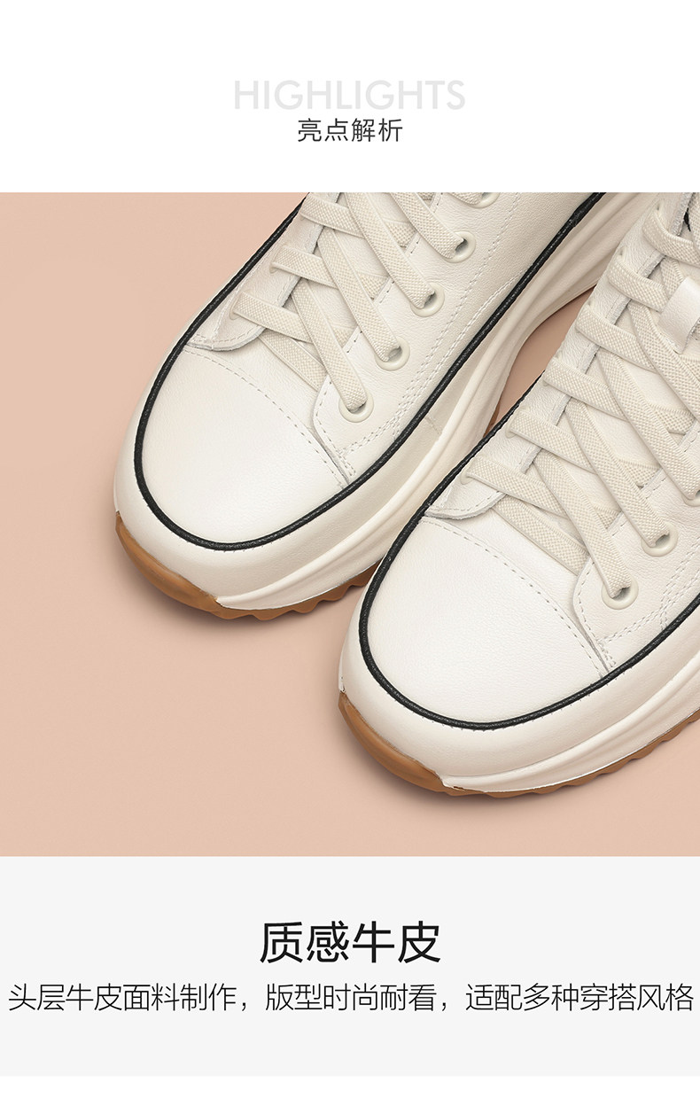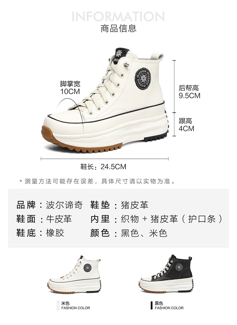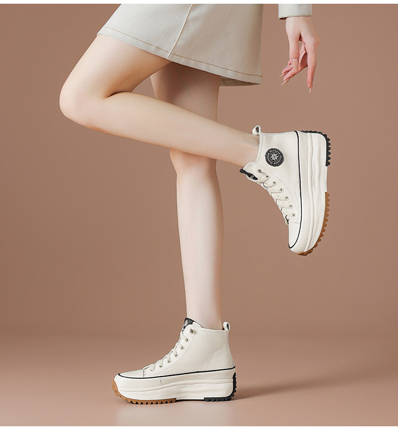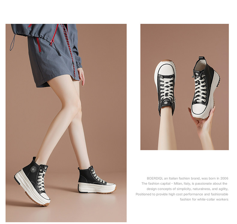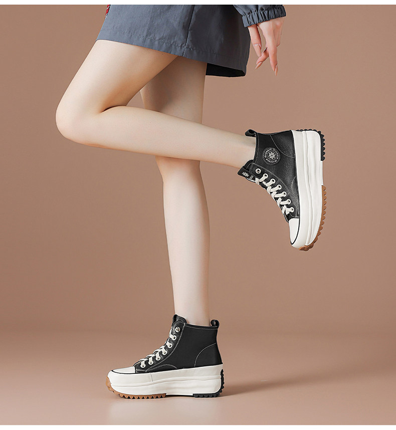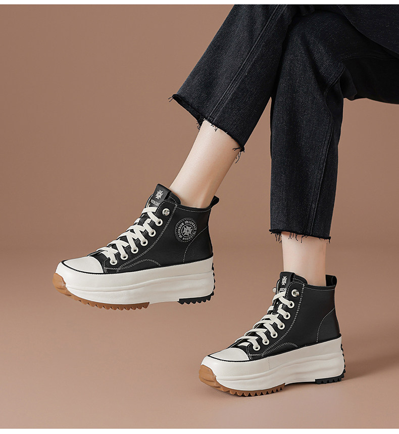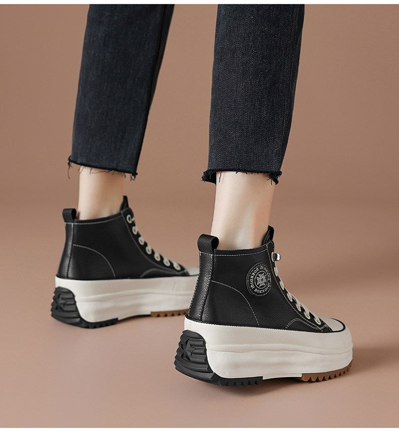 Boldeqi [First Layer Cowhide] Thick-Soled High-Top Shoes for Women, Spring and Autumn Style, Sports Casual Shoes, Versatile White Shoes