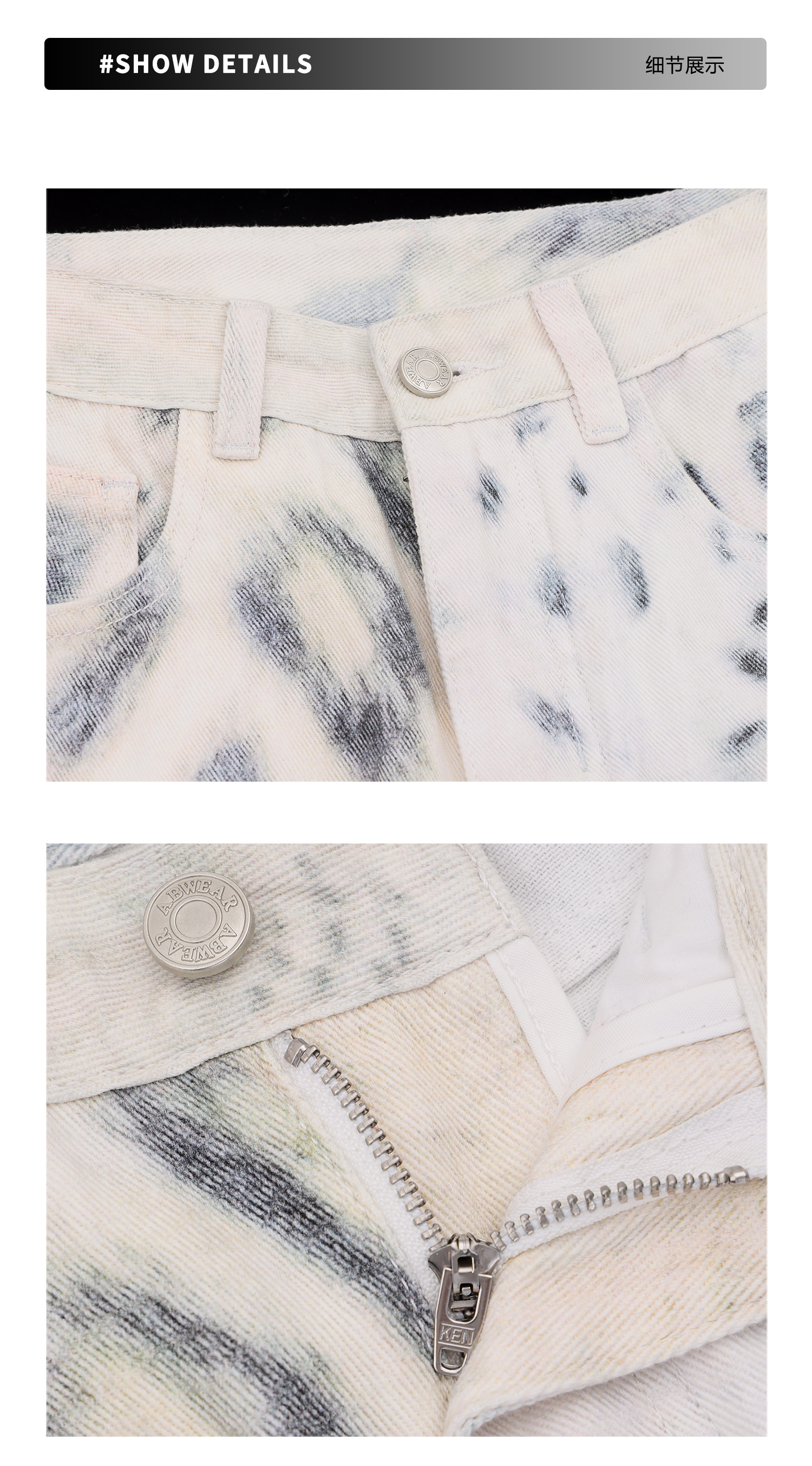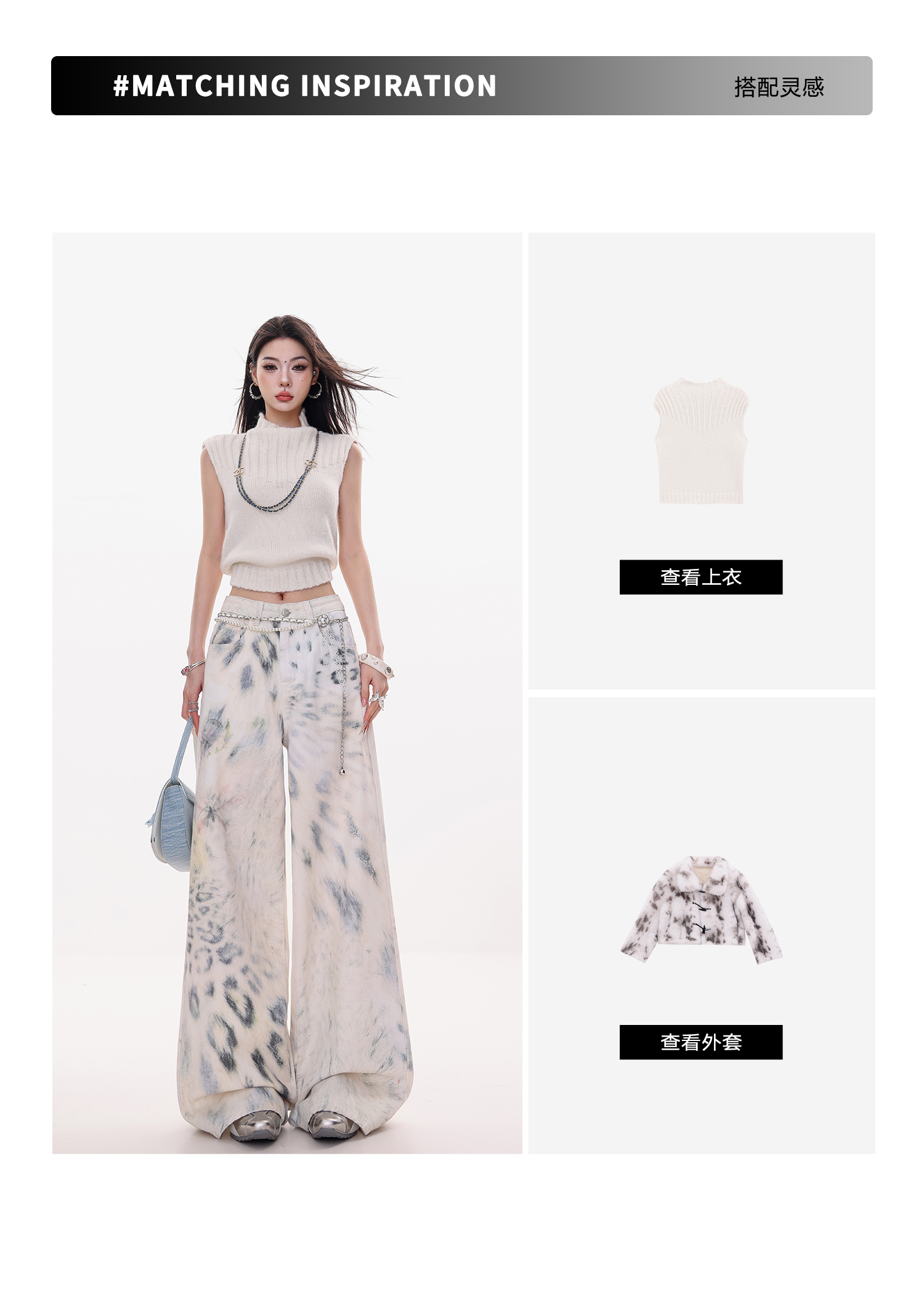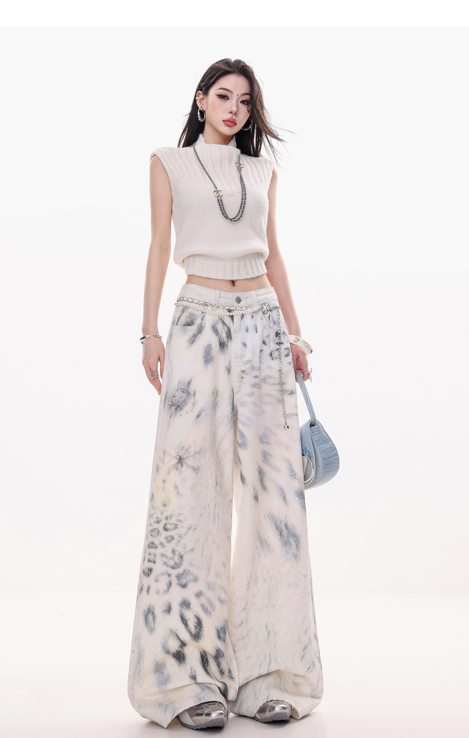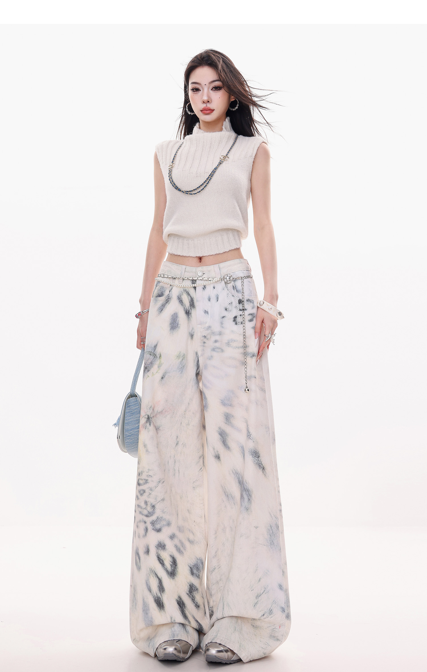 Abwlr Evening Snow Flowing Years - Original Leopard Print Tie-Dye Wide-Leg Jeans for Women, New Autumn/Winter Loose Fleece-Lined Floor-Length Pants
