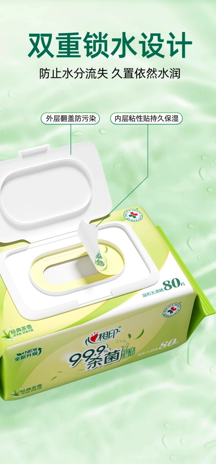 Heart-to-heart Wipes 999 Sterilization Wipes Hand-to-mouth Special Tea Tree Sterilization Wipes 80 Bags of Wet Wipes
