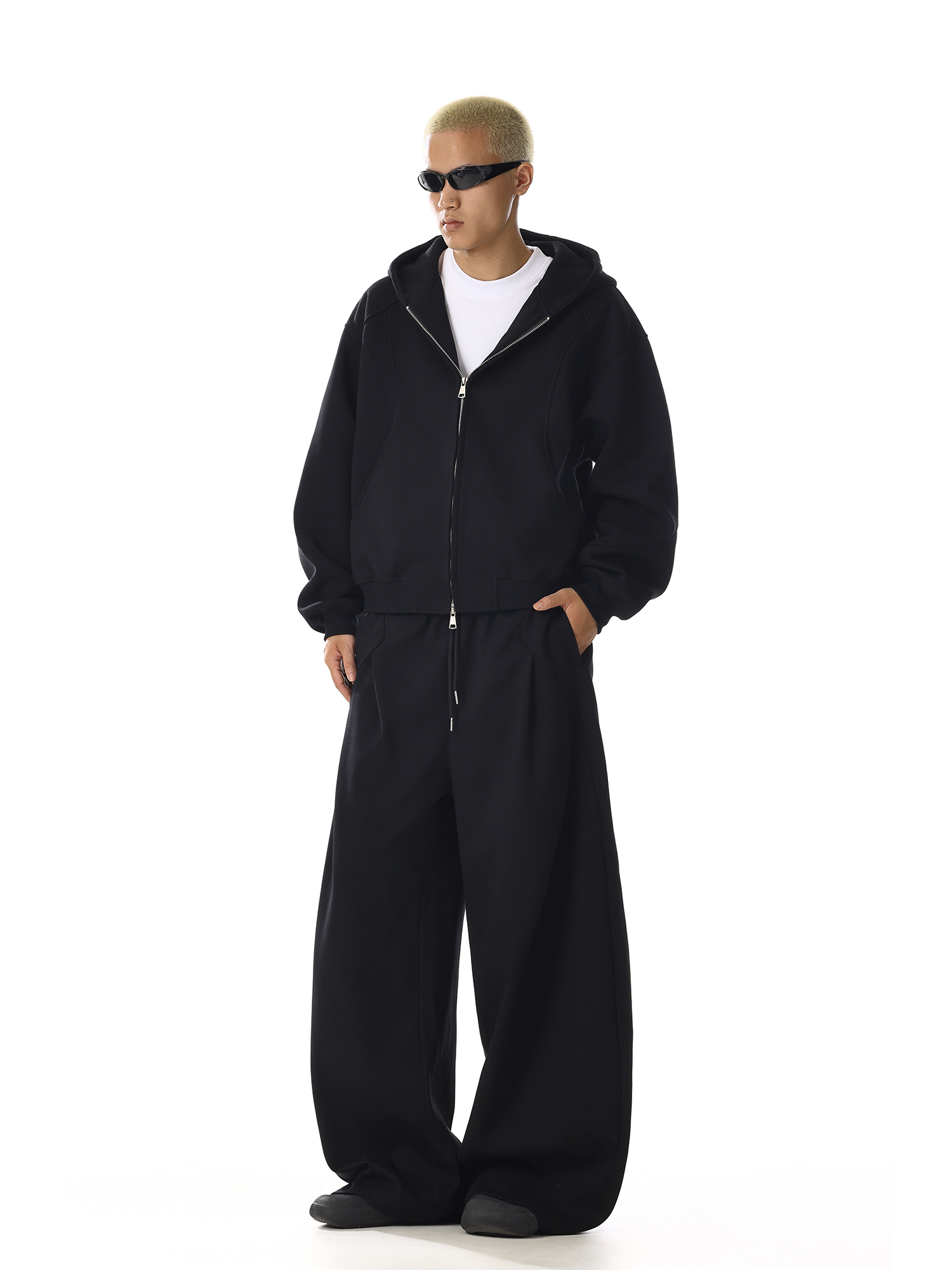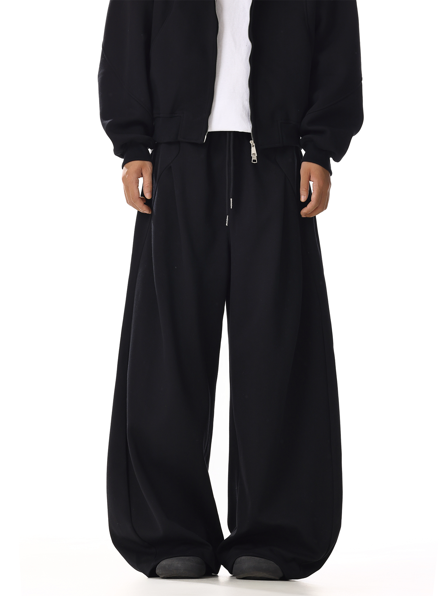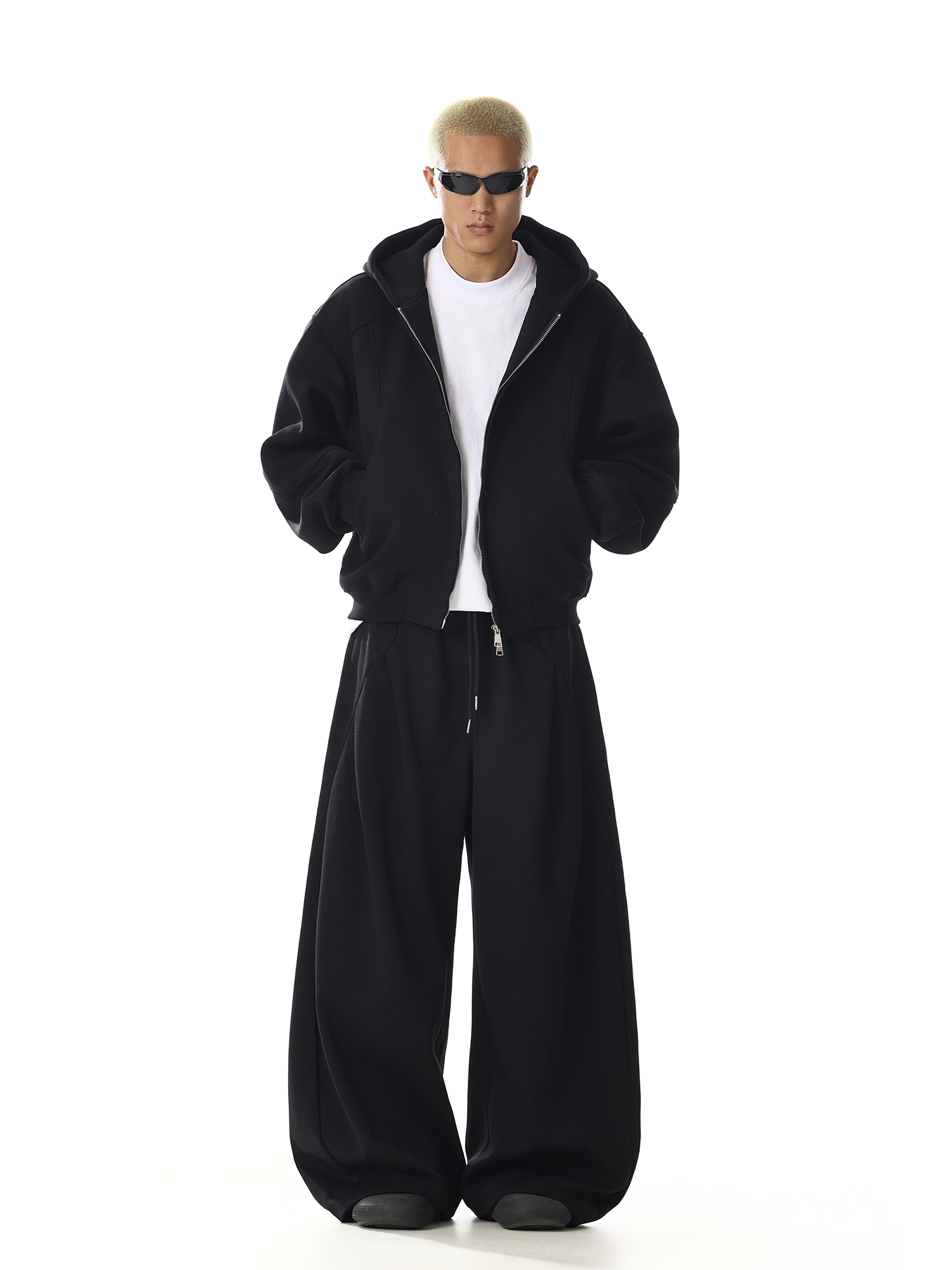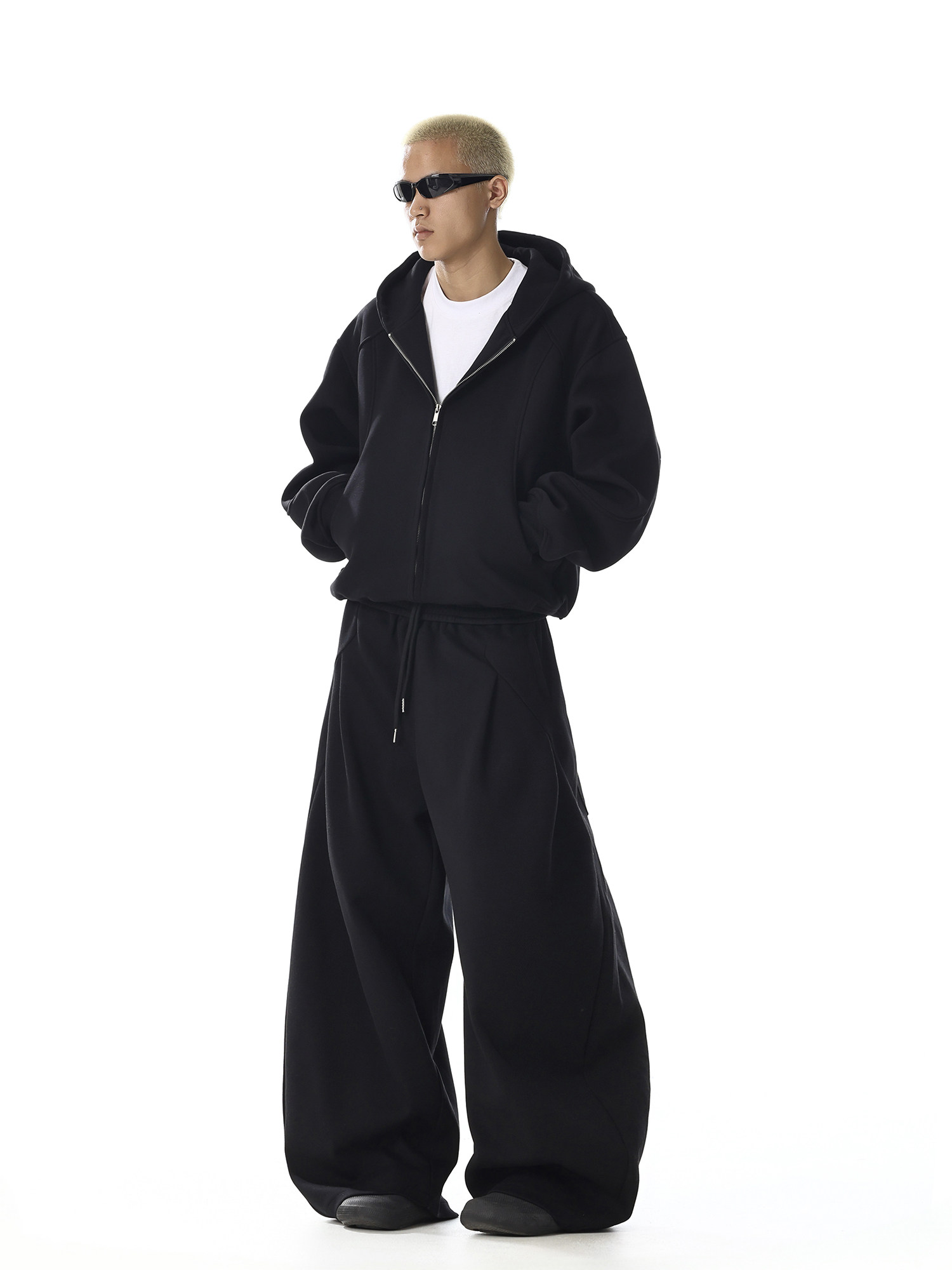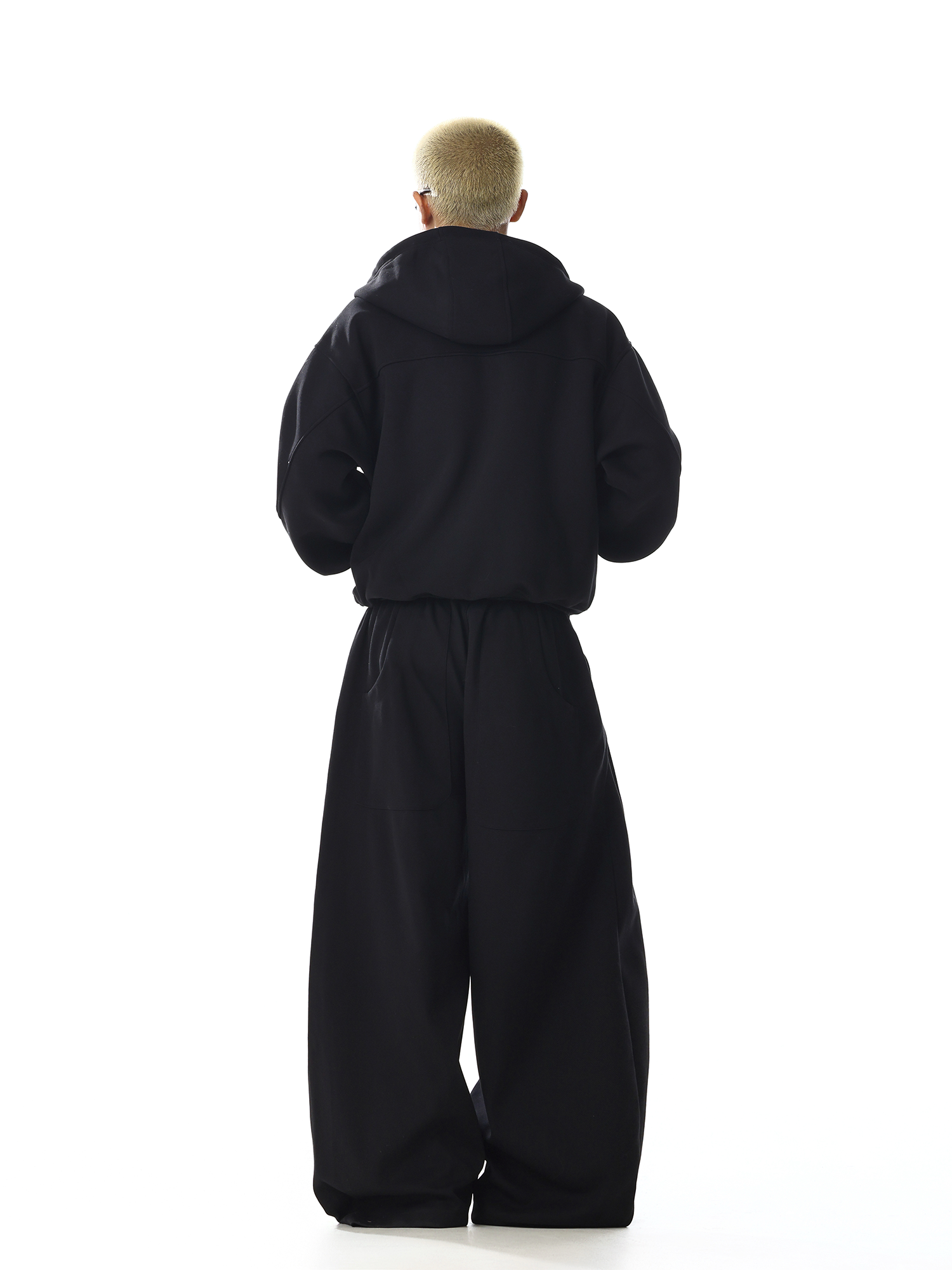 American Retro Black Sweatpants for Men and Women, with a Unique Design, Deconstructed, Loose, Slimming, Straight-Leg, Wide-Leg, Scimitar-Style Sports Pants