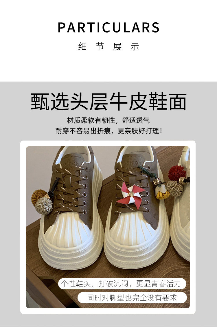 Hong Kong Shell-Toe Platform Sneakers for Women 2025 Spring and Autumn New Korean Style Fashionable Casual White Shoes for Petite Women