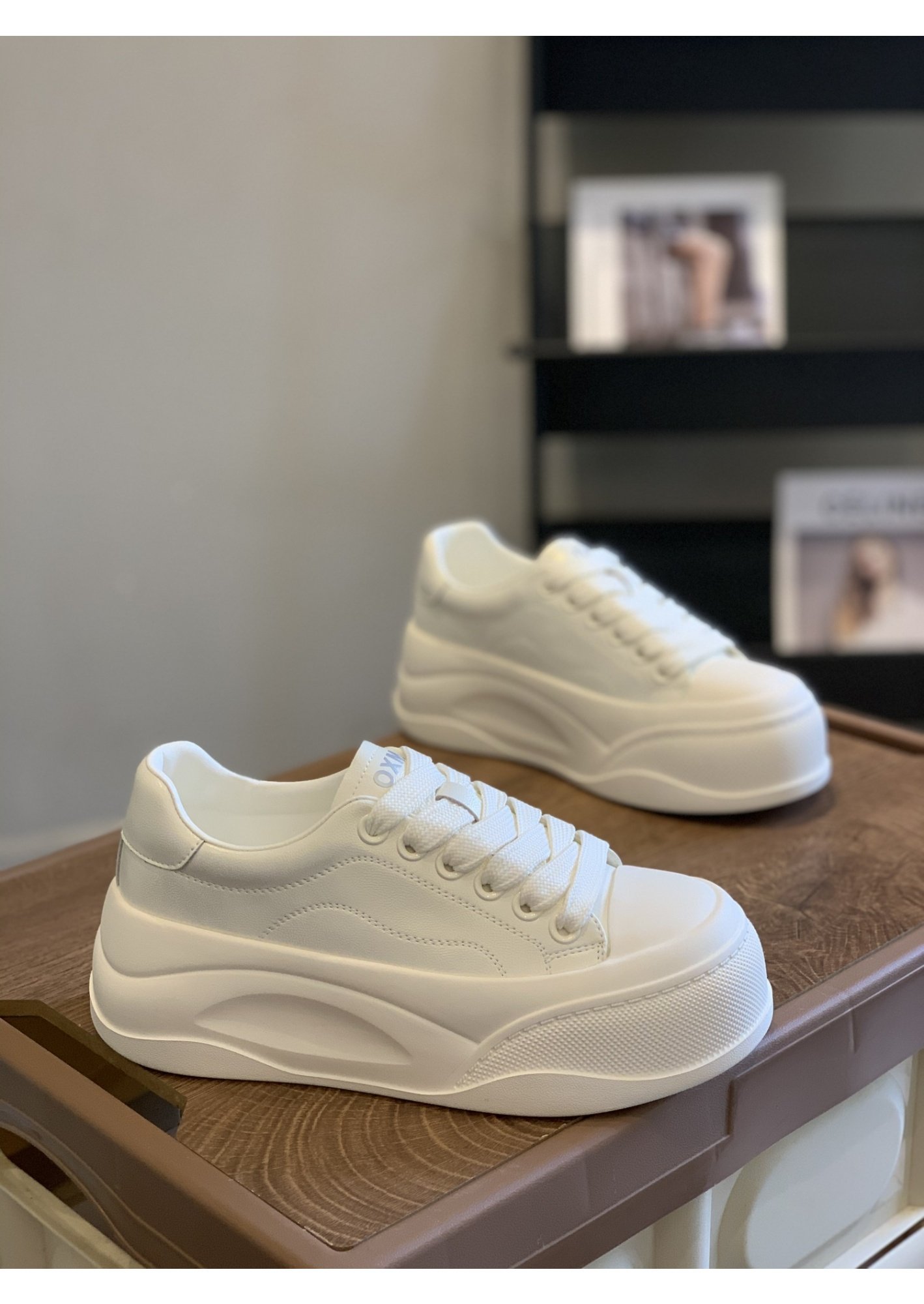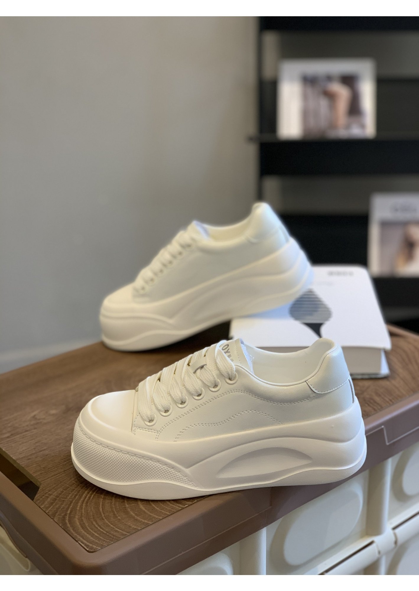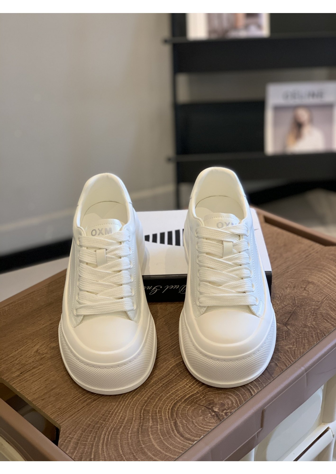 Hong Kong Lightweight and Simple Lace-Up Sneakers for Women 2025 Autumn and Winter New Versatile Comfortable Thick-Soled Casual Popular White Shoes