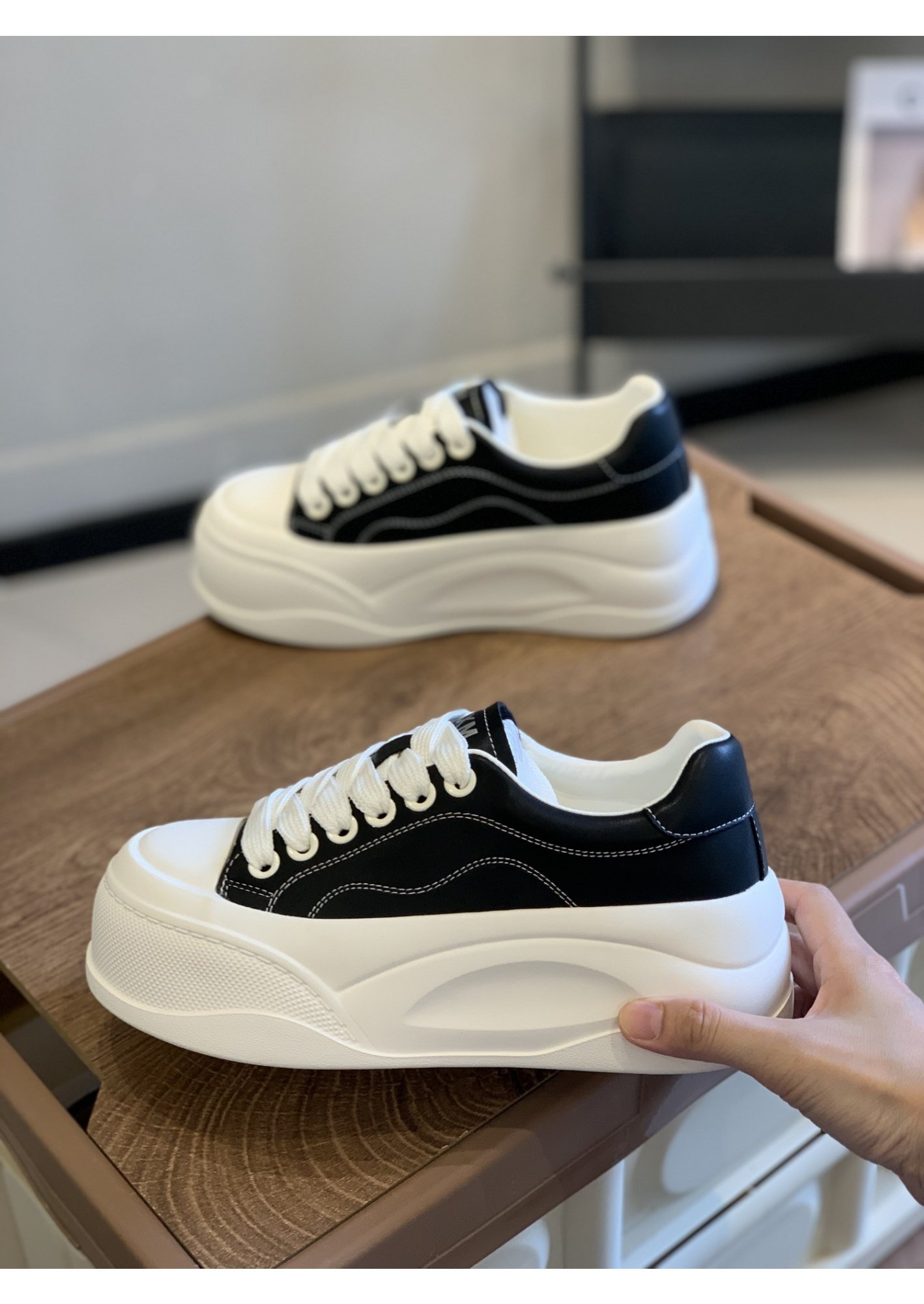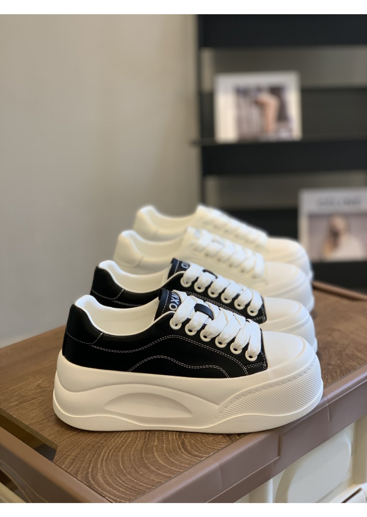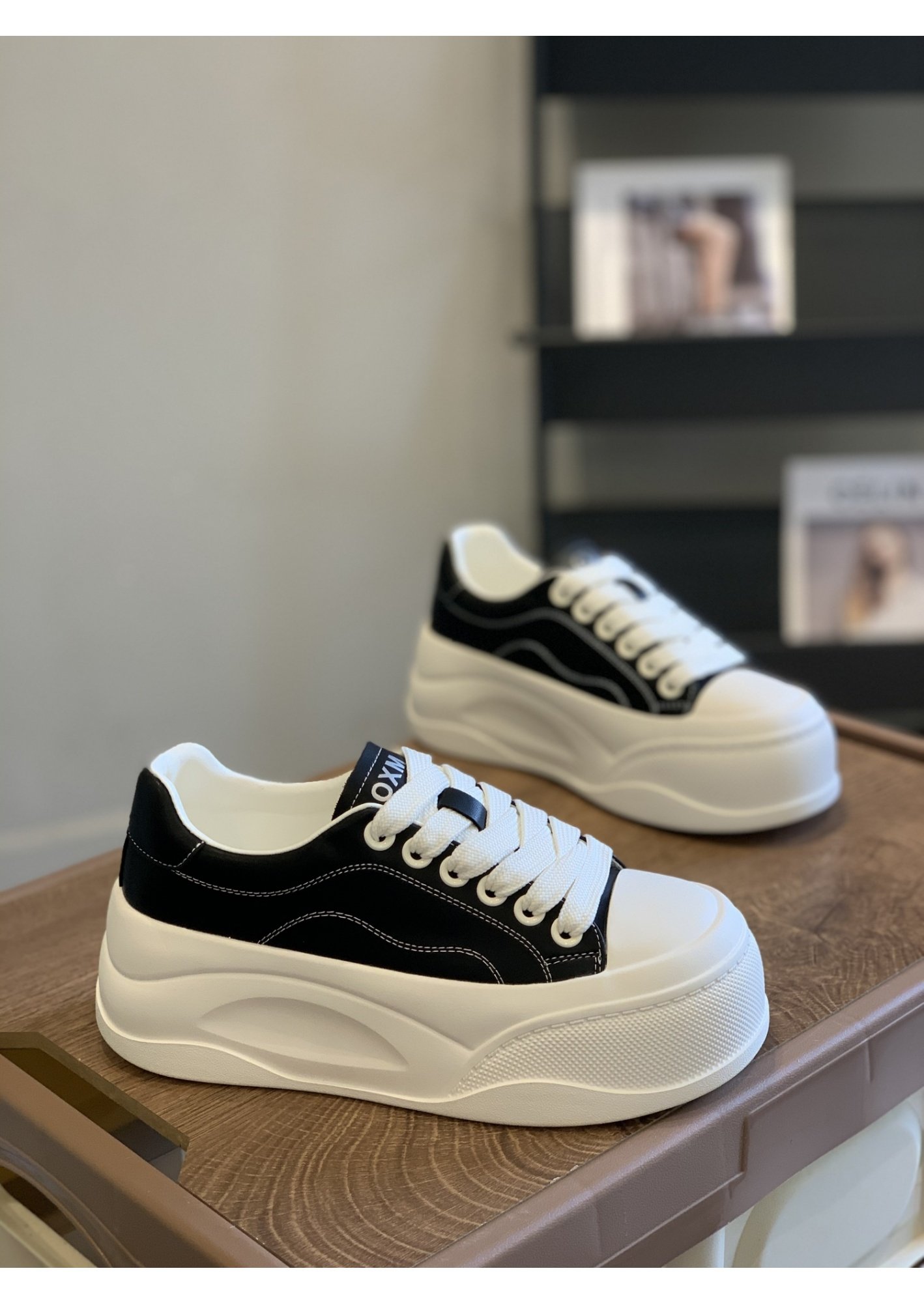 Hong Kong Lightweight and Simple Lace-Up Sneakers for Women 2025 Autumn and Winter New Versatile Comfortable Thick-Soled Casual Popular White Shoes