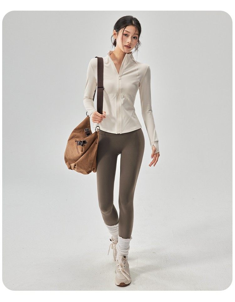 Autumn and Winter Yoga Clothing Jacket for Women, Fleece-Lined, Slim Fit, Sports Jacket for Outer Wear, Running, Pilates Training, Fitness Clothing