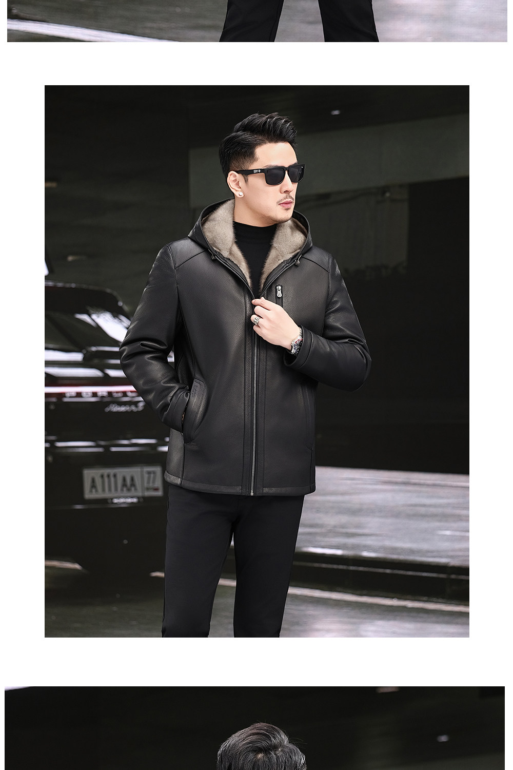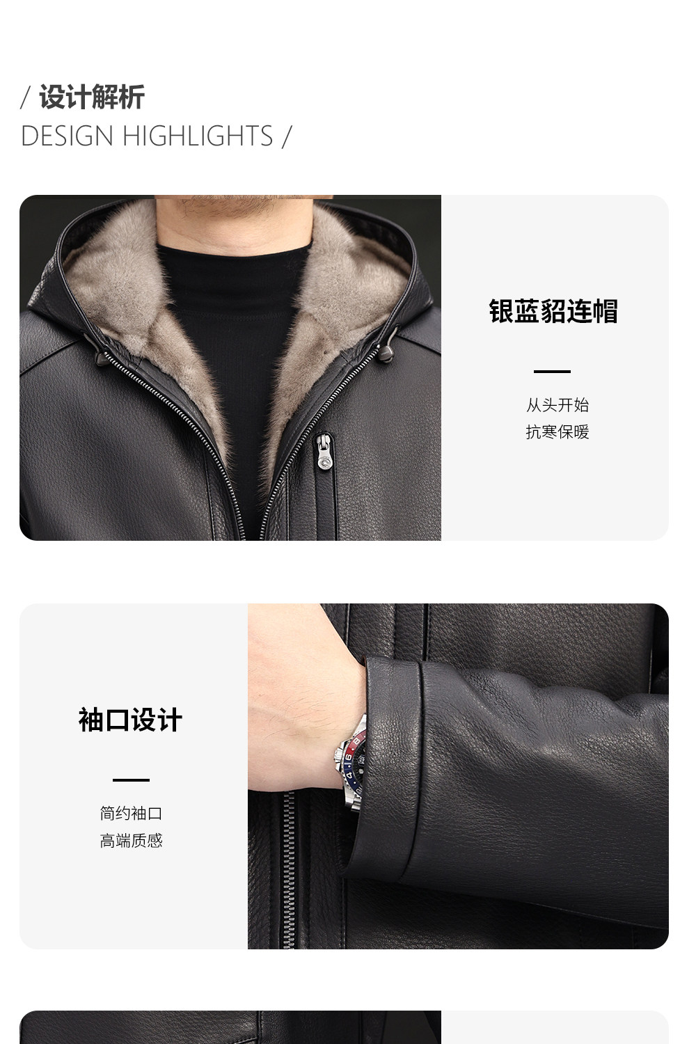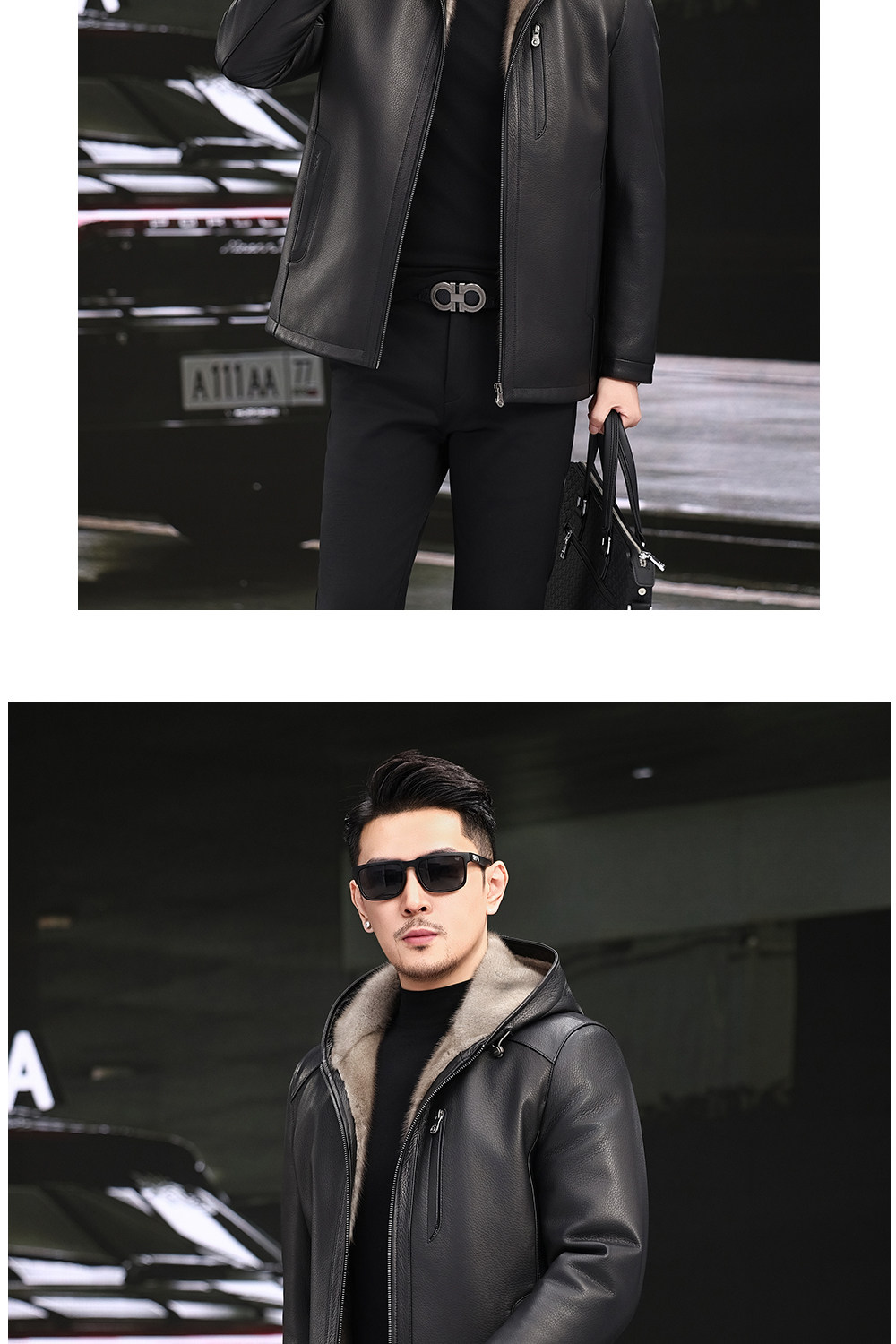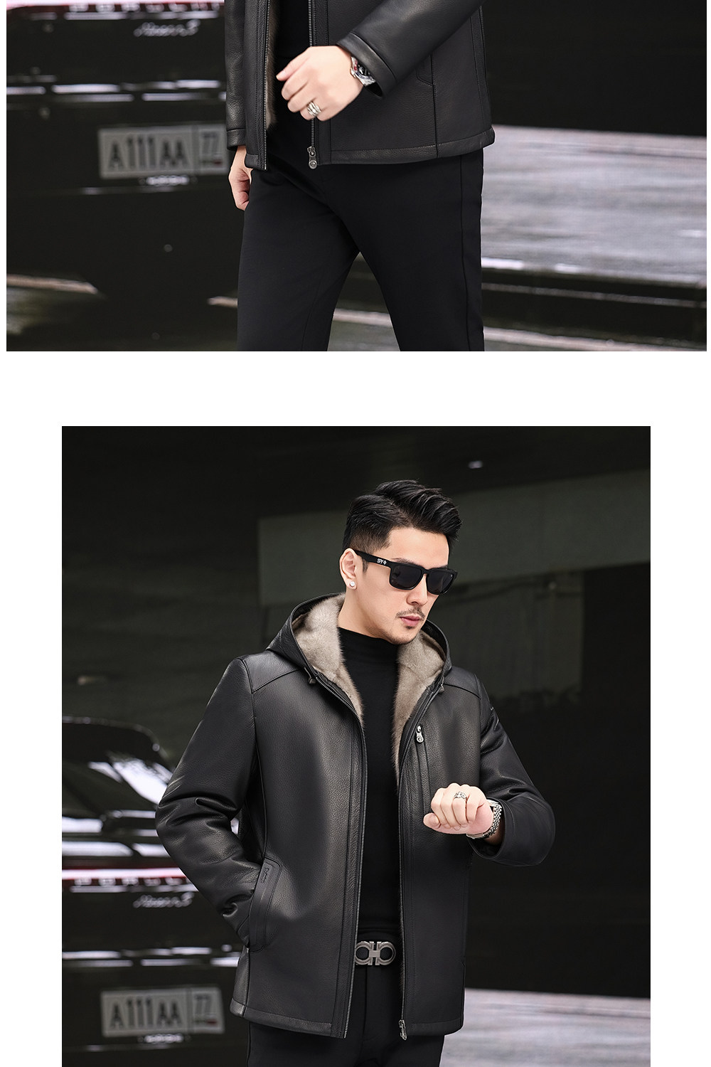 Imported Silver Orchid Whole Mink Fur Lining Genuine Leather Jacket for Men, High-End Deerskin Mid-Length Hooded Trench Coat, Winter Fur Coat