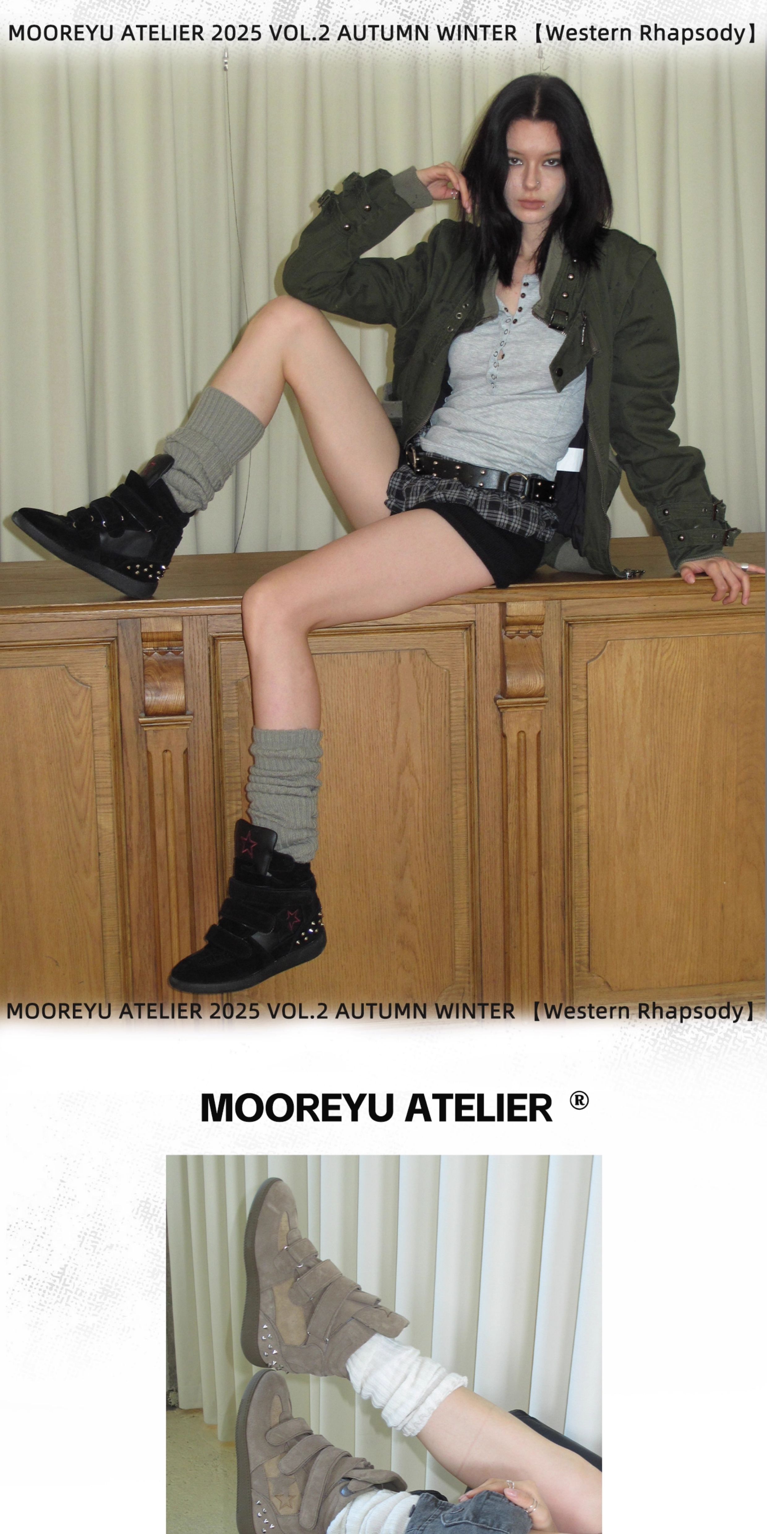 Mooreyu Atelier Original Genuine Leather Retro High-Top Shoes for Women Casual Thick-Soled Height-Increasing Sneakers Autumn