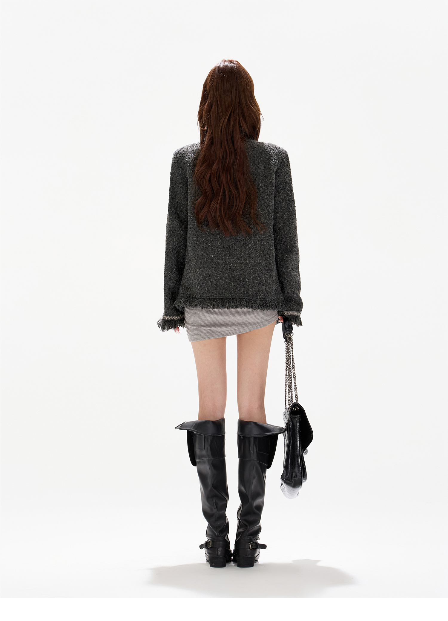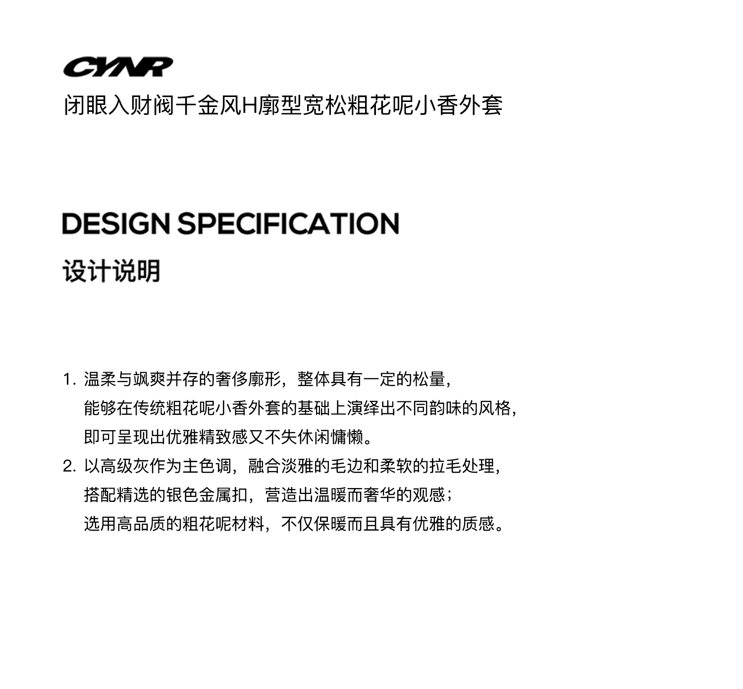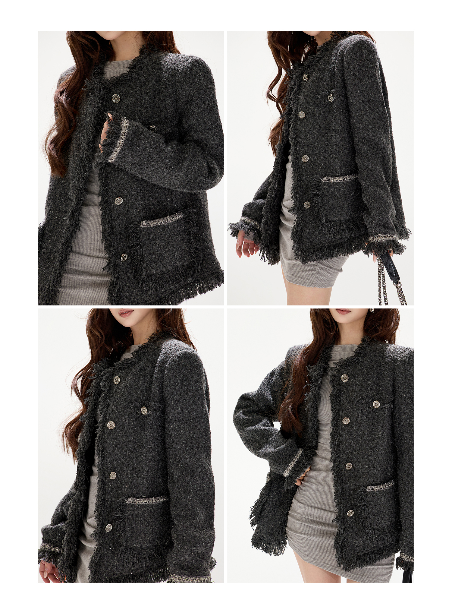 Cynr Original Design, Buy It Without Thinking Twice, High-End Gray Loose Tweed Jacket in the Style of a Rich Daughter, Chanel-Style Woolen Coat