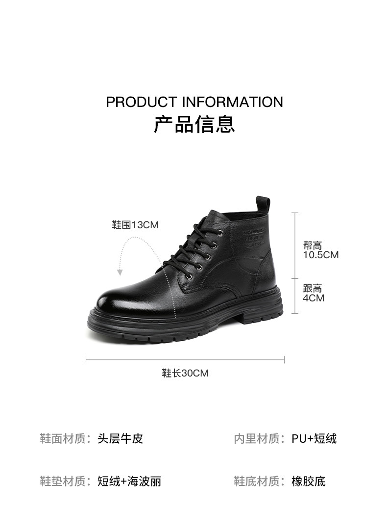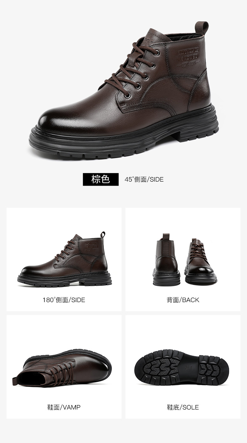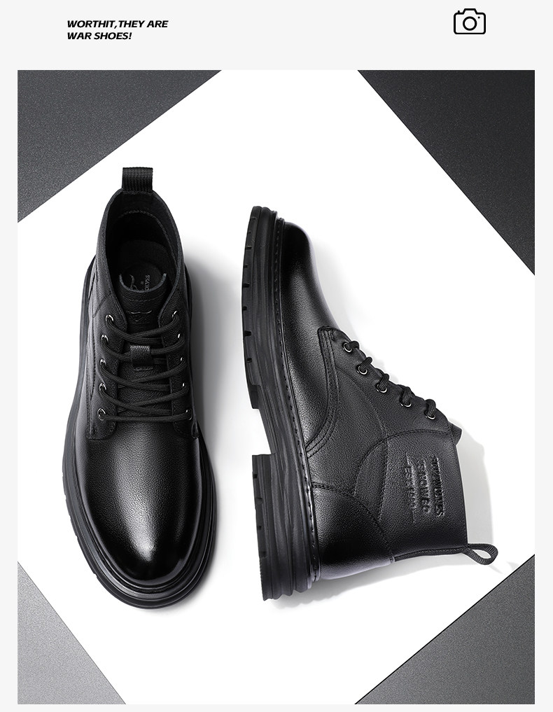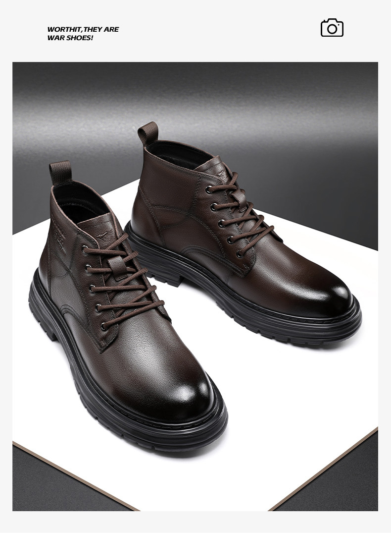 Septwolves Genuine Leather Martin Boots for Men, 2026 Winter New Product, Fleece-Lined, Thickened, Warm Snow Boots, Warm Cotton Shoes