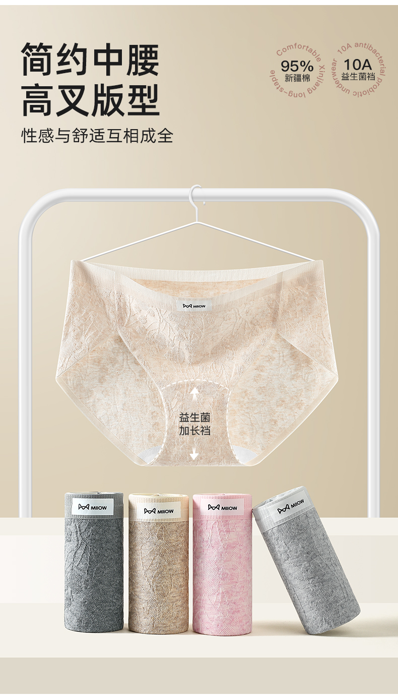 Catman Seamless Underwear for Women 2025 New Model Pure Cotton 7A Grade Antibacterial Girls' All-Cotton Non-Pinching Triangle Shorts