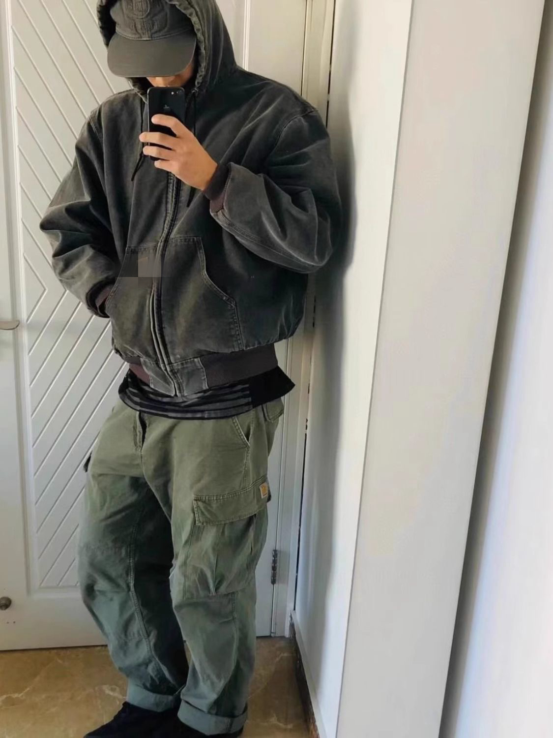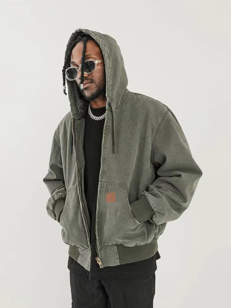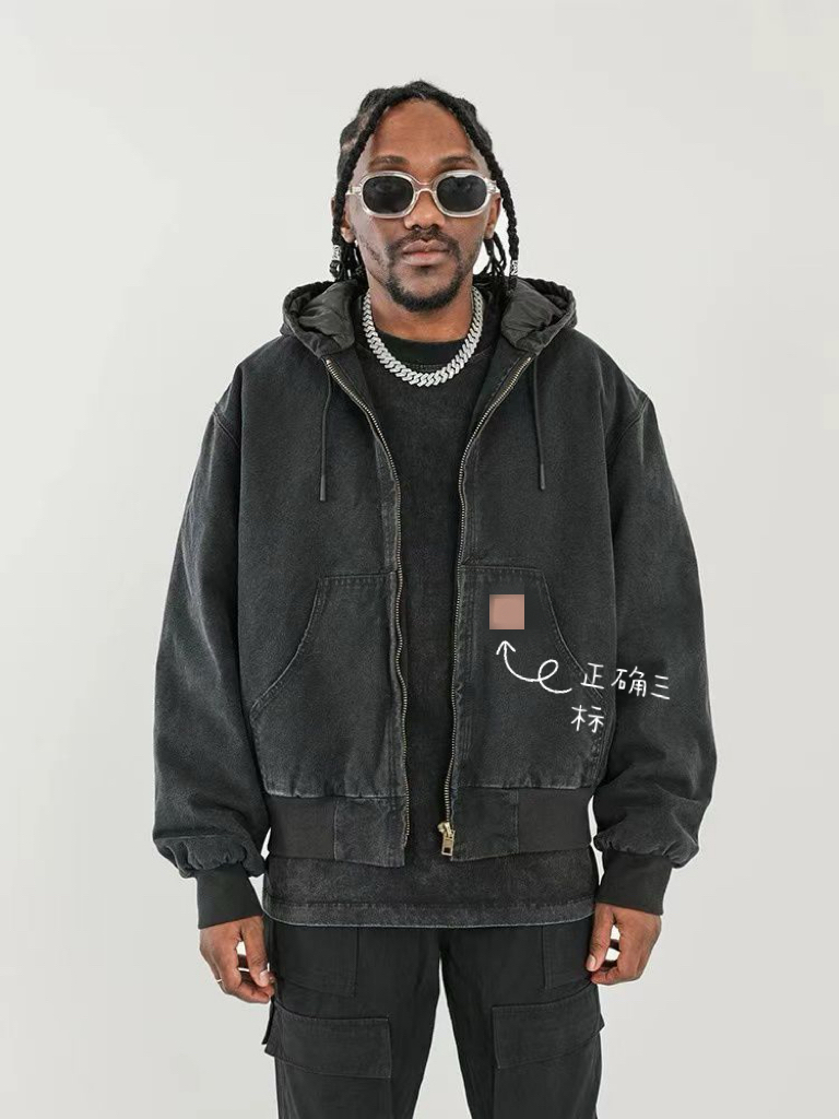 J130 Kaha Style Washed and Distressed Thick Cotton Jacket, Double-Layered Cotton, Wear-Resistant, Unisex, American Style, Stiff, Correct Version Special
