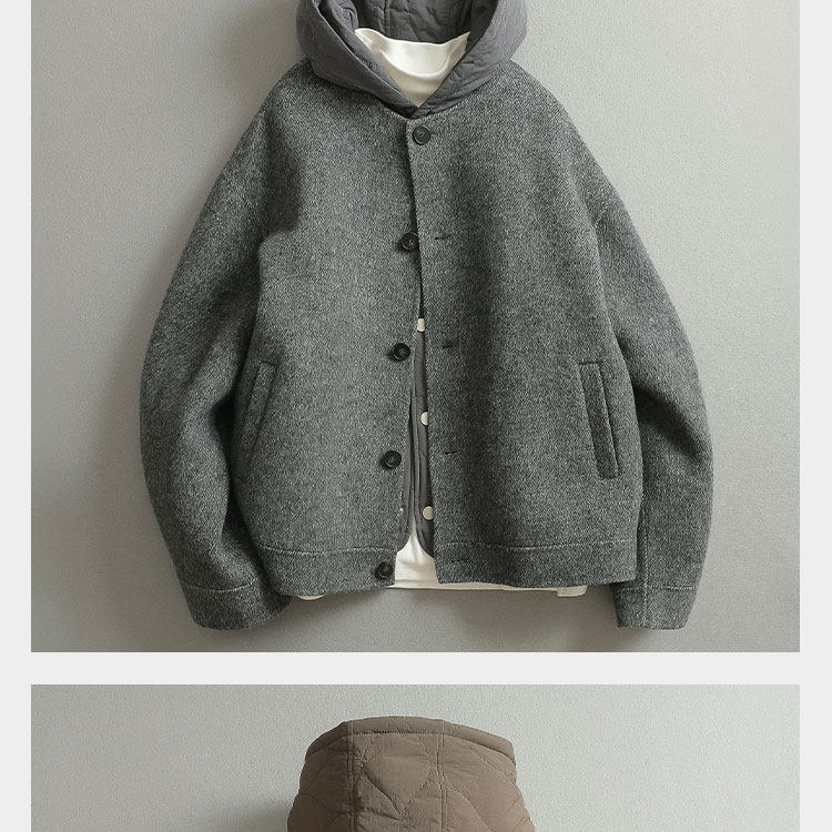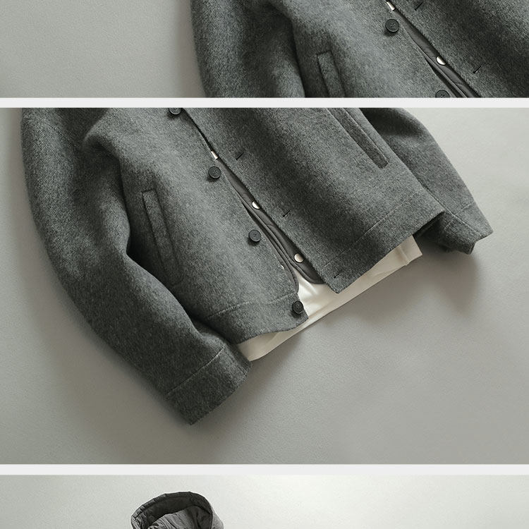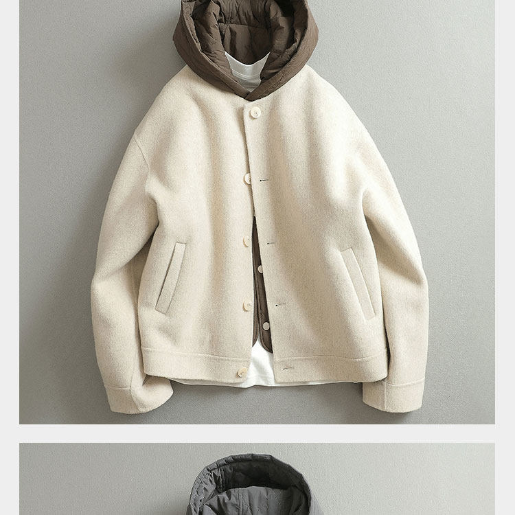 Jianchuan's Three-In-One Autumn and Winter ins Fashionable Double-Sided Woolen Two-Piece Set, Cool and Lazy Style Woolen Coat for Men