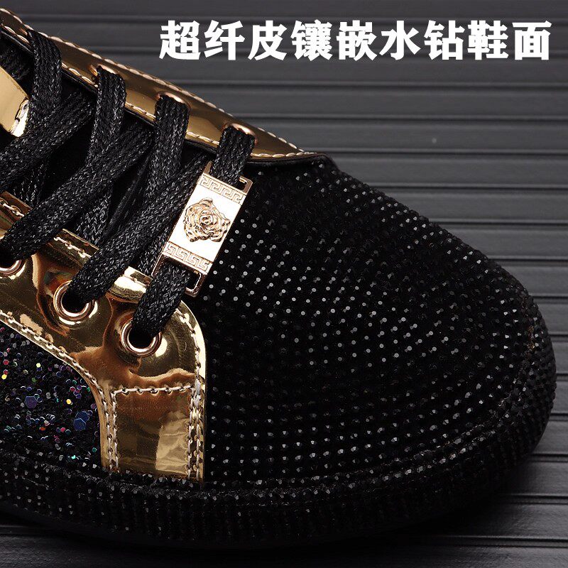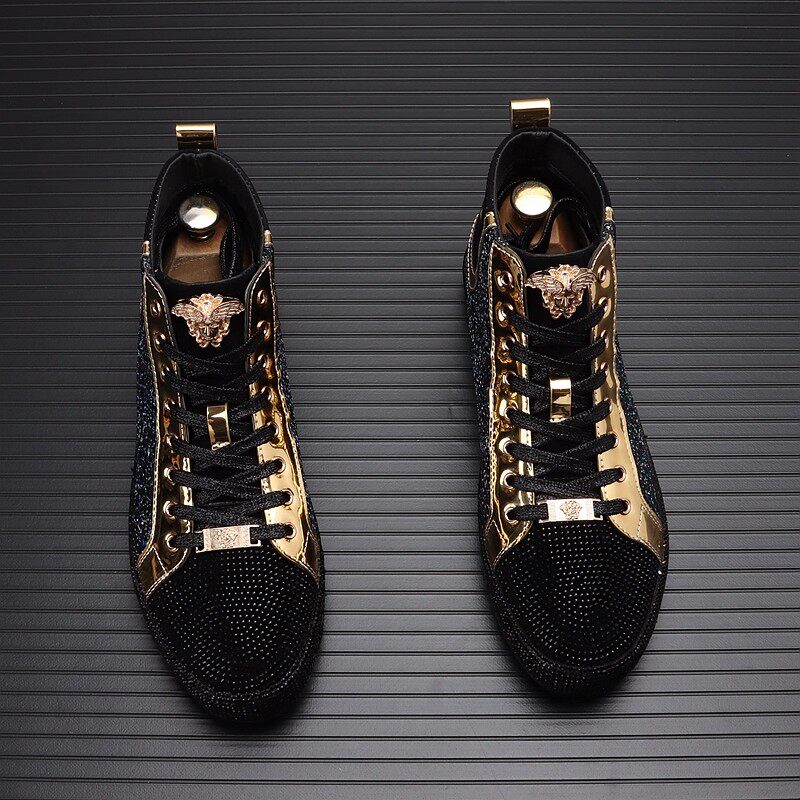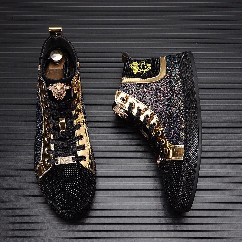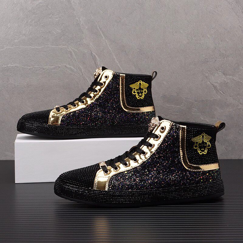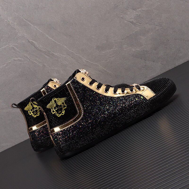 European Men's Shoes 2025 Winter New Genuine Leather Sequin High-Top Shoes Men's Casual Shoes Versatile Sports Sneakers Trendy