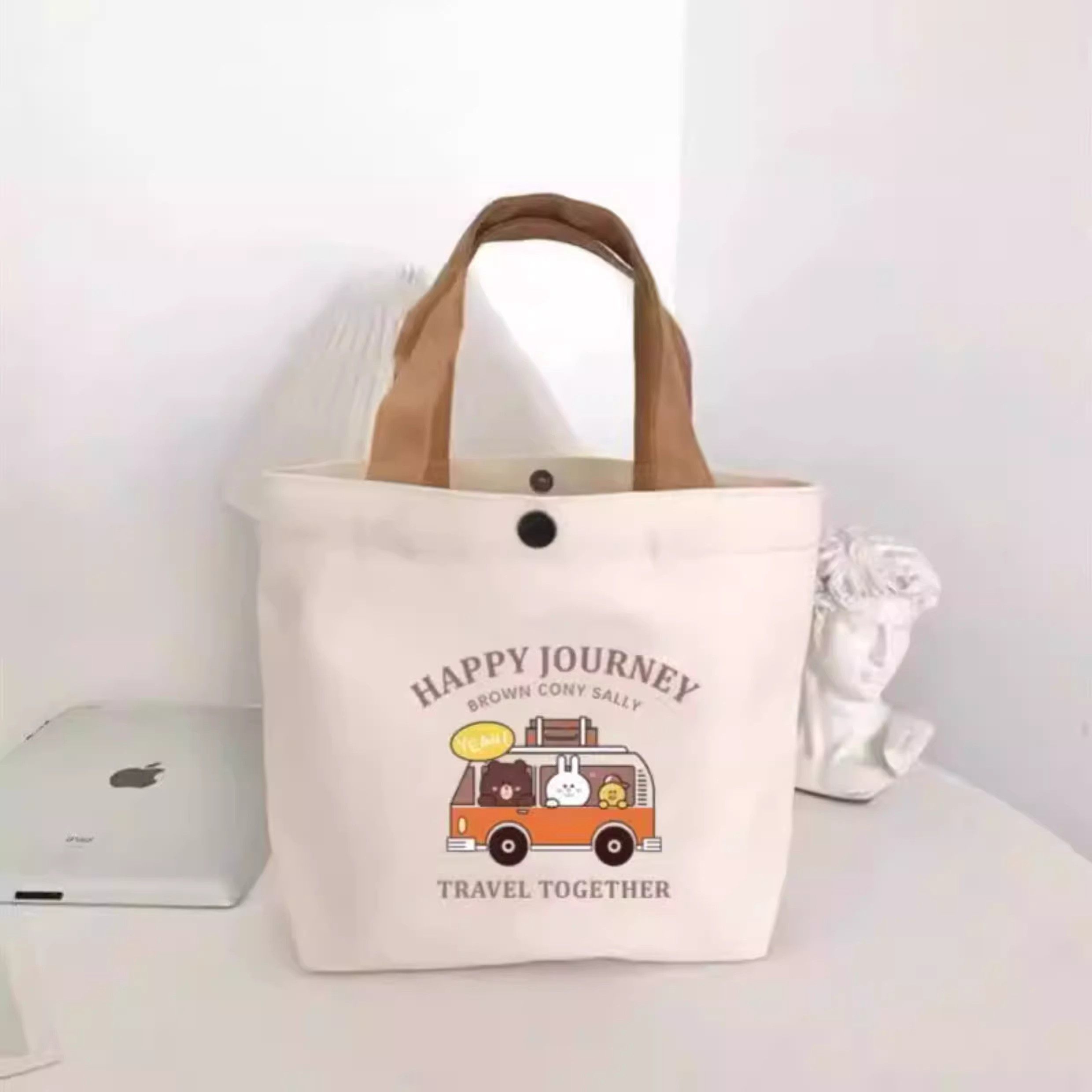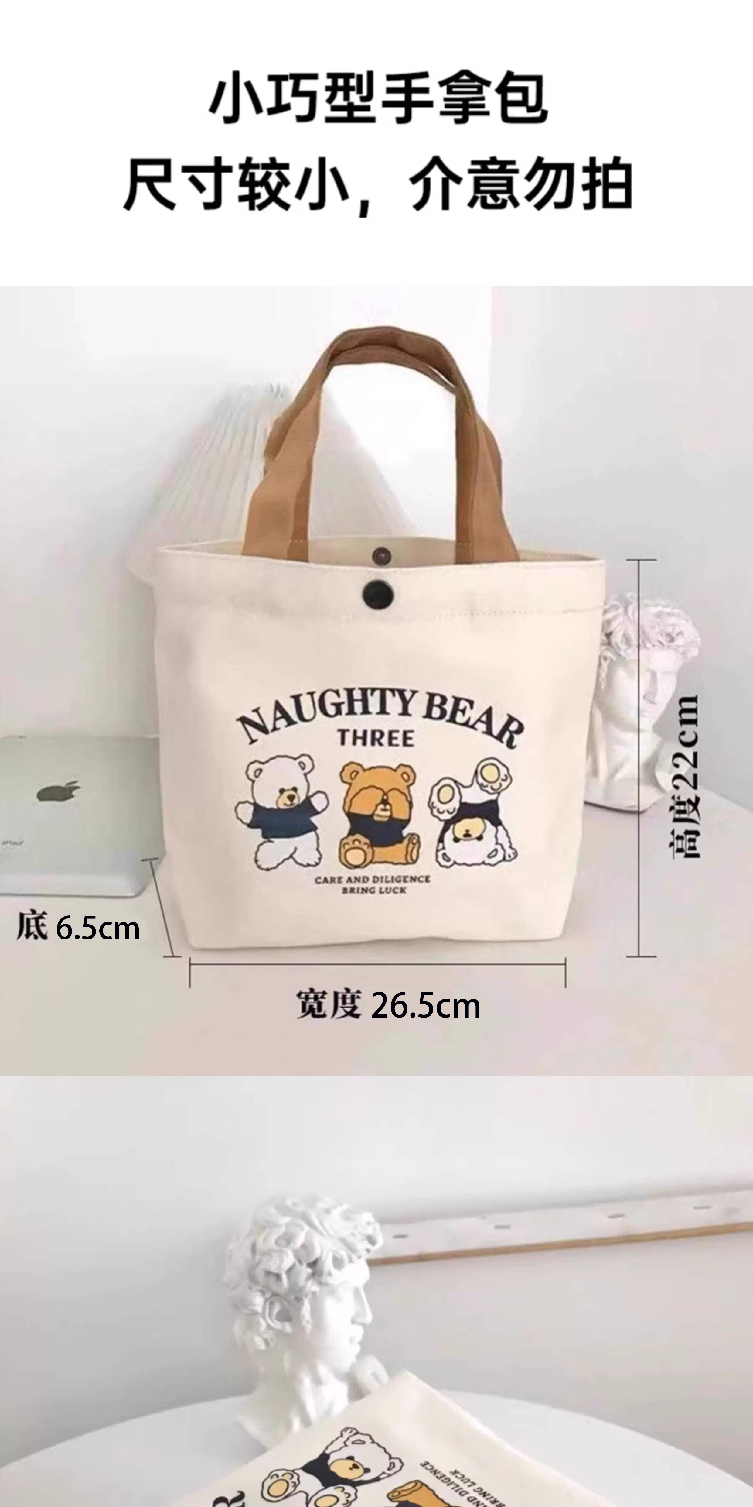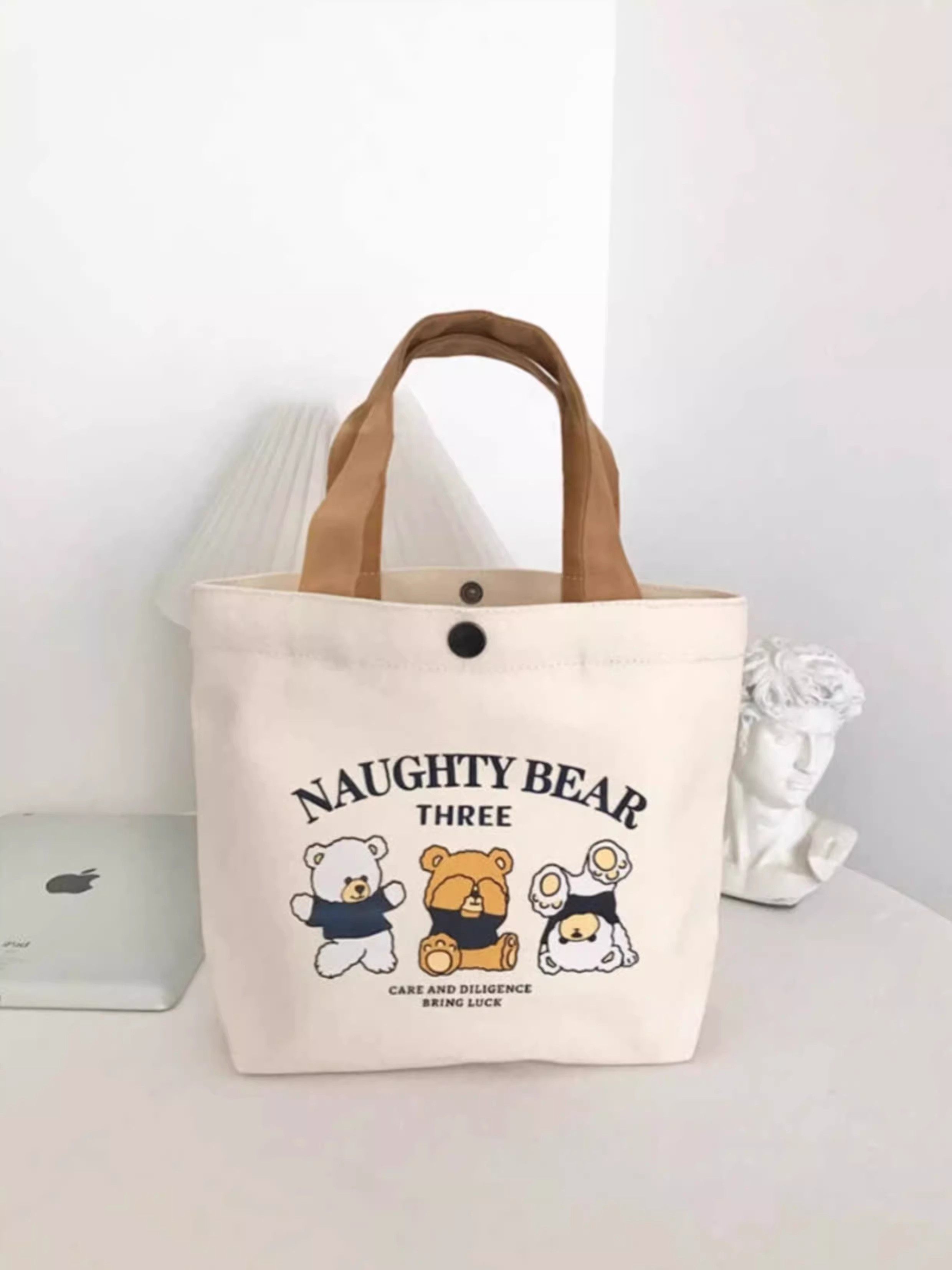 New Bear Canvas Bag for Female Students, Portable for Work, Small Hand-Held Lunch Bag, Tote Bag, Canvas Bag, Gift Bag