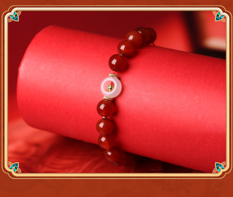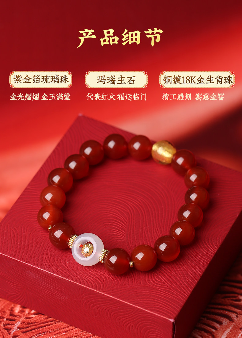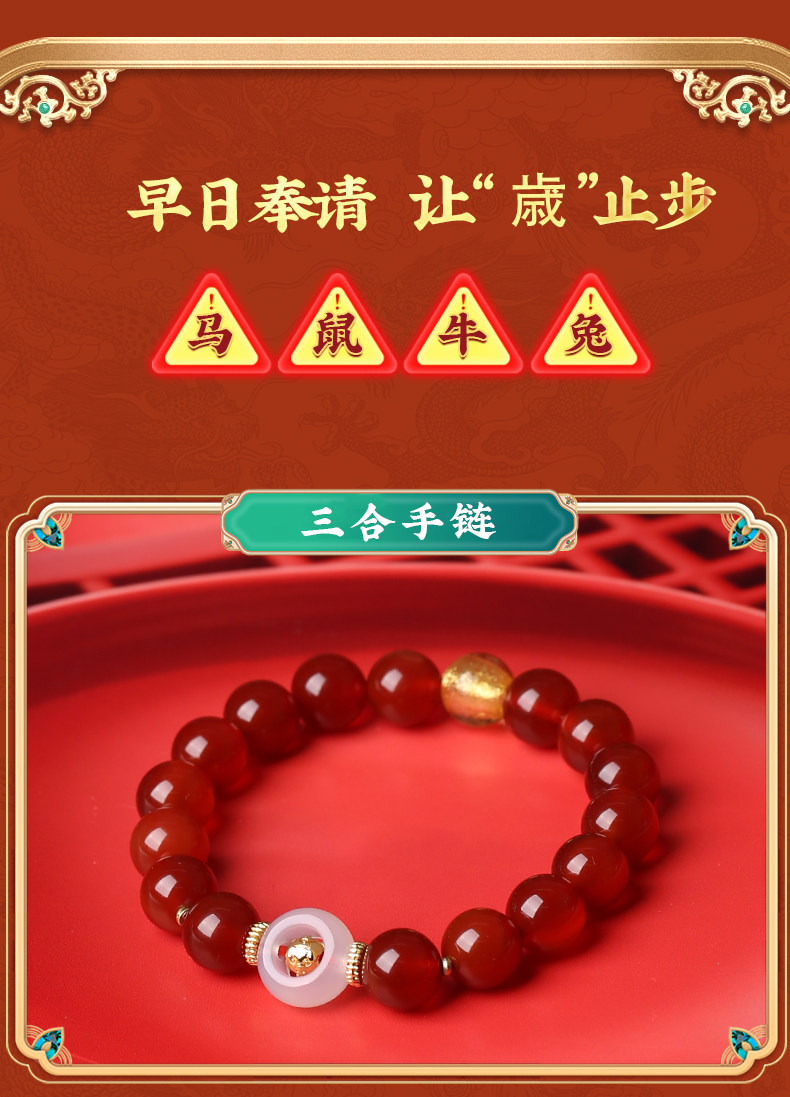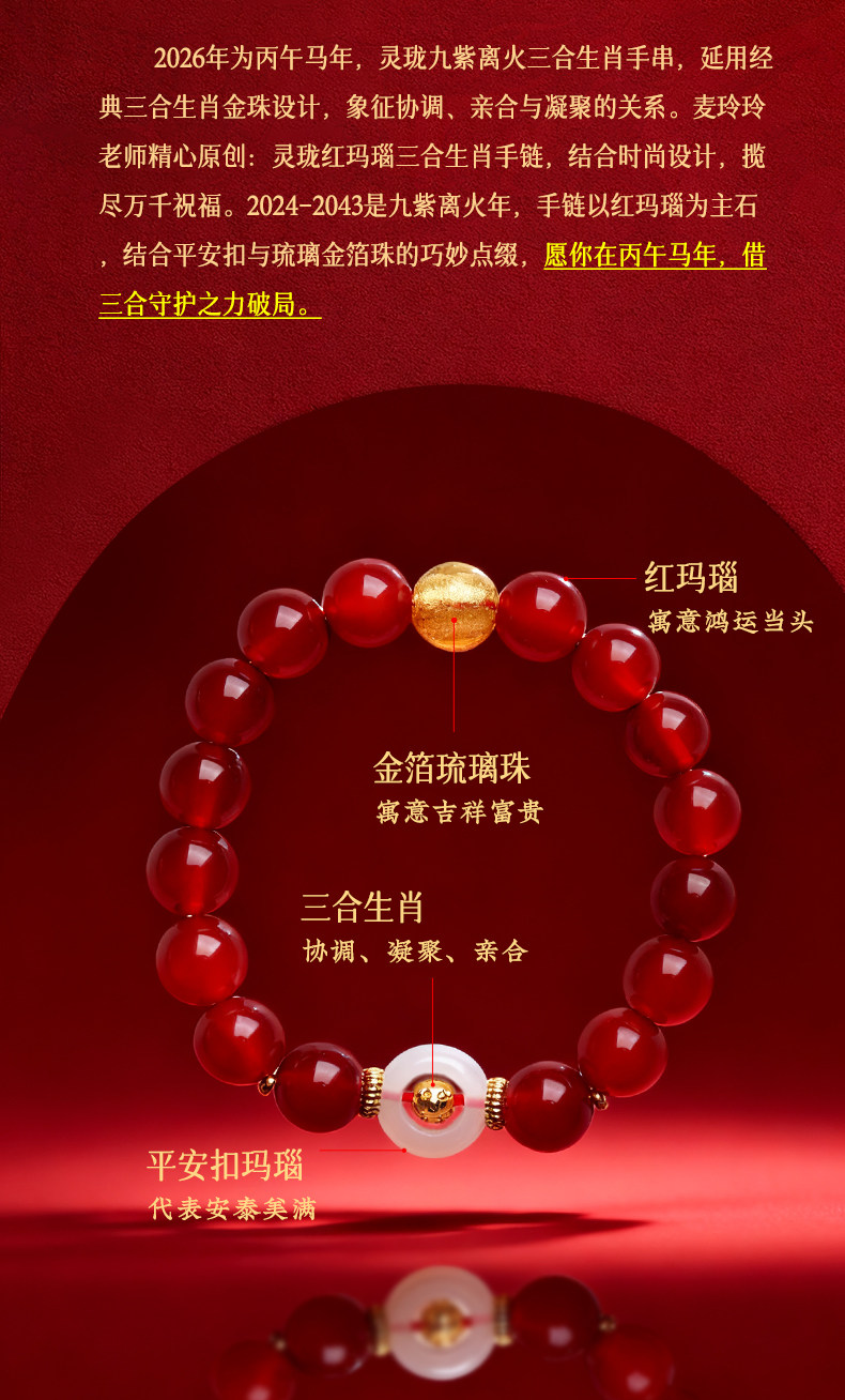 Lingji Mai Lingling 2026 Year of the Horse Linglong Three Harmonies Agate Zodiac Bracelet for Ox, Rabbit, and Rat Birth Year Tai Sui Bracelet