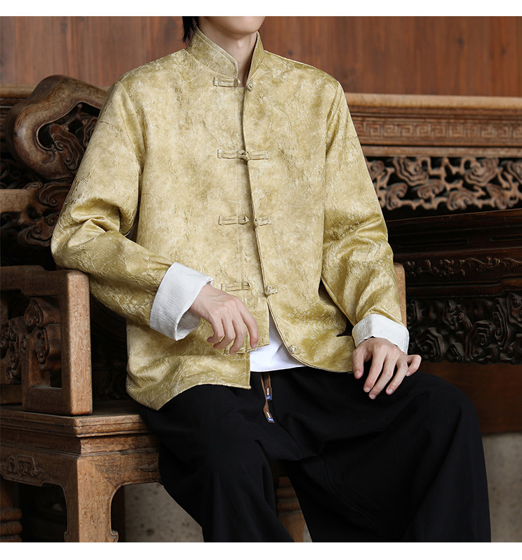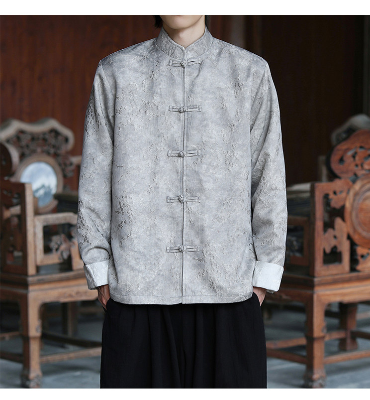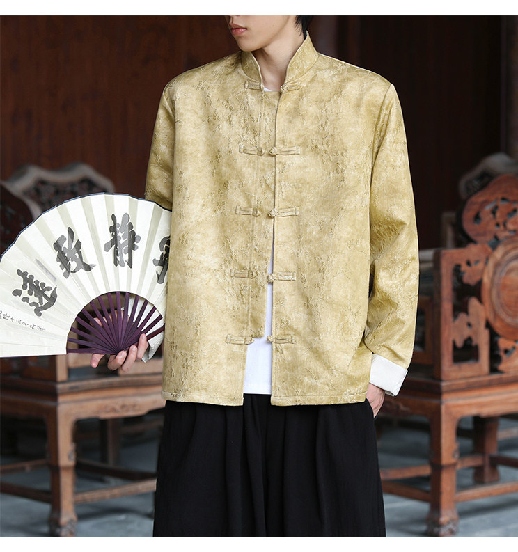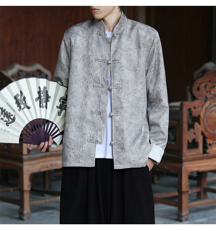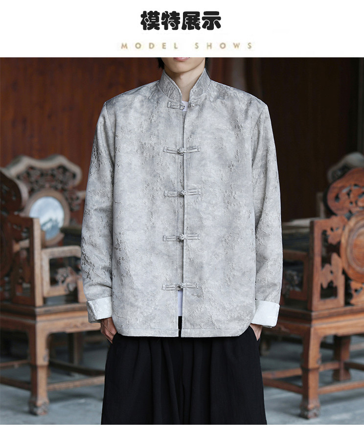 New Chinese-Style Retro Buckle Tang Suit Jacket for Men, Stand Collar Jacquard Casual Jacket, Loose Fit, Large Size, High-End Feel Top