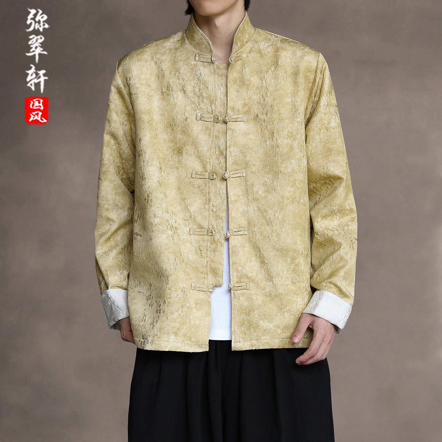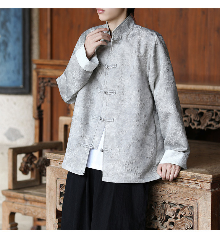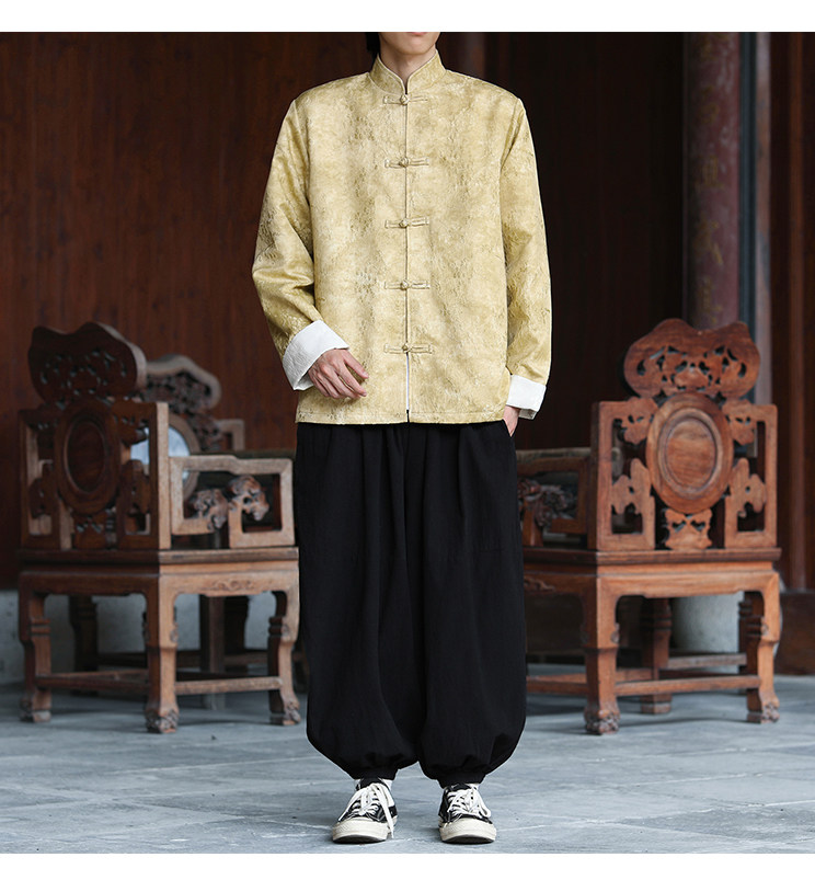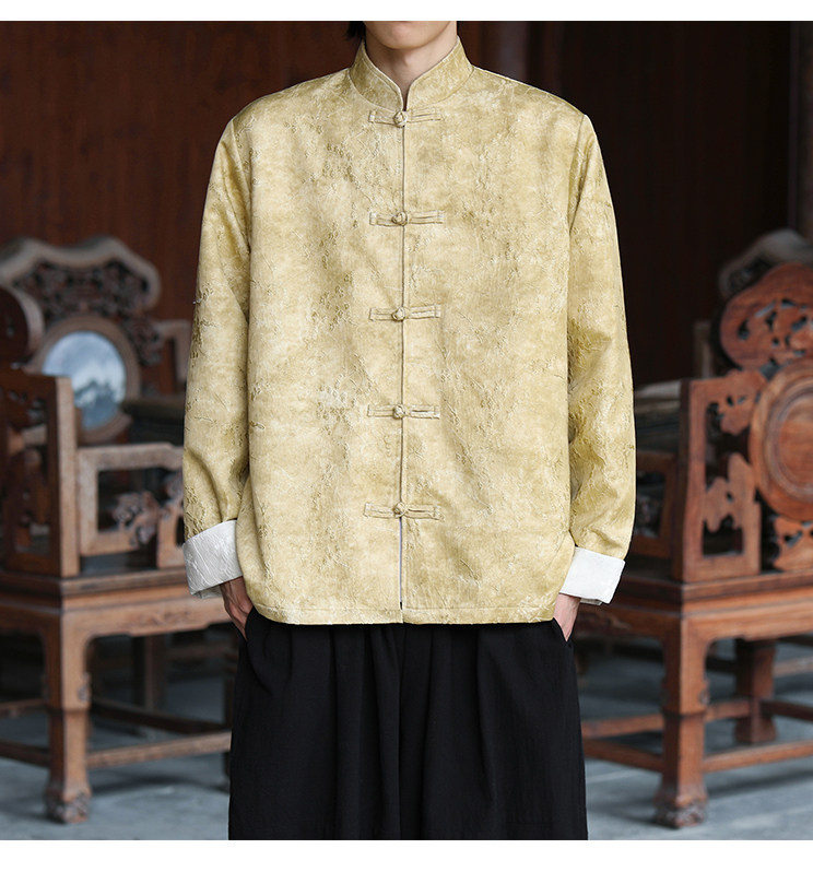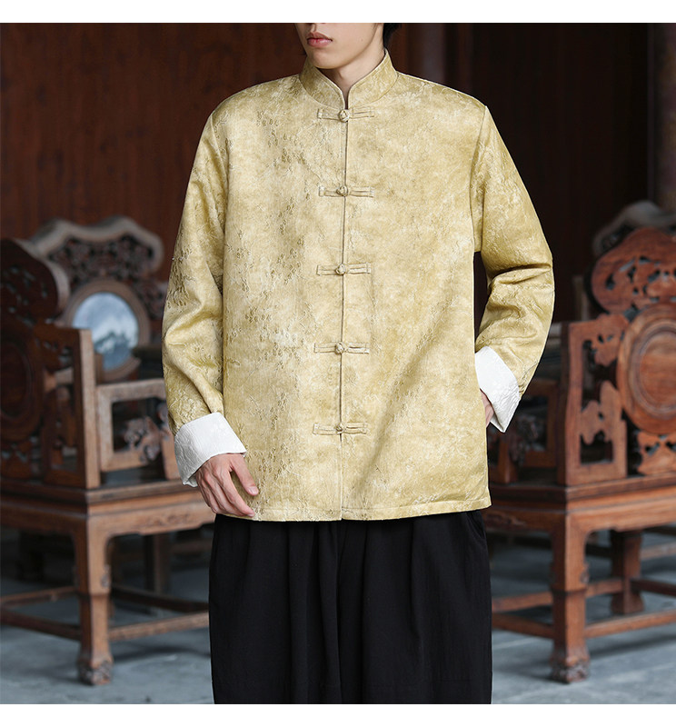 New Chinese-Style Retro Buckle Tang Suit Jacket for Men, Stand Collar Jacquard Casual Jacket, Loose Fit, Large Size, High-End Feel Top