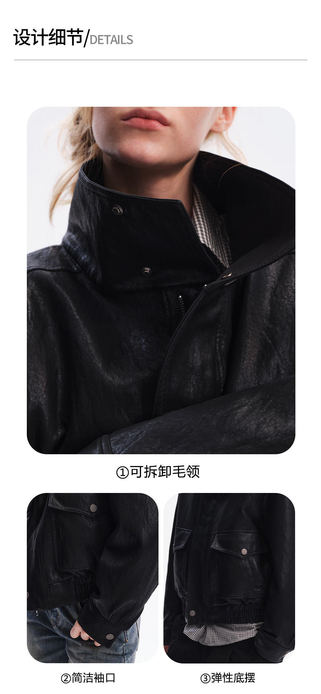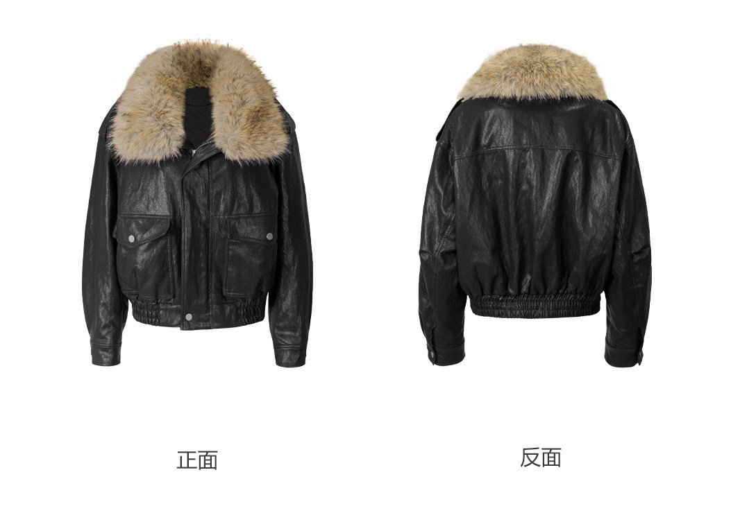 Ahnkank Adventure Jacket Detachable Fur Collar Vintage Quilted Leather Jacket Warm Short Black Thick Coat Winter Women