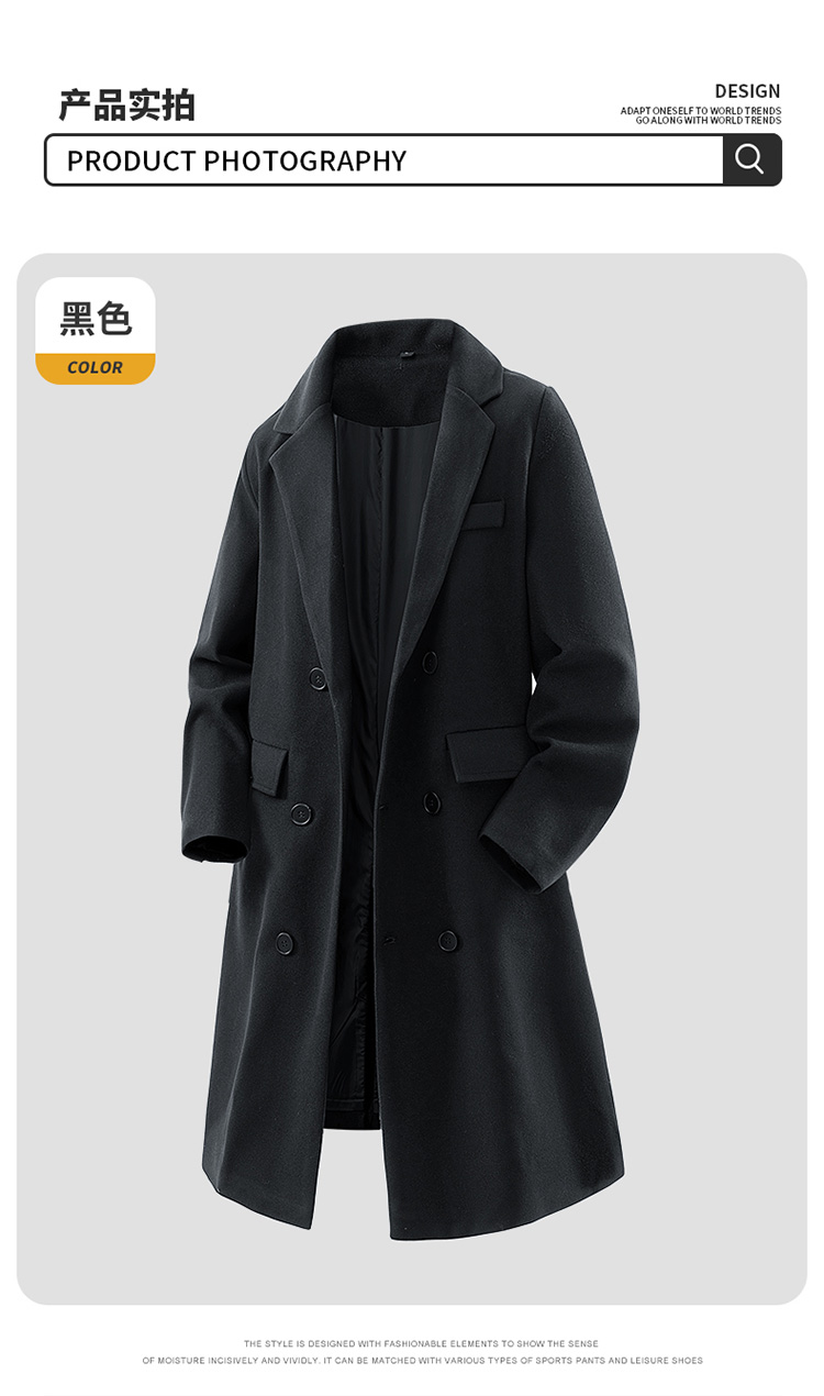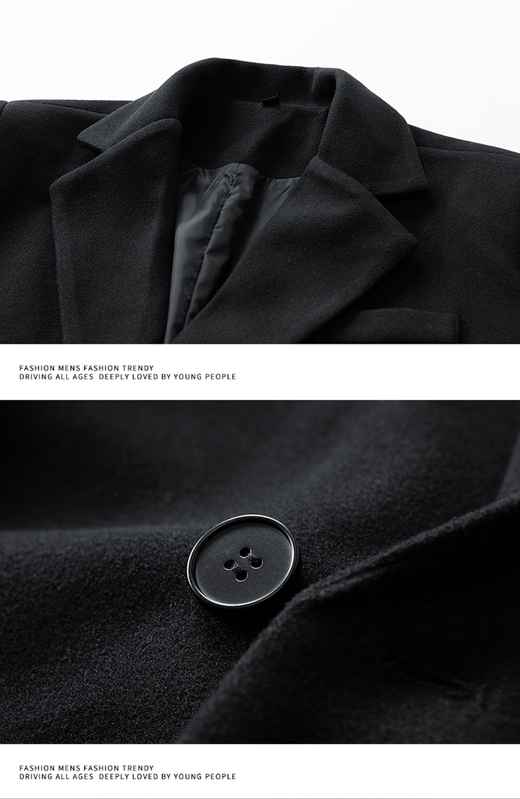 Baleno High-End Woolen Coat for Men, Autumn and Winter Warm Lapel Loose Mid-Length Coat
