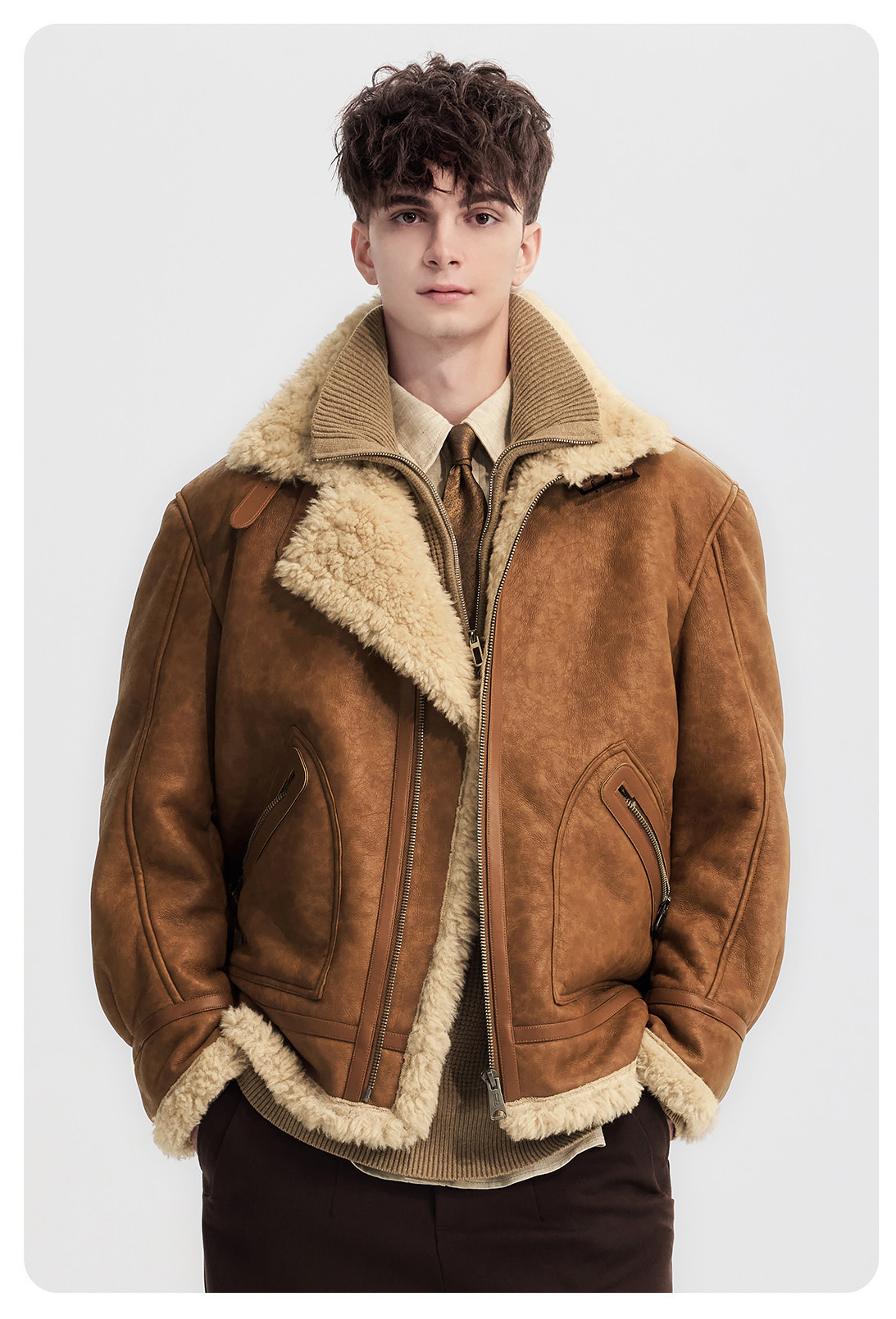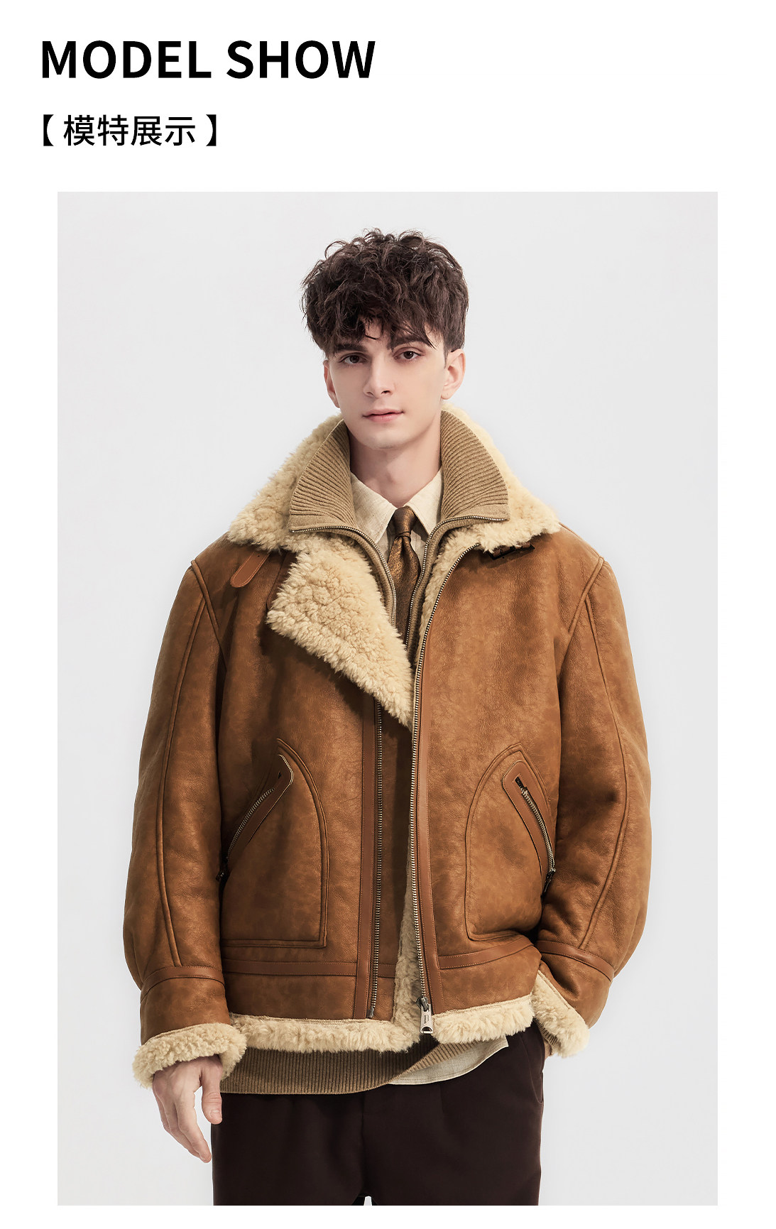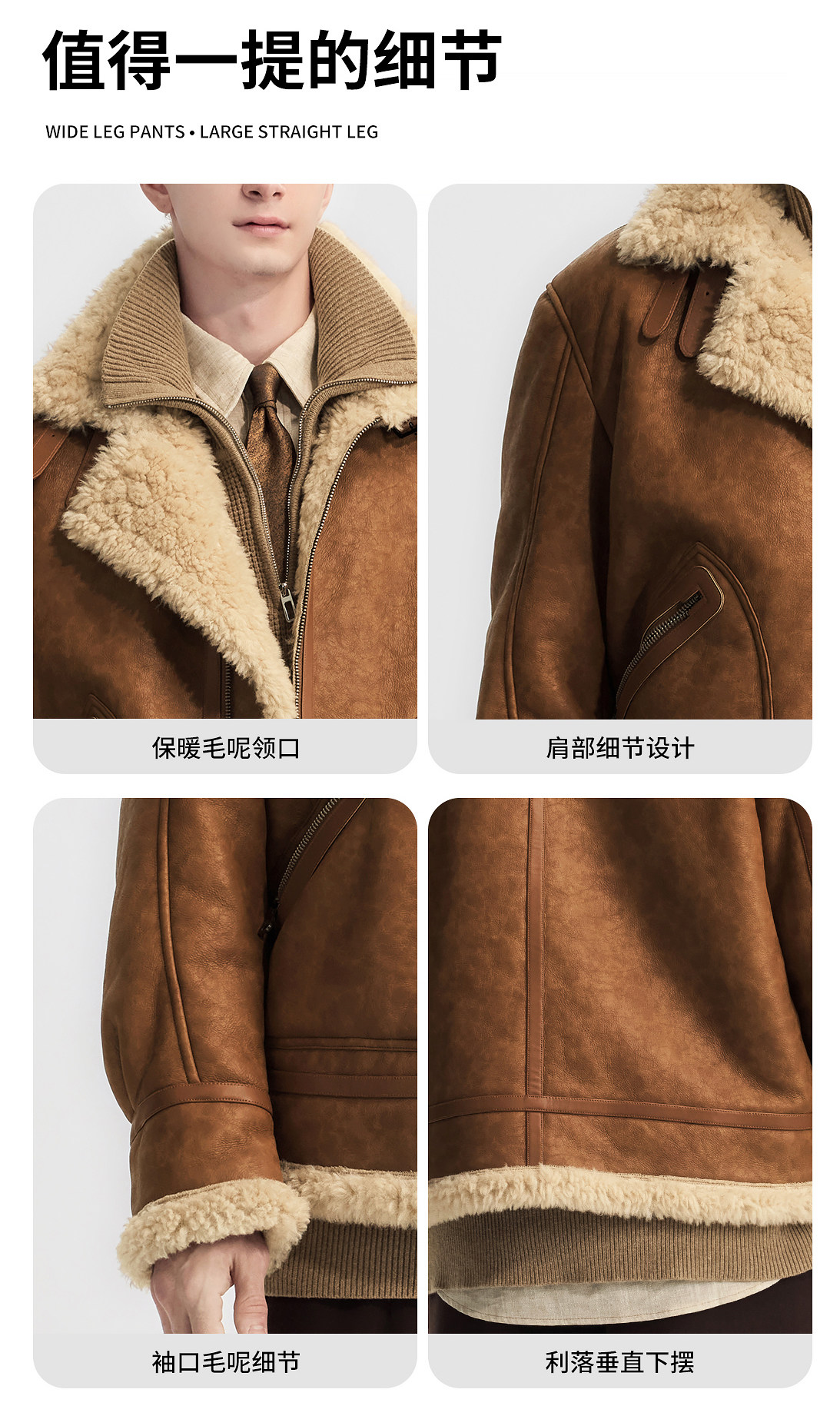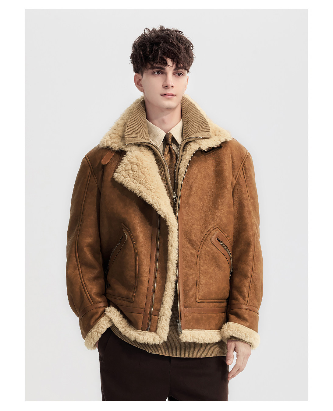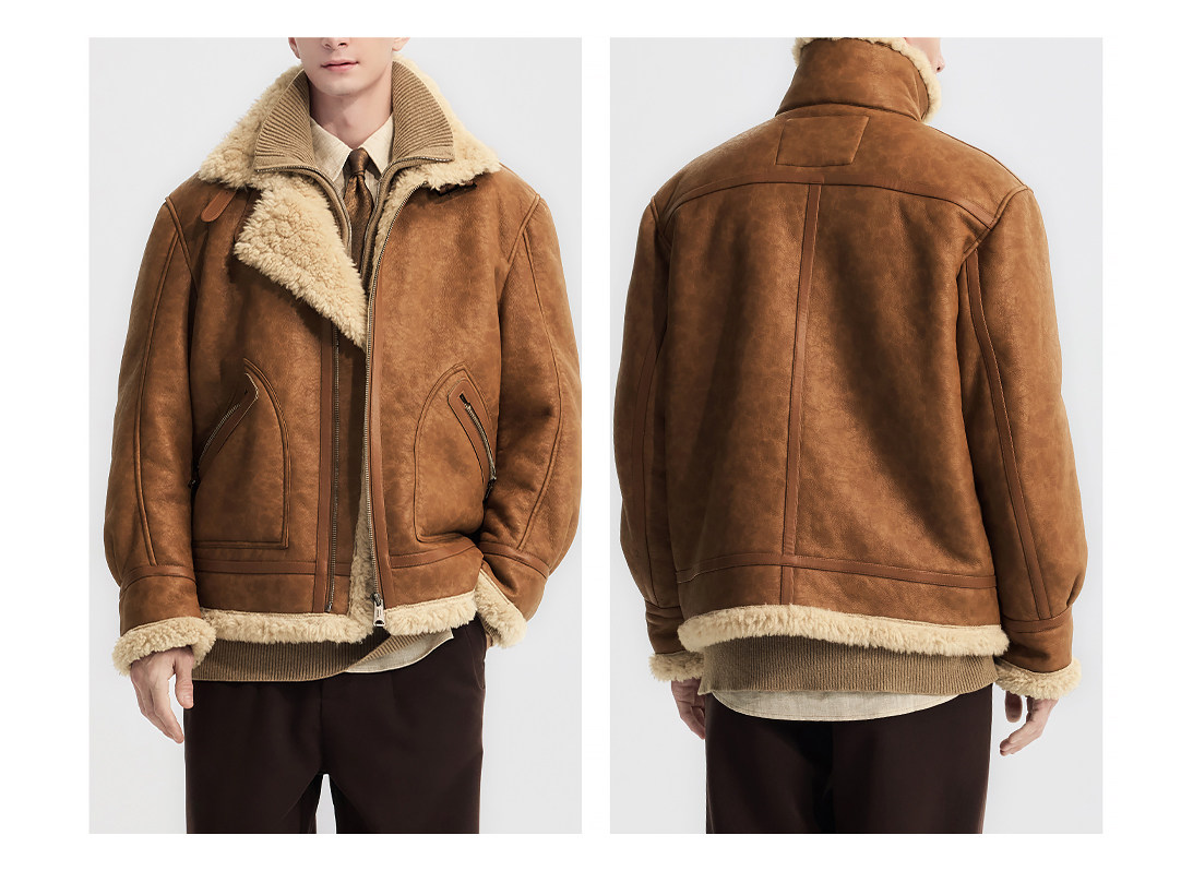 Wild Leader Fur Integrated Jacket for Men 2025 New Autumn and Winter Fleece-Lined Thickened Casual Brown Leather Jacket