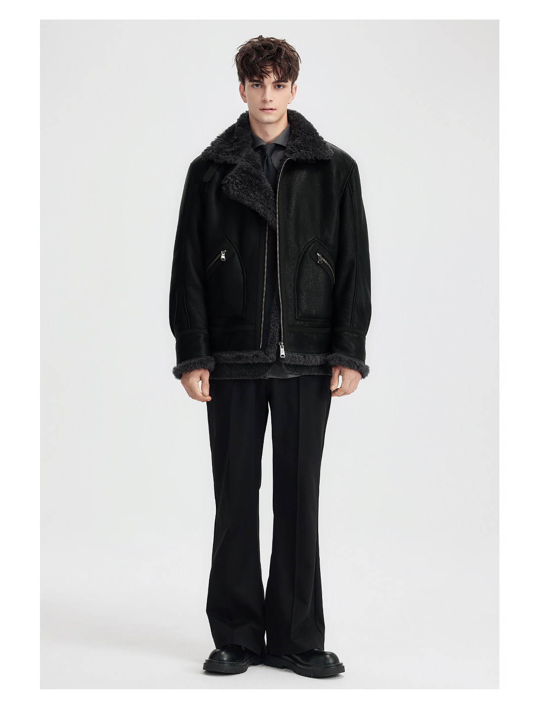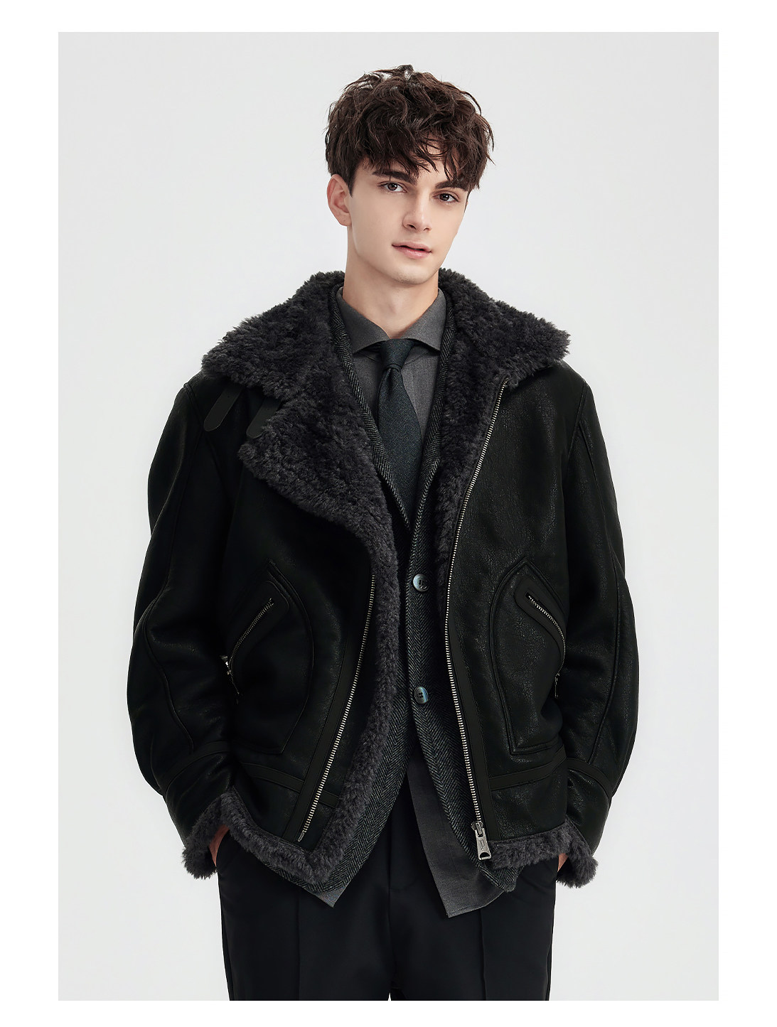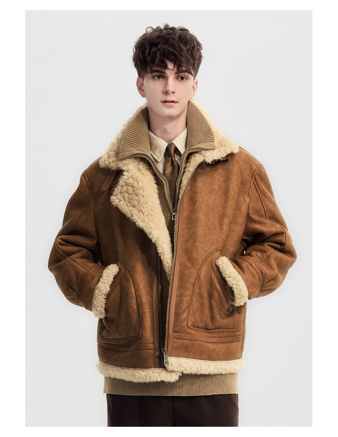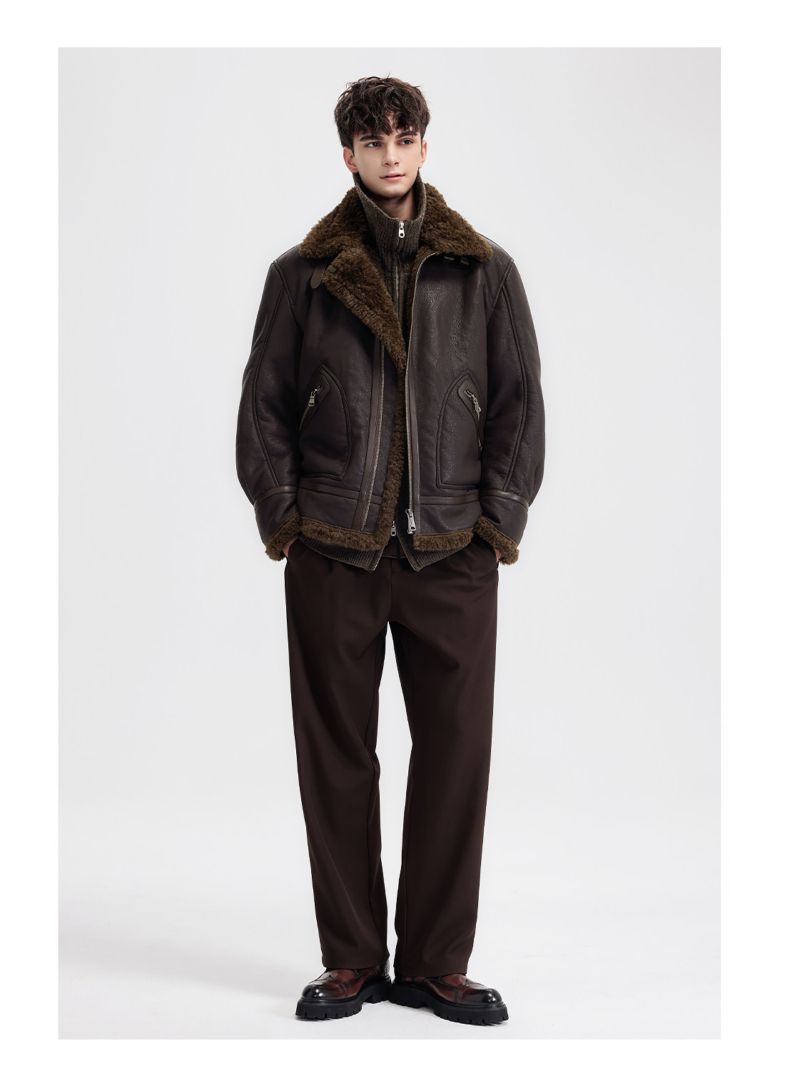 Wild Leader Fur Integrated Jacket for Men 2025 New Autumn and Winter Fleece-Lined Thickened Casual Brown Leather Jacket