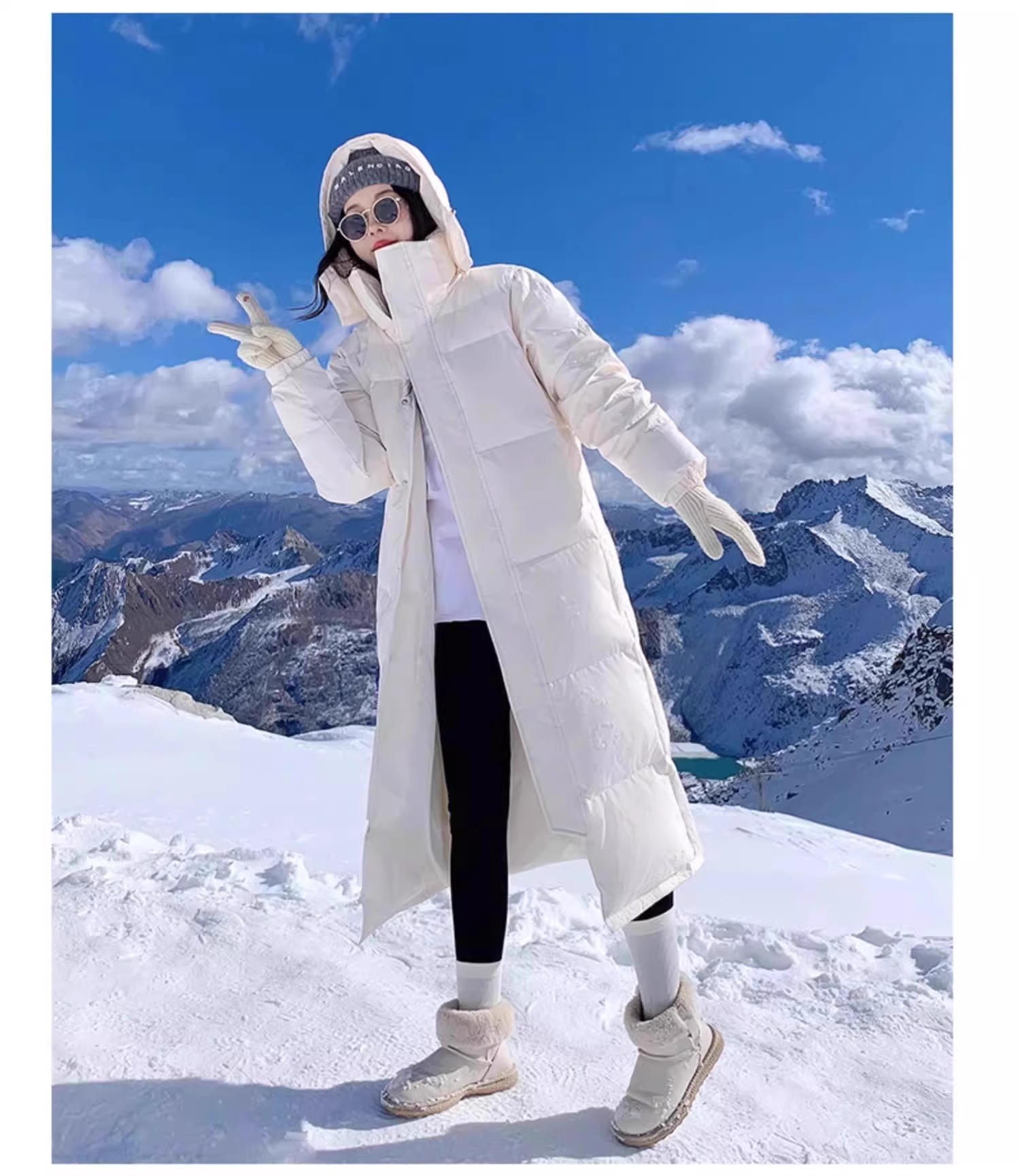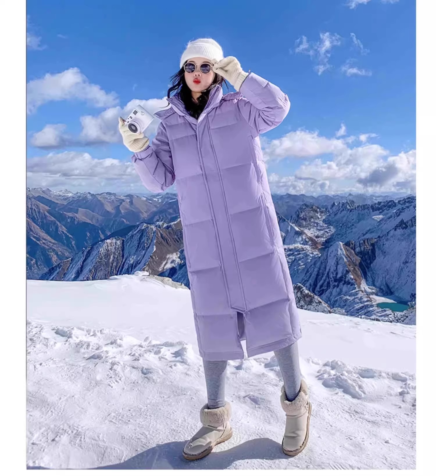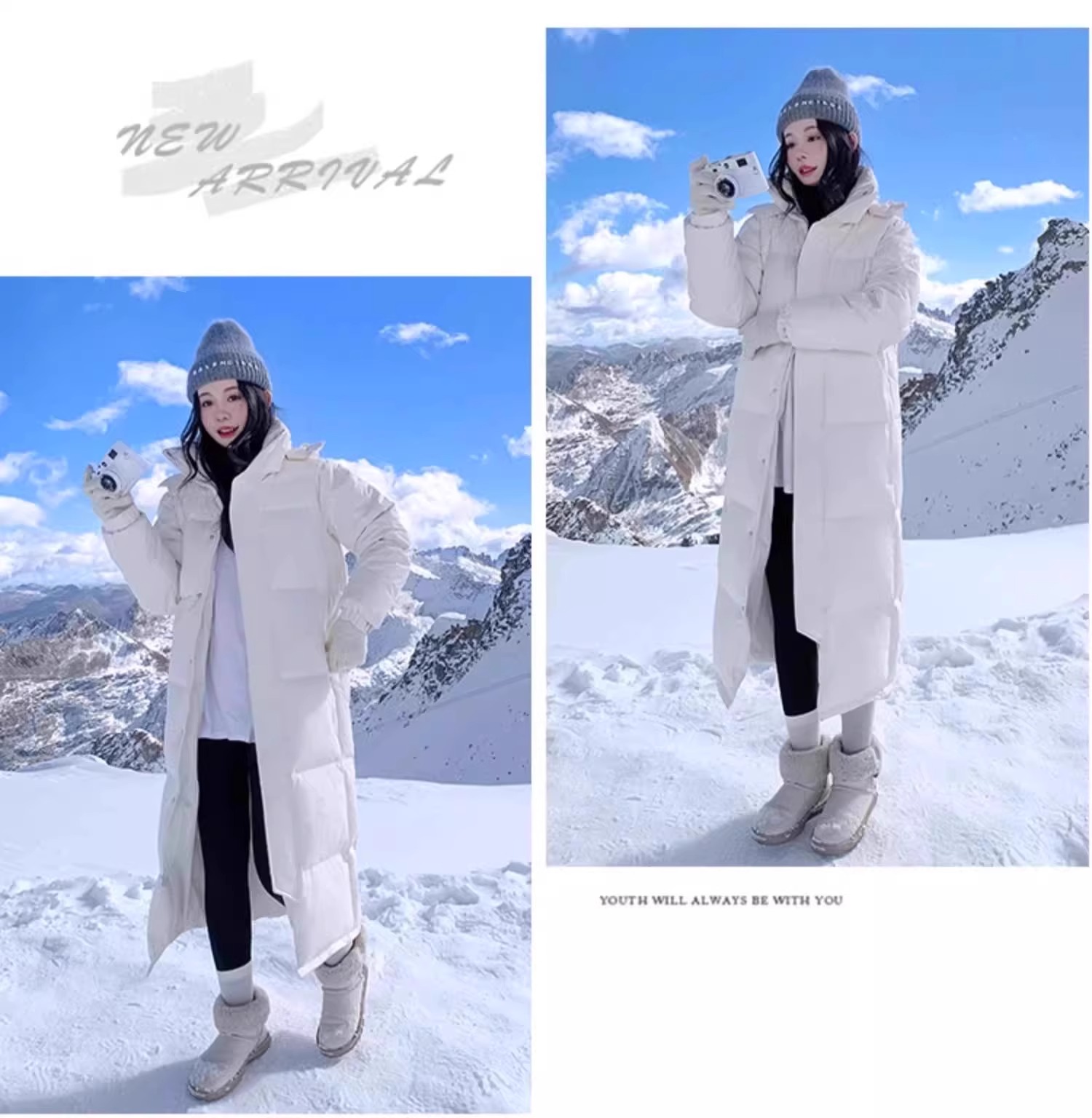Northeast White Goose down Thickened down Jacket for Women, Long Over-The-Knee Style, 2025 Winter New Model, Loose-Fitting Couple's Cold-Proof Coat for Men
