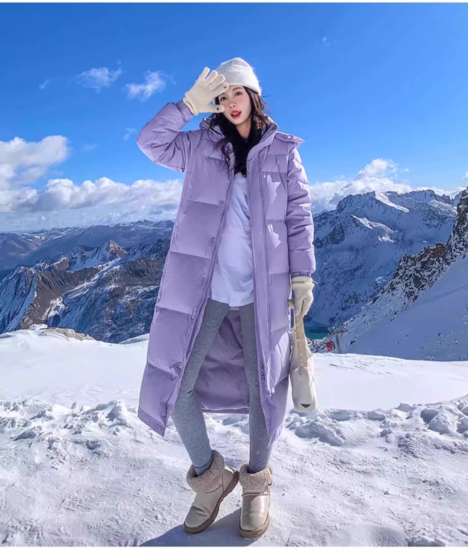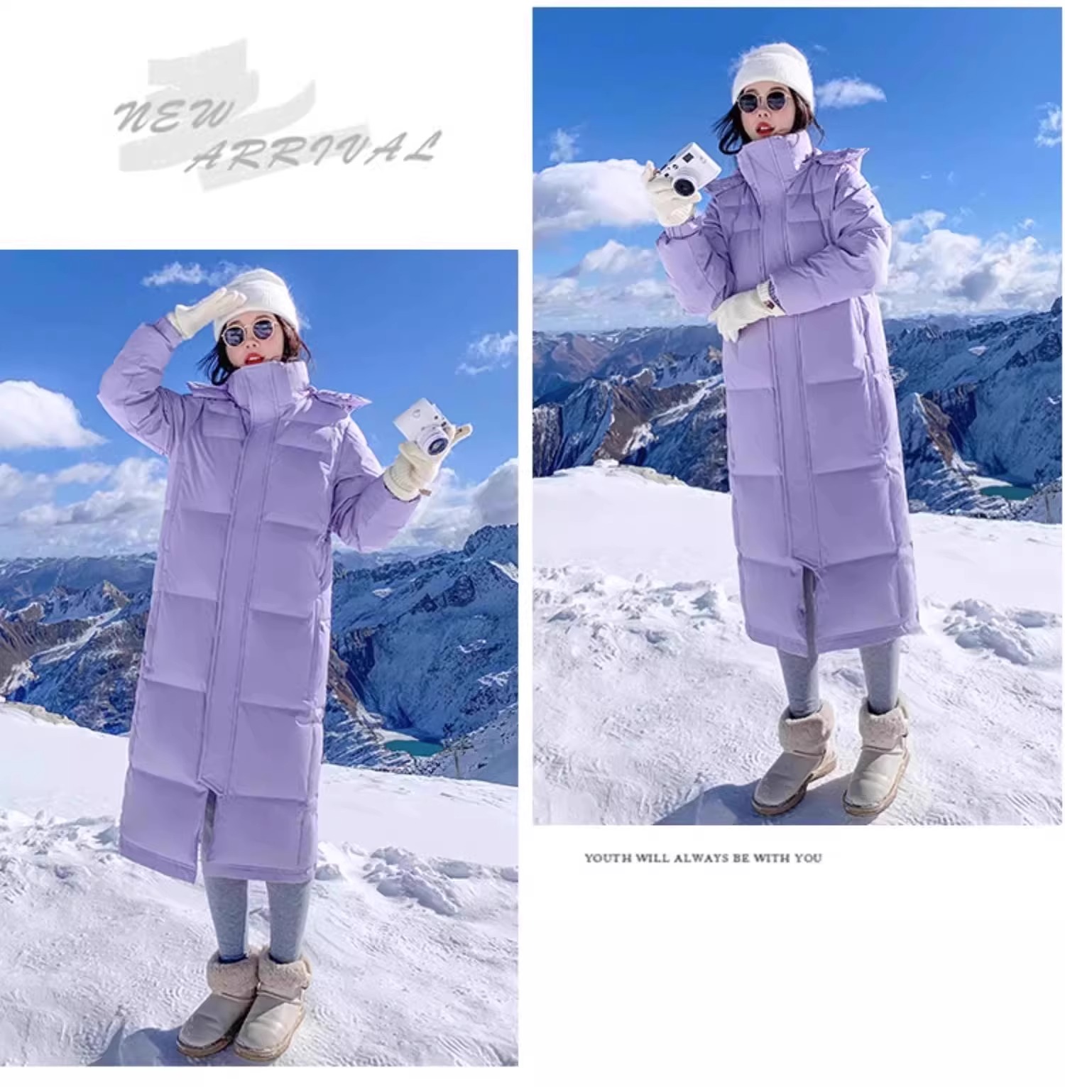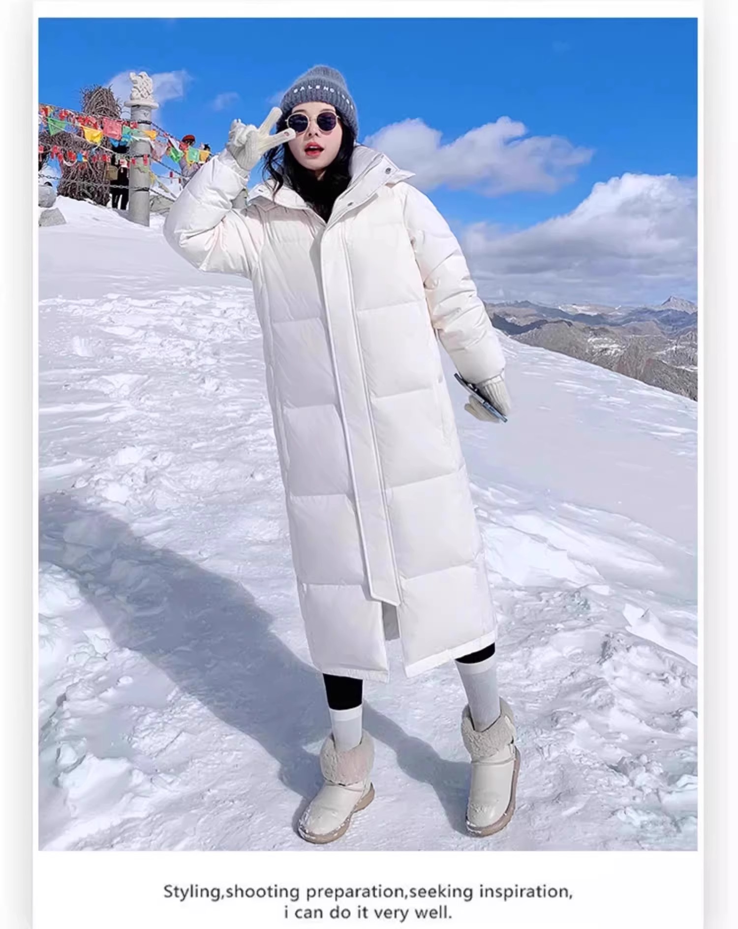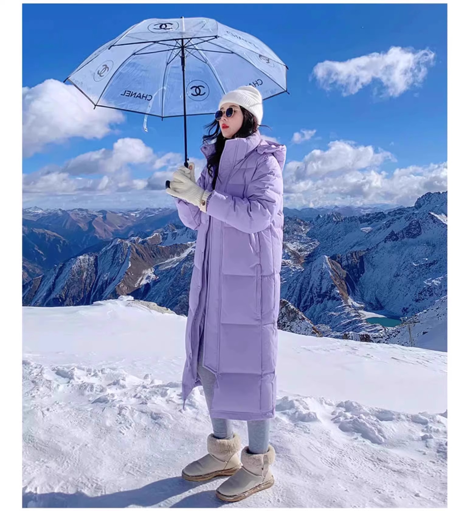 Northeast White Goose down Thickened down Jacket for Women, Long Over-The-Knee Style, 2025 Winter New Model, Loose-Fitting Couple's Cold-Proof Coat for Men