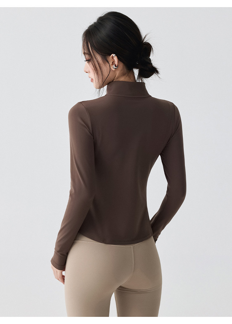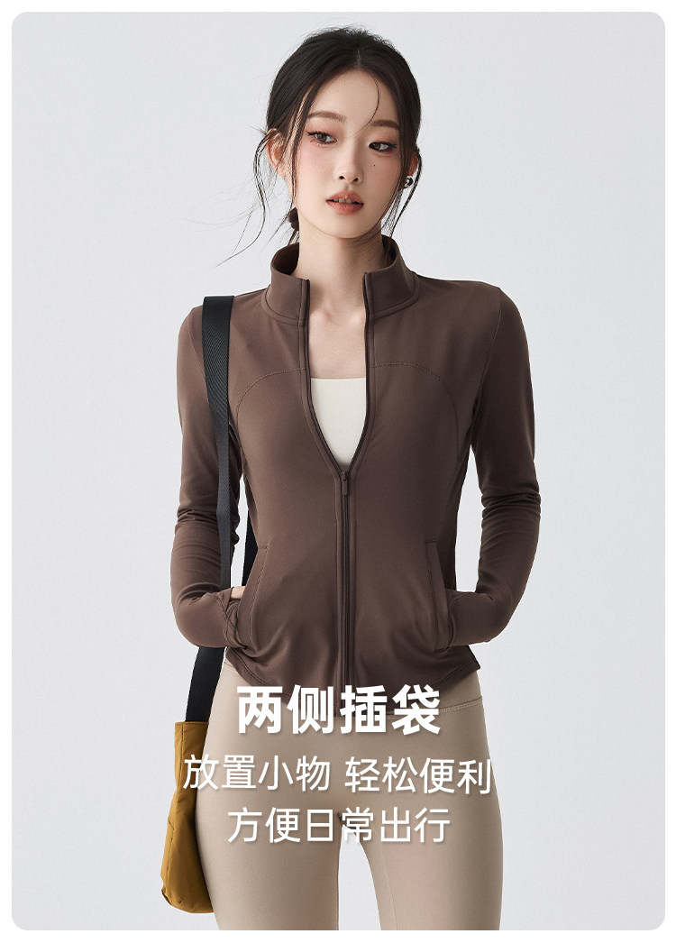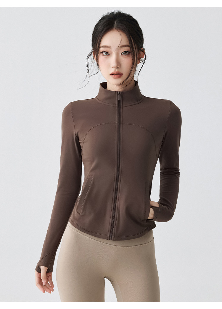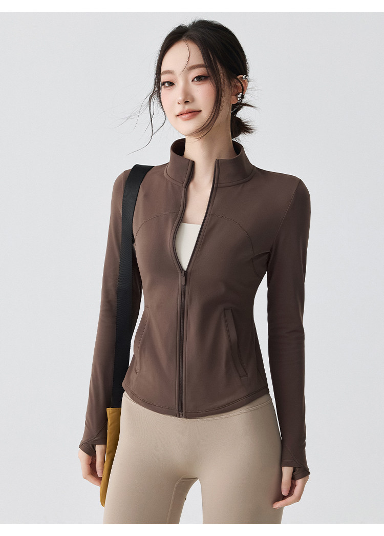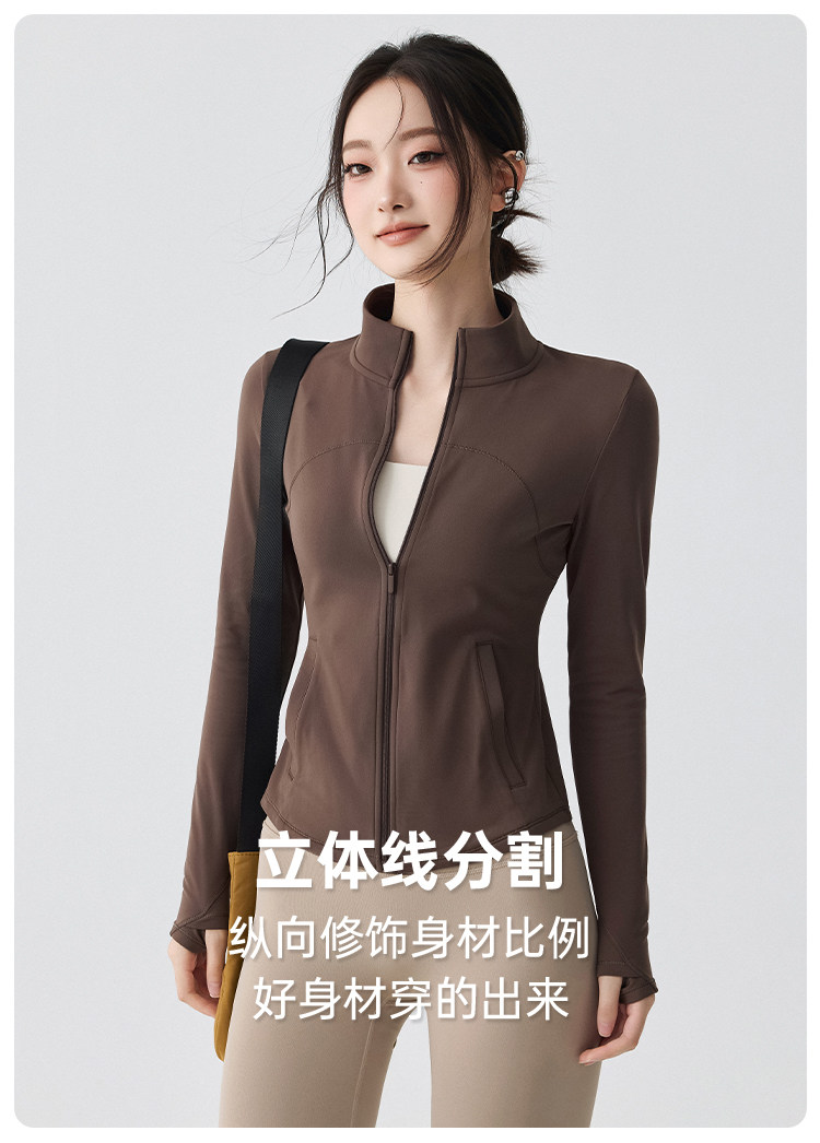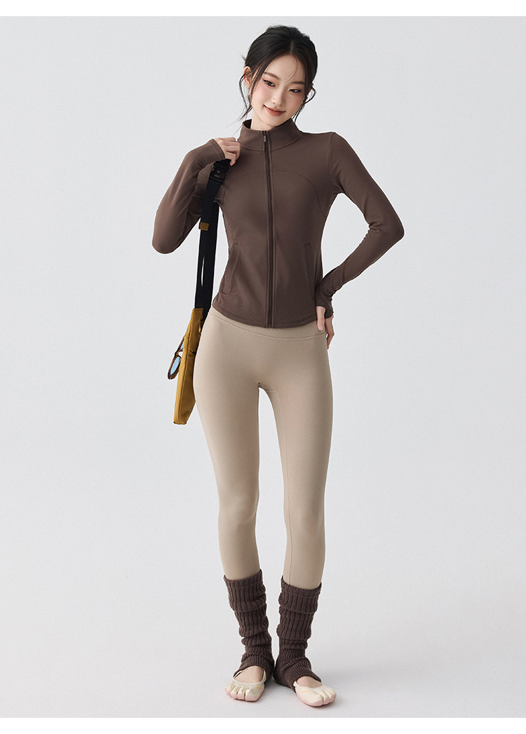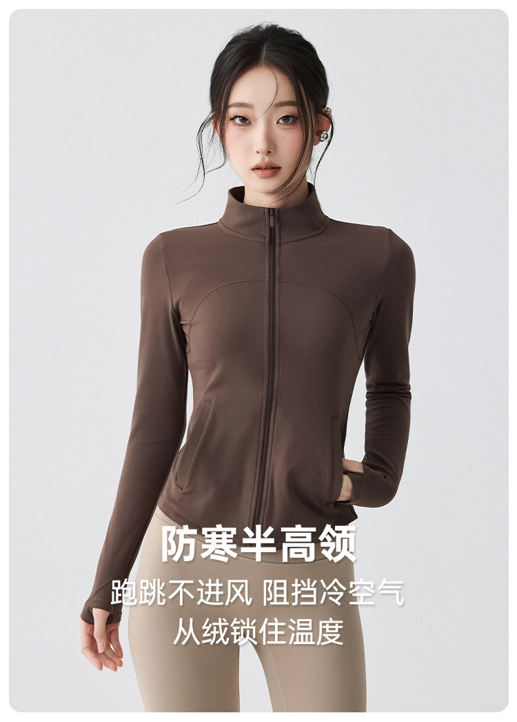 Sports Jacket for Women in Autumn and Winter, Fleece-Lined, Warm, Running Yoga Wear, Long-Sleeved, Slim-Fitting, Stand-Up Collar, Outdoor Zipper Fitness Top